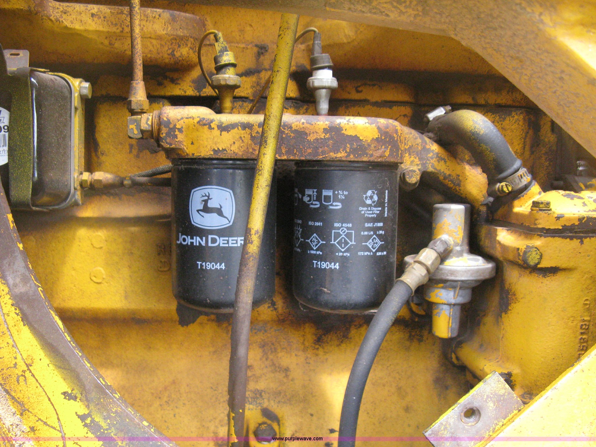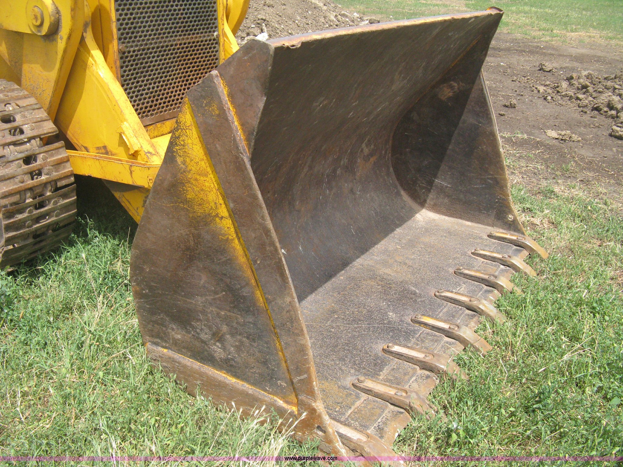 Purple Wave is selling a used Crawler Loader in Kansas. This item is a 1978 John Deere 755A track loader with the following: 6,008 hours on meter, Six cylinder diesel engine, Hydrostatic transmission, OROPS, Suspension seat, Vandaul guard, Joystick loader control, Block heater, 82" loader bucket, (8) bolt-on teeth, Two cu. yd. capacity, Serial AT52029, (4) rear counter weights, Rear pin hitch, Work lights, 14.5" triple grouser pads, Radiator core replaced approx. 100 hours ago, Structural weld repair on loader arm, Manuals, Track tensioner re-sealed on right side in March 2012, Serial 755-259361T
