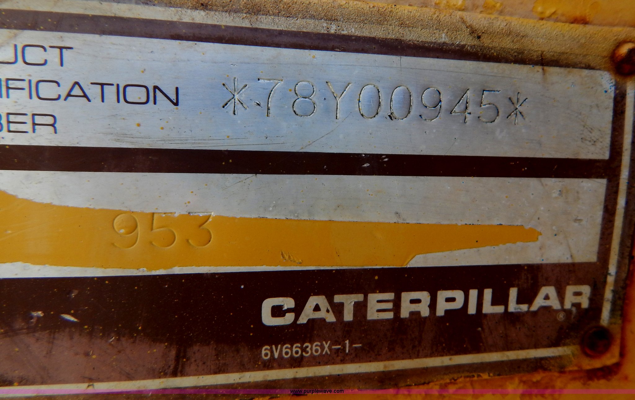 Purple Wave is selling a used Crawler Loader in Missouri. This item is a 1985 Caterpillar 953 track loader with the following: Approx. 500 hours on replacement engine, Inline four cylinder diesel engine, Model 3204DI, Serial 7YJ07370, Arrangement 1W1356, 88"W bucket, (8) cutting teeth, 15" tracks, 30,485 lbs. base operating weight, Recently replaced starter and alternator, Recently replaced loader pins, Serial 78Y00945