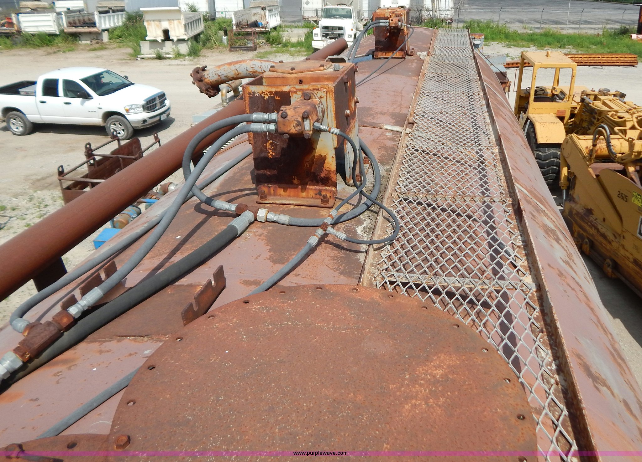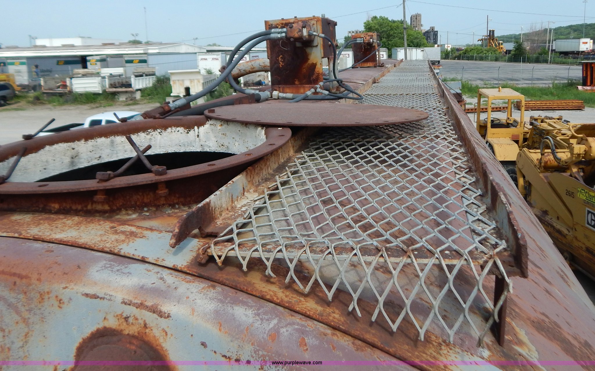 Purple Wave is selling a used Other Industrial or Business in Missouri. This item is a Approximately 10,000 gallon portable tank with the following: 1,419 hours on meter, Cummins 3.9L diesel engine, 26'L x 10' diameter drum, 8.25-15 tires, Previously used form mixing lime, Air brakes inoperable, Front mixer pedal inoperable, Rear gear box needs repair