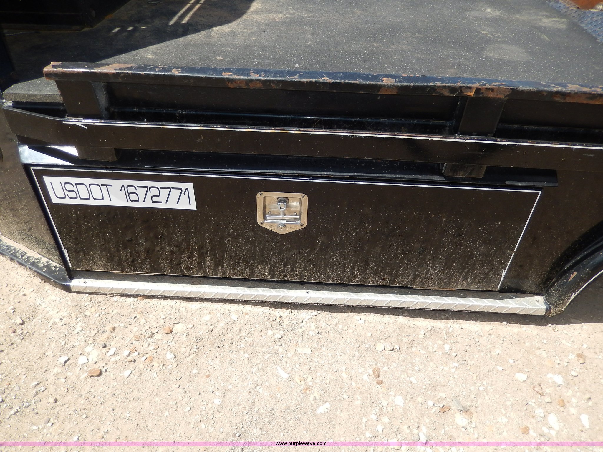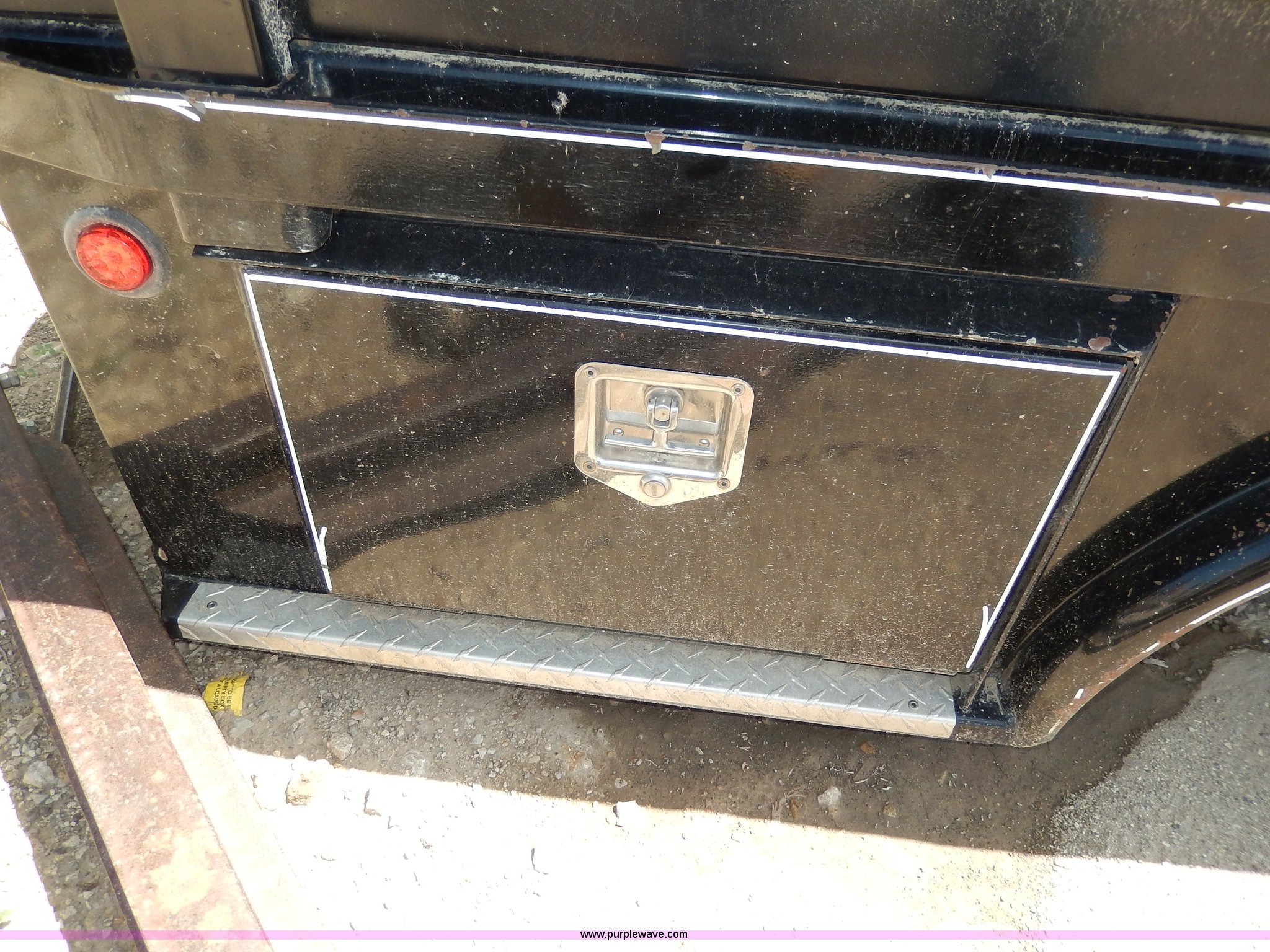 Purple Wave is selling a used Truck Part and Attach. in Kansas. This item is a Flatbed truck bed with the following: 11'L x 100"W, 3" removable sides, Fuel tank with pump, (4) underside storage boxes, (2) locked, No keys, Steel construction, (3) floor mats, Receiver hitch, Gooseneck ball hitch, Trailer wiring