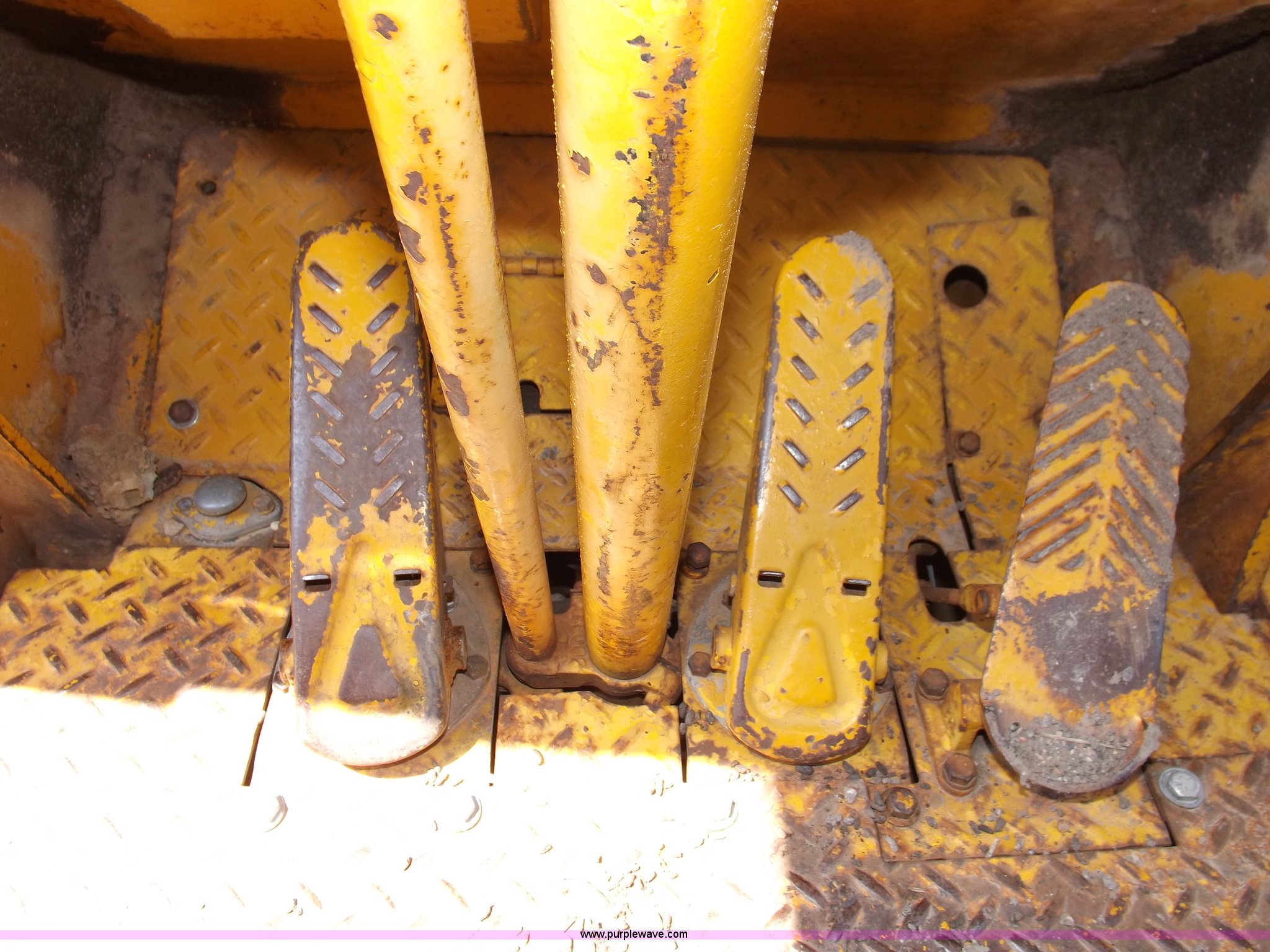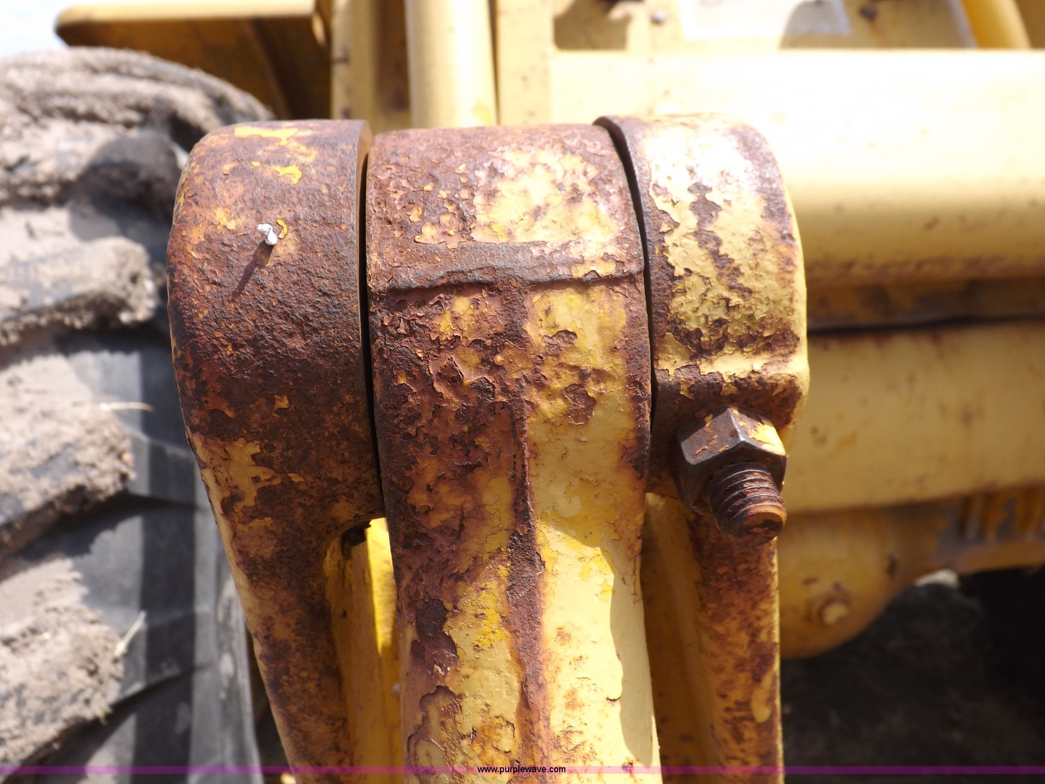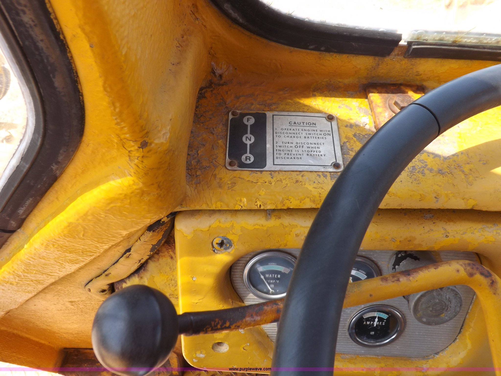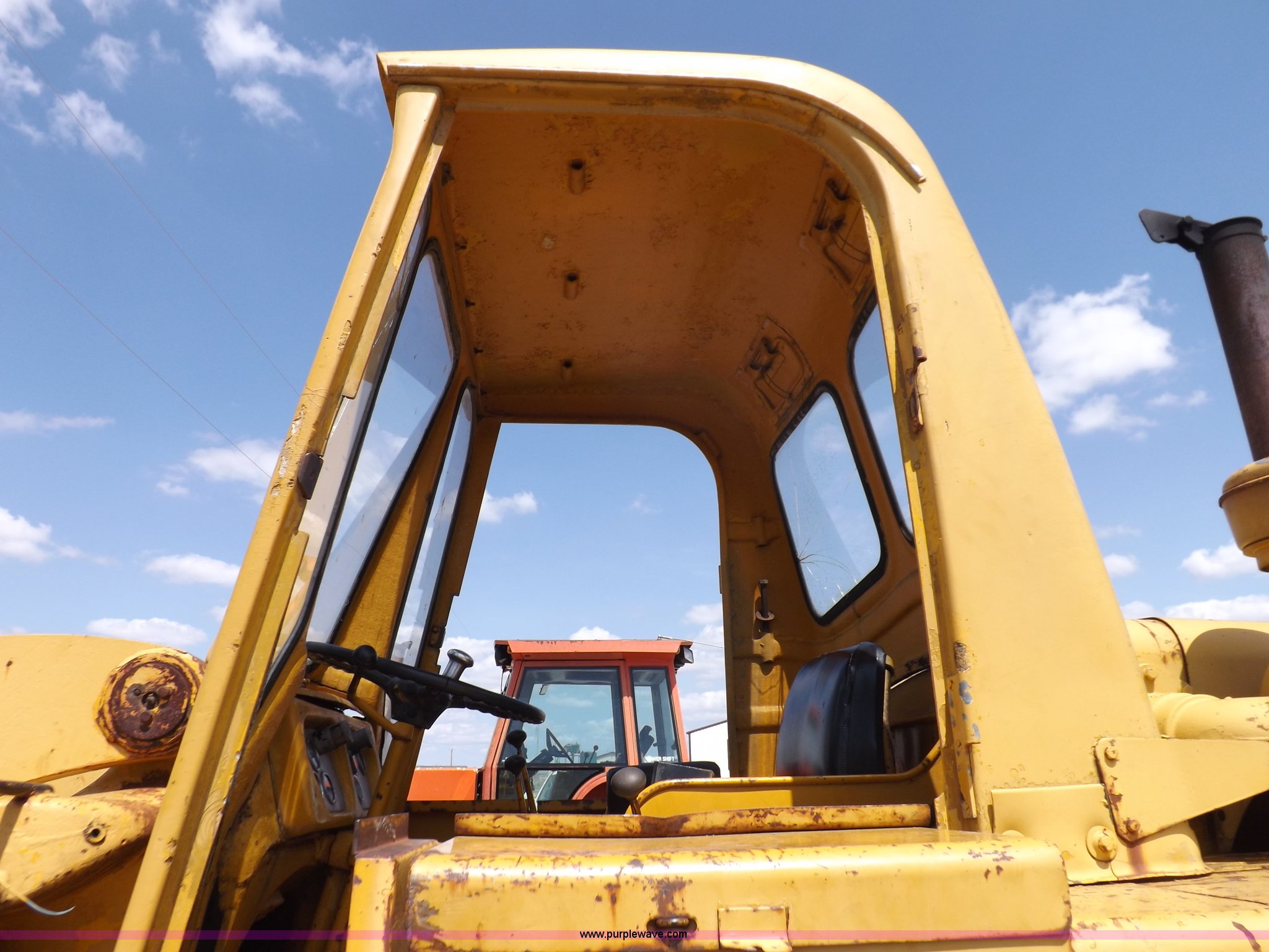 Purple Wave is selling a used Wheel Loader in Kansas. This item is a 1964 Caterpillar 944A wheel loader with the following: Caterpillar four cylinder turbo diesel engine, Two speed shuttle shift transmission, (2) operating ranges, Two wheel high and four wheel low, Heat, Front and rear work lights, Work lights inoperable, 8' general purpose bucket, Drilled for bolt-on edge, Two lever bucket controls, 16.00-24 tires, Upper portion of access doors missing, Front left and right rear glass cracked, Bucket linkage repaired, Serial 43A3025