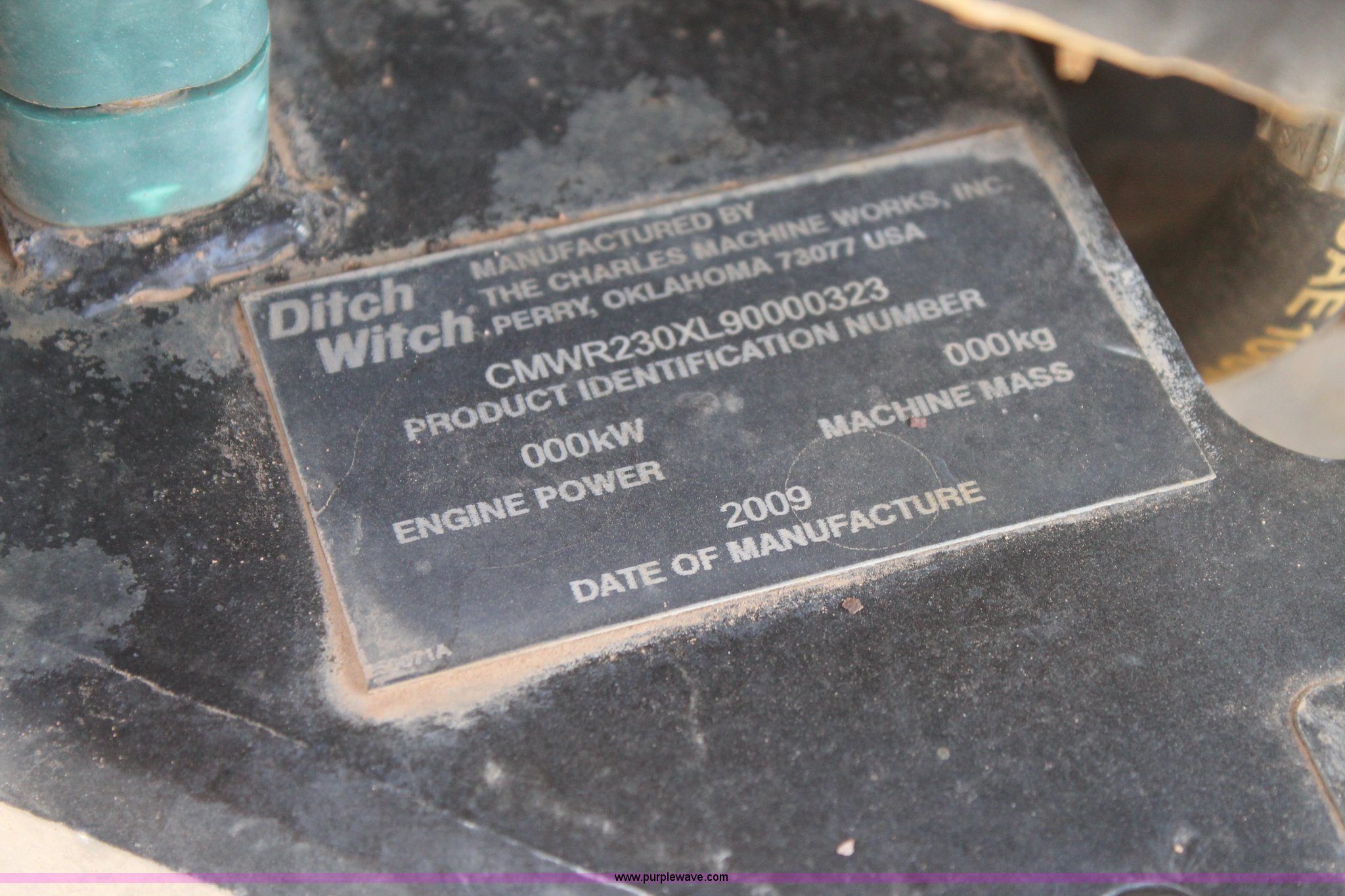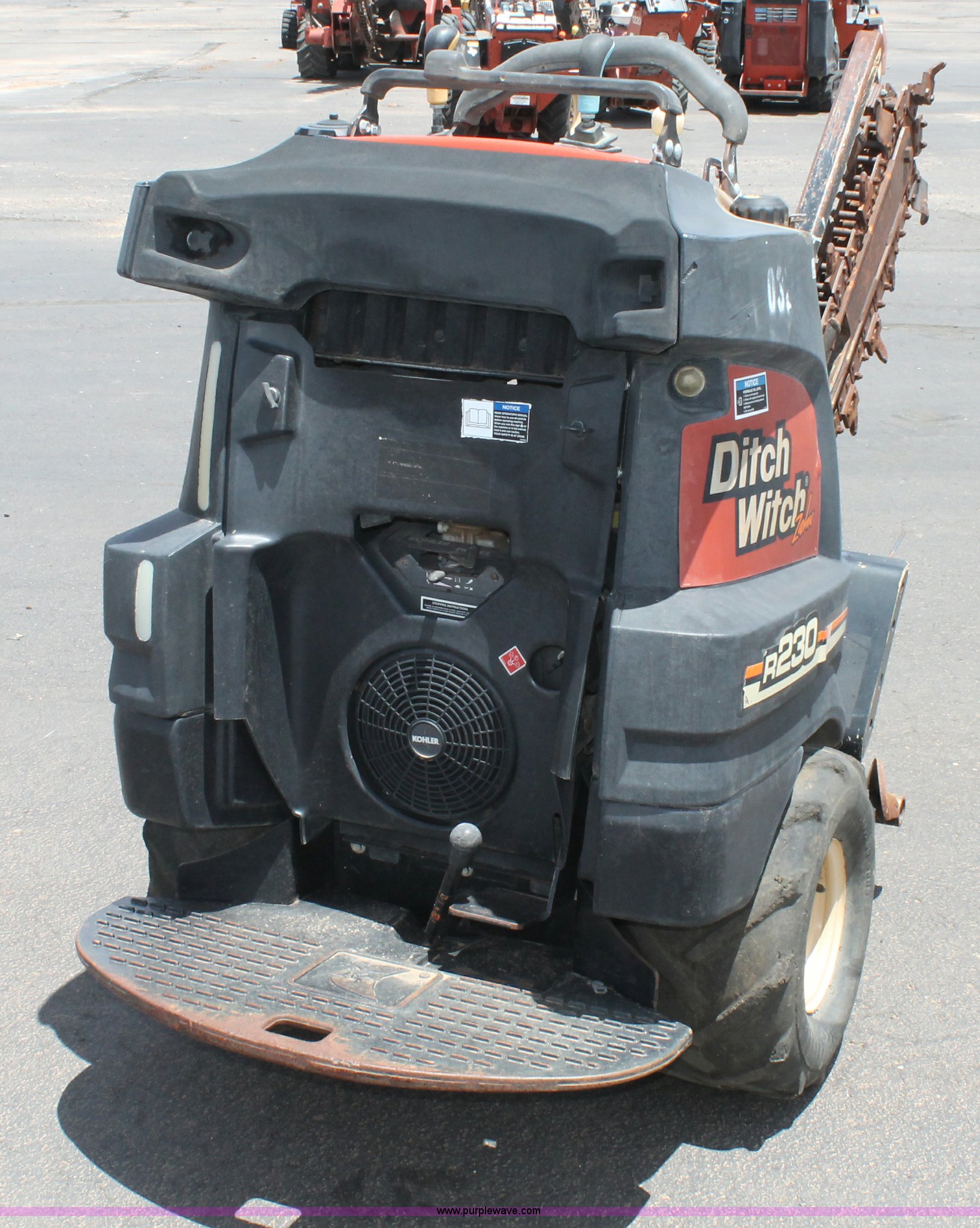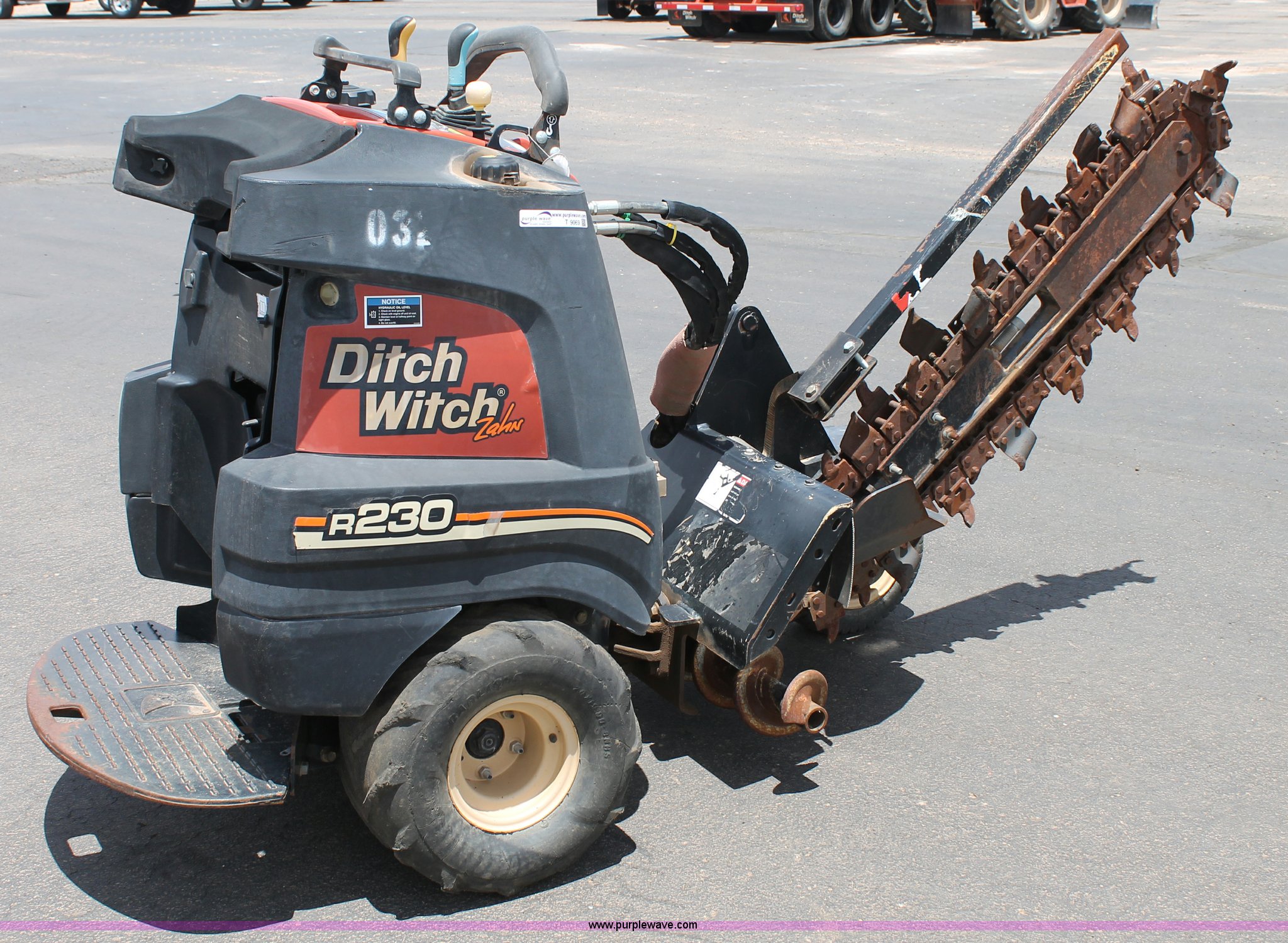 Purple Wave is selling a used Trencher or Rock Saw in Texas. This item is a 2009 Ditch Witch R230 trencher with the following: 422 hours on meter, Kohler CH23S two cylinder gas engine, 23 HP, 70"L, 36"W, 53.5" mobile height, 10.7" platform height, 5.3" ground clearance, 10.9 gallon fuel capacity, 200 amp battery, 34.2" wheelbase, 20 x 10.00 drive tires, 1,048 lbs. base operating weight, Serial CMWR230XL90000323