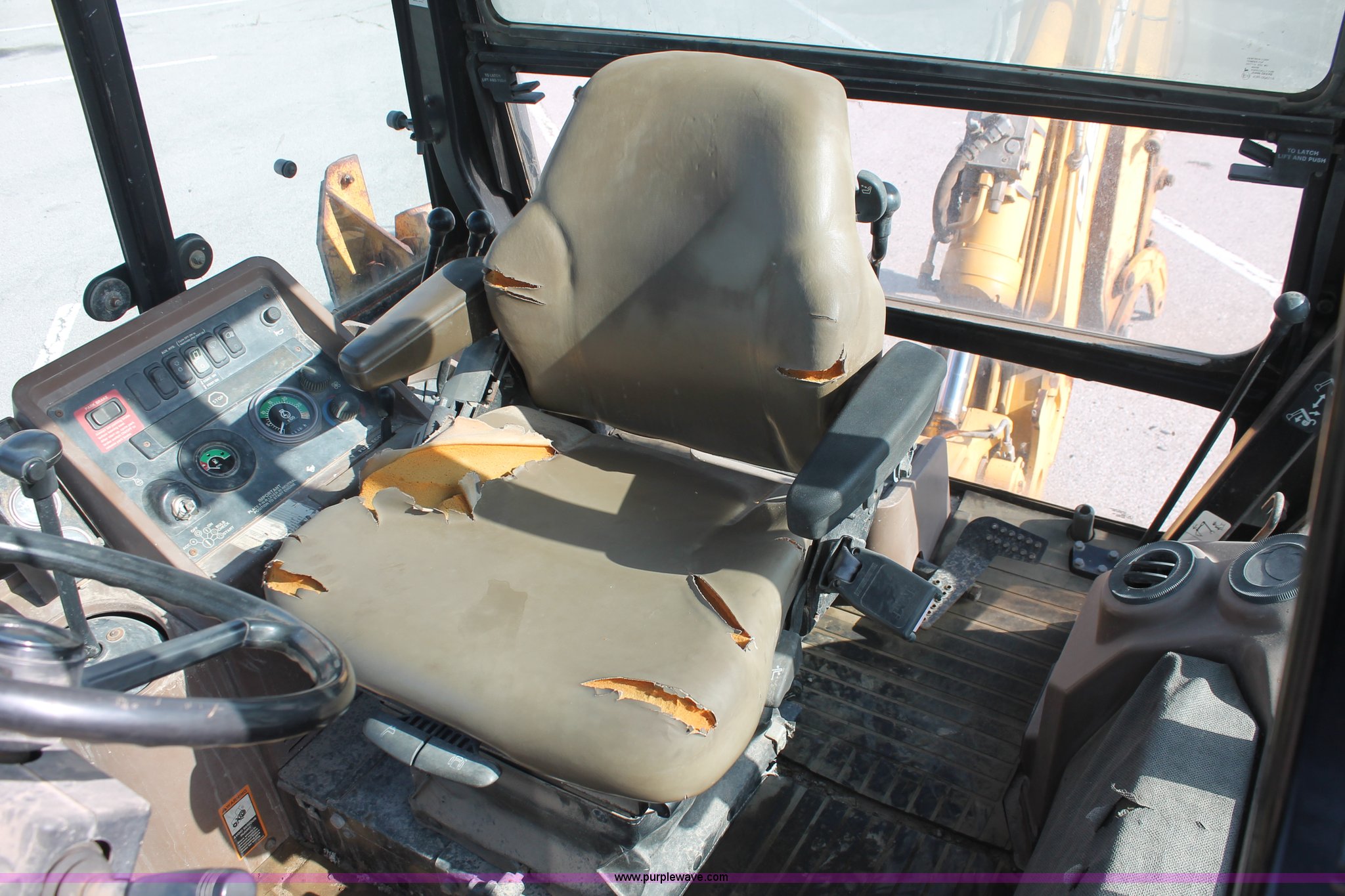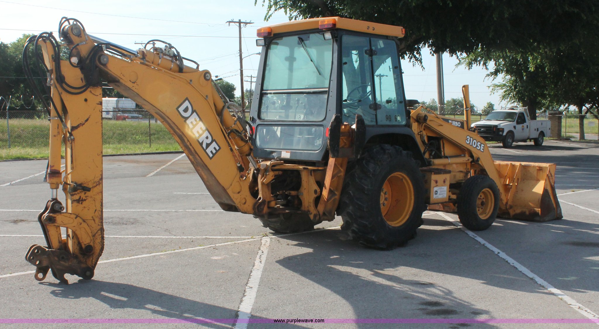 Purple Wave is selling a used Tractor Loader Backhoe in Oklahoma. This item is a 1999 John Deere 310SE backhoe with the following: 2,354 hours on meter, John Deere 4.5L four cylinder turbo diesel engine, 80 HP, Heat, Fan, Suspension seat, Front and rear wipers, Work lights, Joystick loader control, Two stick backhoe control, John Deere 92"W bucket, Smooth bolt-on edge, 1.3 cu. yd. capacity, Serial AT183747, 7'L backhoe stick, Auxiliary hydraulics, Stick fractured at the hinge, 24"W bucket, Five bolt-on teeth, Hydraulic outriggers, 23'5" transport length, 7'2" transport width, 6'9" wheelbase, 11L-16SL front tires, 19.5L-24 rear tires, 13,500 lbs. base operating weight, Serial T03105SE851522, Unit# 210