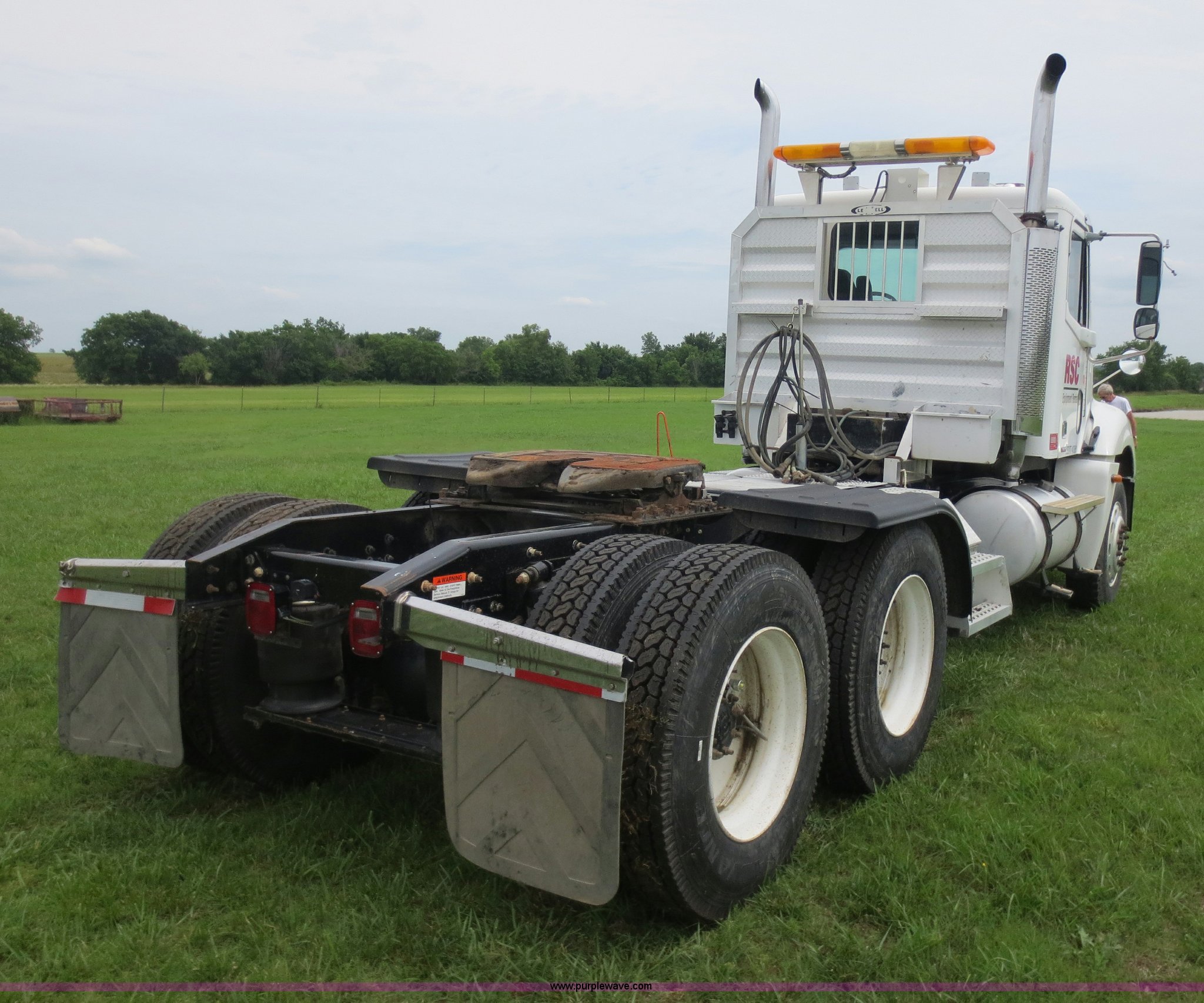 Purple Wave is selling a used Truck Tractor in Oklahoma. This item is a 2005 Freightliner Columbia semi truck with the following: 383,598 miles on odometer, Caterpillar C13 12.5L L6 diesel engine, Eaton Fuller 10 speed manual transmission, Model FRO-1610C, Twin screw, AC and heat, Cruise, AM/FM/CD, Passenger daylight door, Air ride cab, Air ride seat, Heated mirrors, Visor, Chrome bumper, Block heater, Dual 90 gallon fuel tanks, Dual rear exhaust stacks, Aluminum deck plate, Headache rack, Storage and chain hanger, Flashing light, Half fenders, Sliding fifth wheel, Side mounted toolbox with step, PTO, Wet kit, Air suspension, Air brakes, Jake brake, Aluminum front wheels, Steel rear wheels, 210" wheelbase, 11R24.5 tires, GVWR 53,220 lbs, FAWR 13,220 lbs, IAWR 20,000 lbs, RAWR 20,000 lbs, Right bottom step missing, Brackets bent, All fluids changed approx. 50 miles ago, Tires replaced approx. 50 miles ago, EIN 536154RA