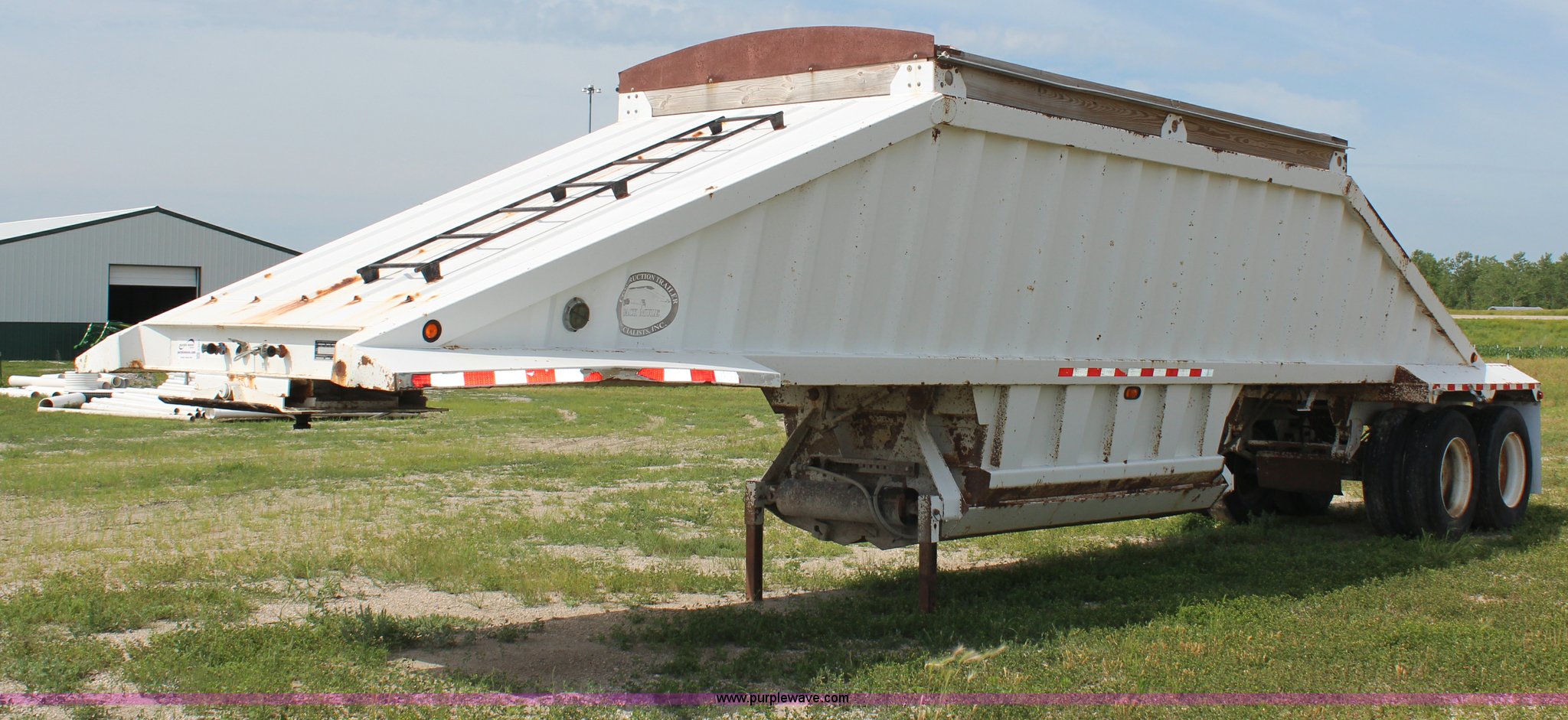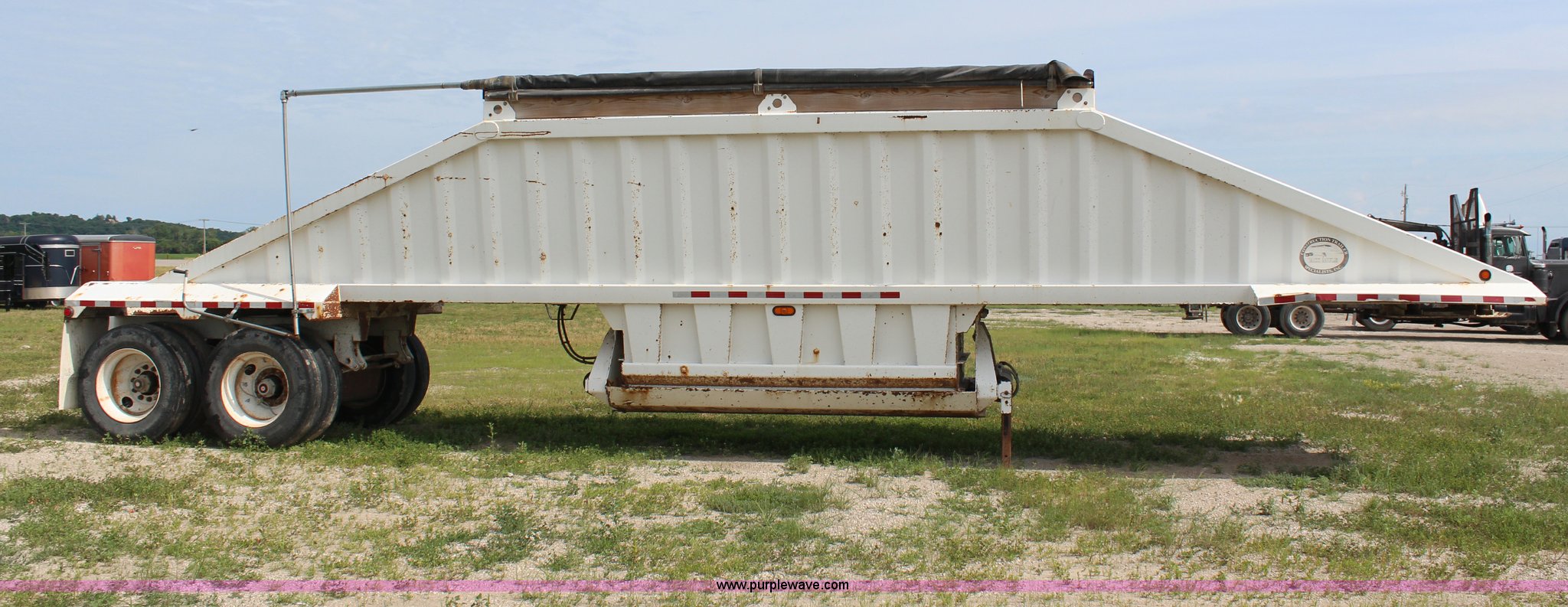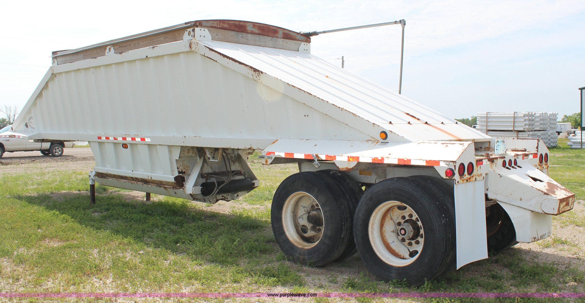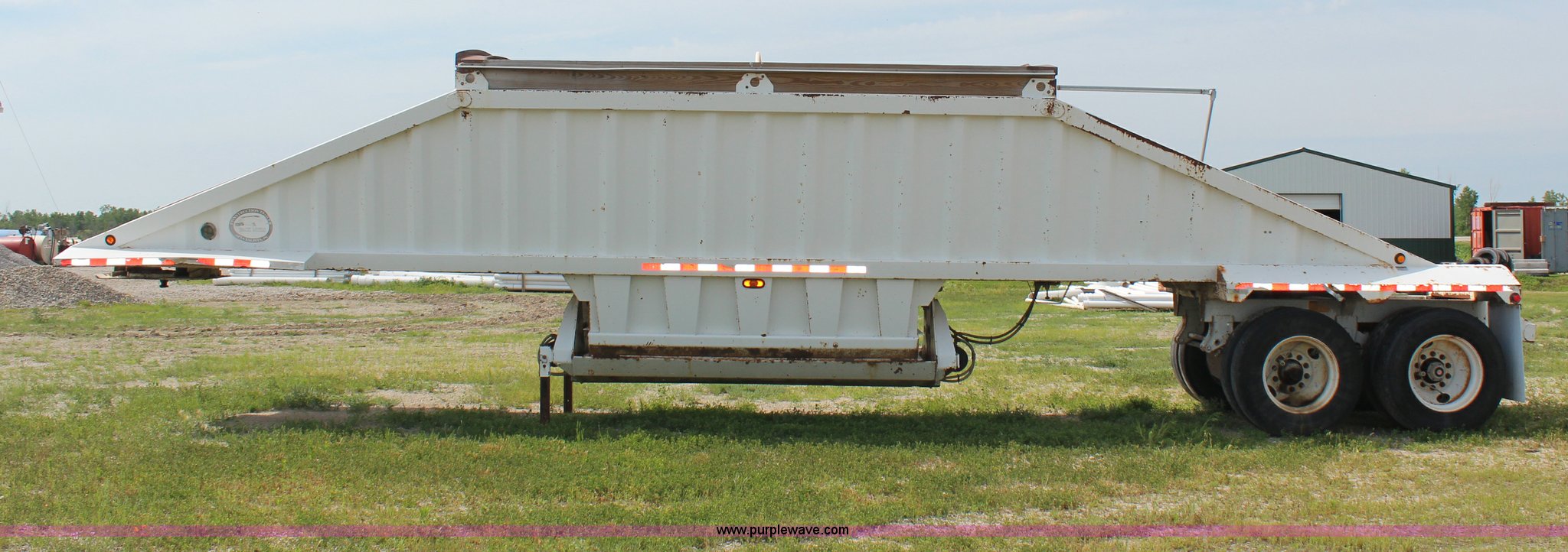 Purple Wave is selling a used Bottom Dump Trailer in Kansas. This item is a 2003 Construction belly dump trailer with the following: 40' overall length, Spring suspension, Air brakes, 11R24.5 tires, GVWR 80,000 lbs, Recently replaced tarp
