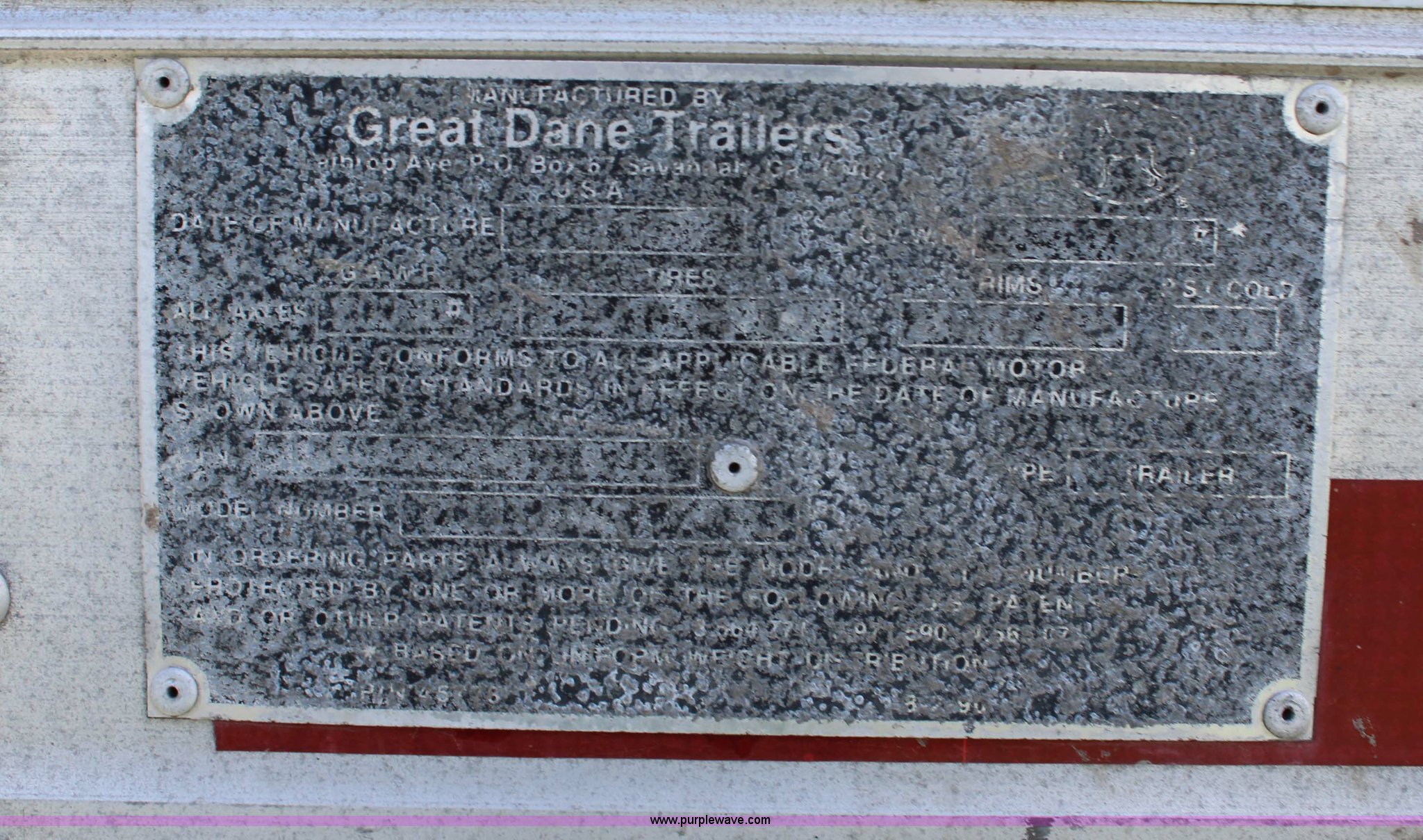 Purple Wave is selling a used Dry Van Trailer in Kansas. This item is a 1998 Great Dane 53' dry van trailer with the following: Swinging doors, Translucent roof, Air suspension, Air brakes, Sliding tandems, Aluminum wheels, 285/75R22.5 tires