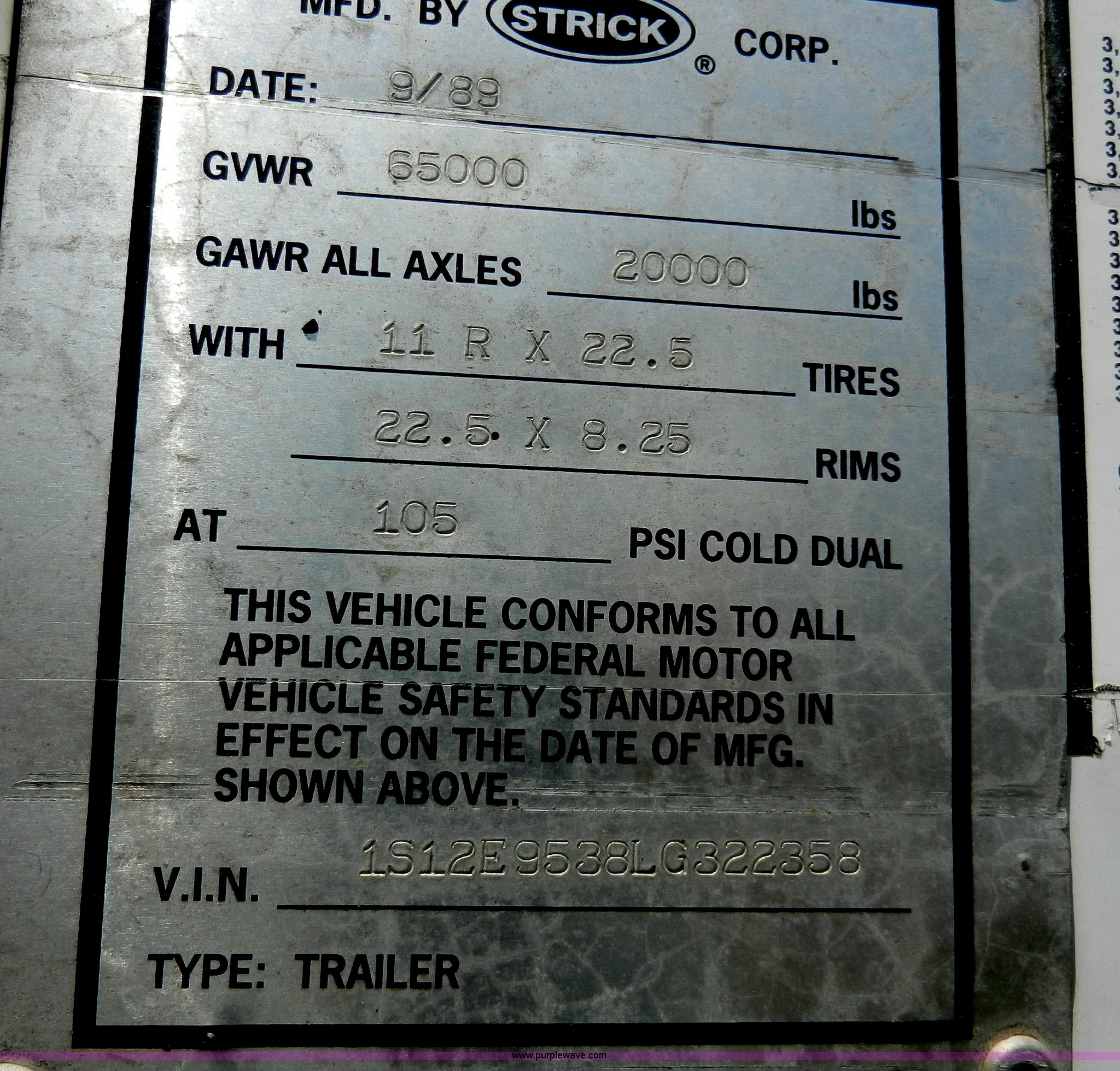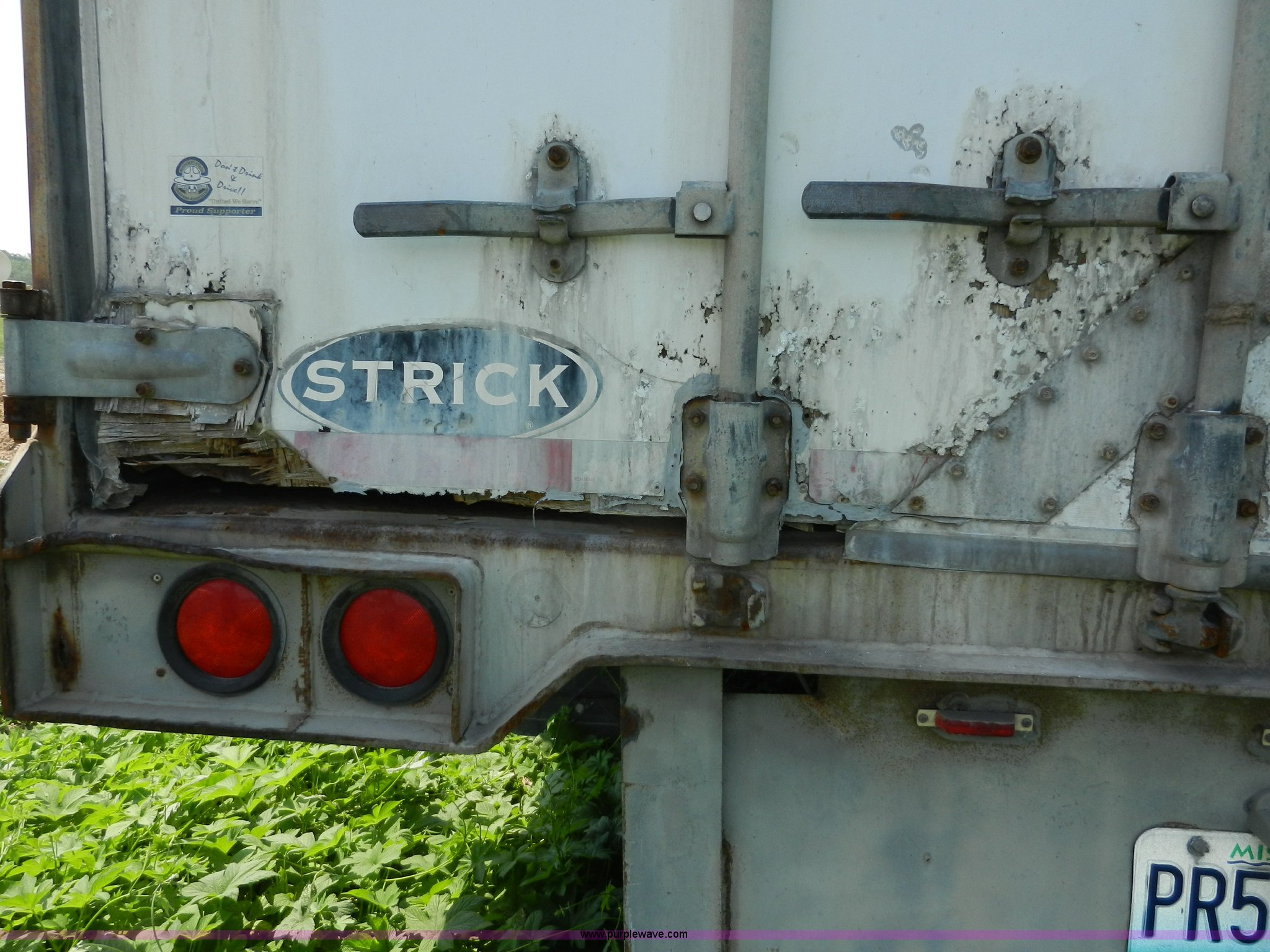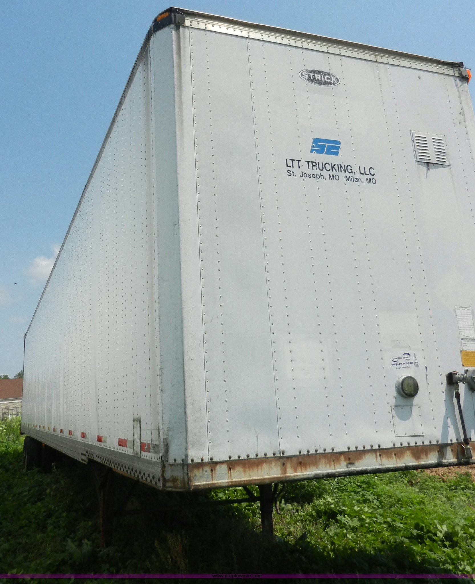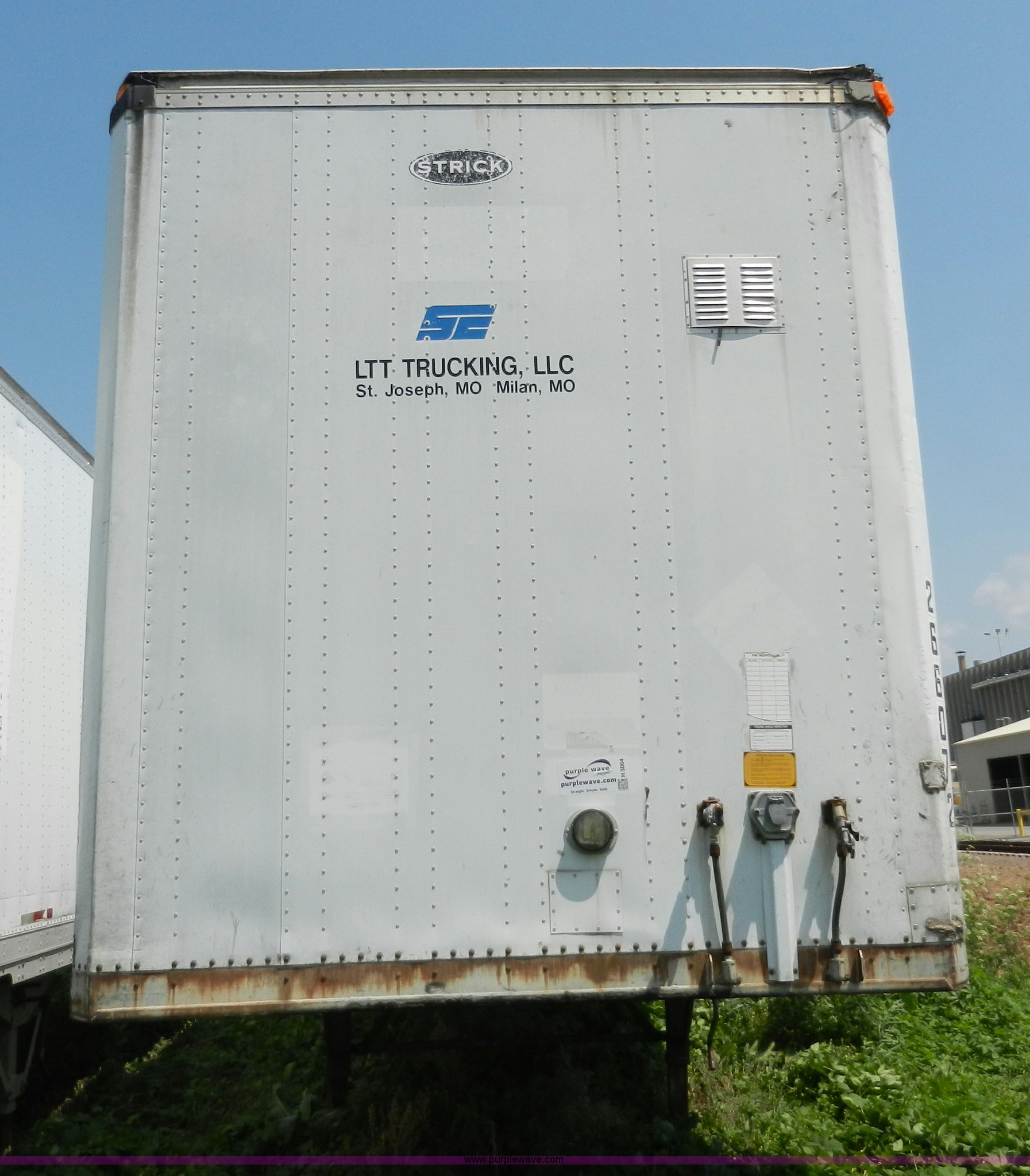 Purple Wave is selling a used Dry Van Trailer in Missouri. This item is a 1990 Strick 53' dry van trailer with the following: Wood floor, Spring suspension, Air brakes, Sliding tandem axle, 275/80R22.5 tires, GVWR 65,000 lbs, Cosmetic damage to rear doors, Unit# 266072