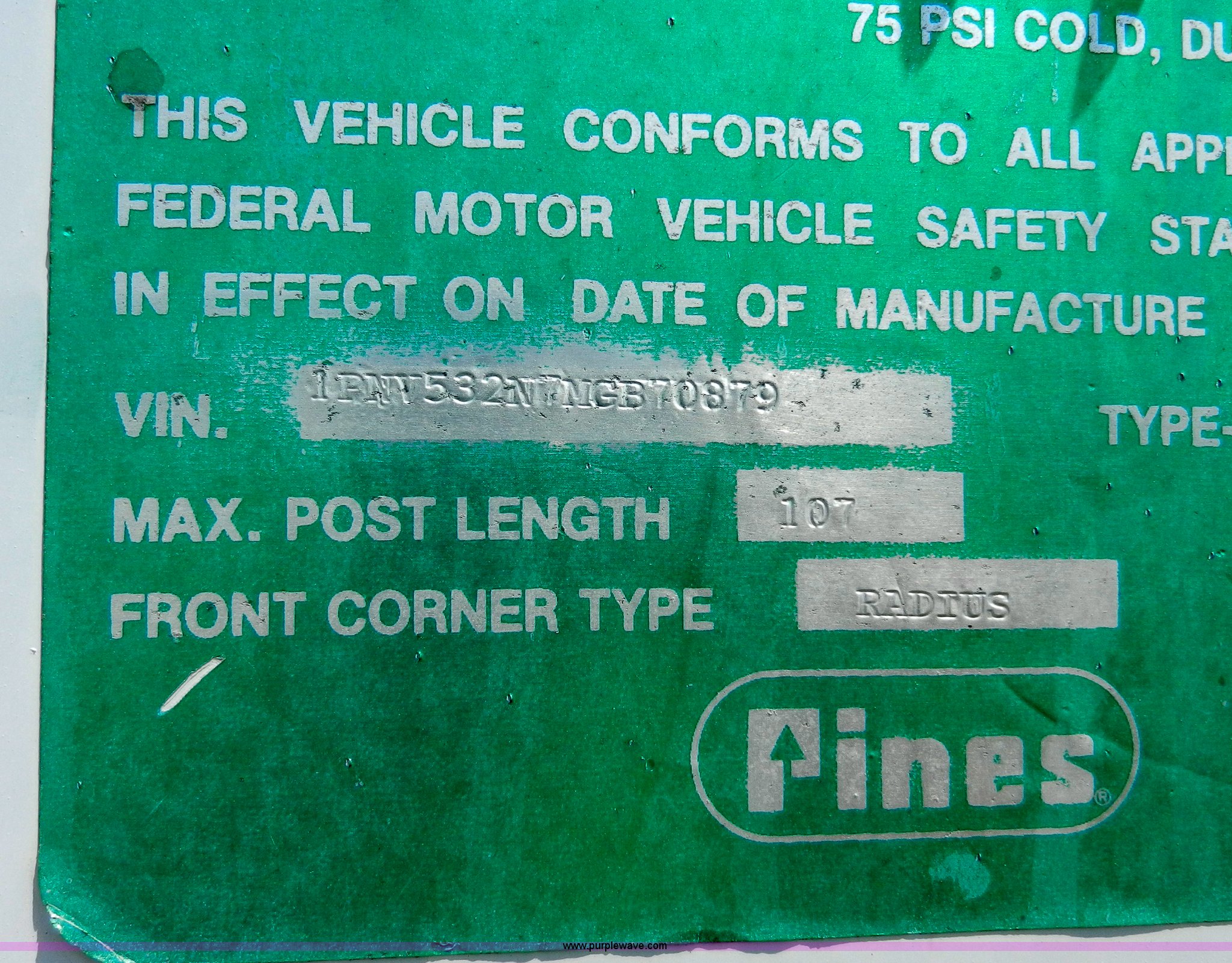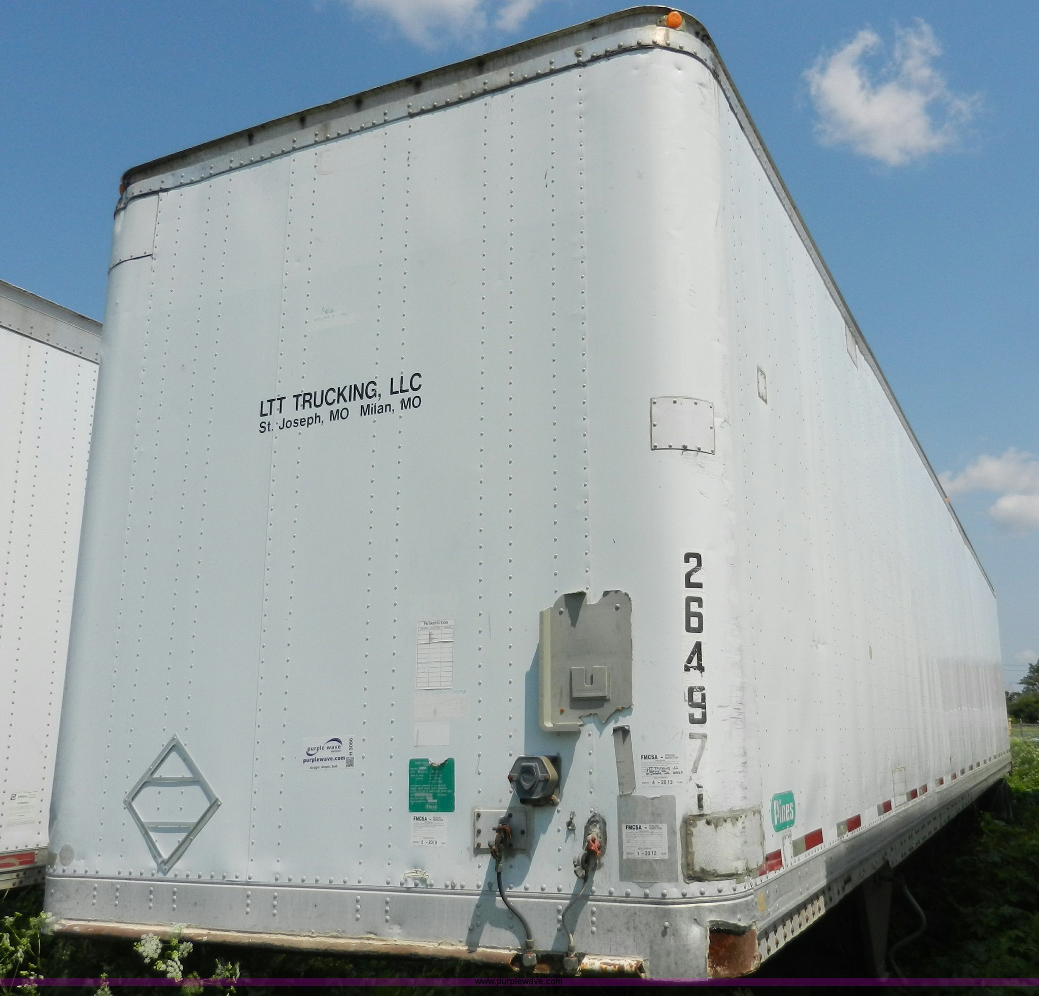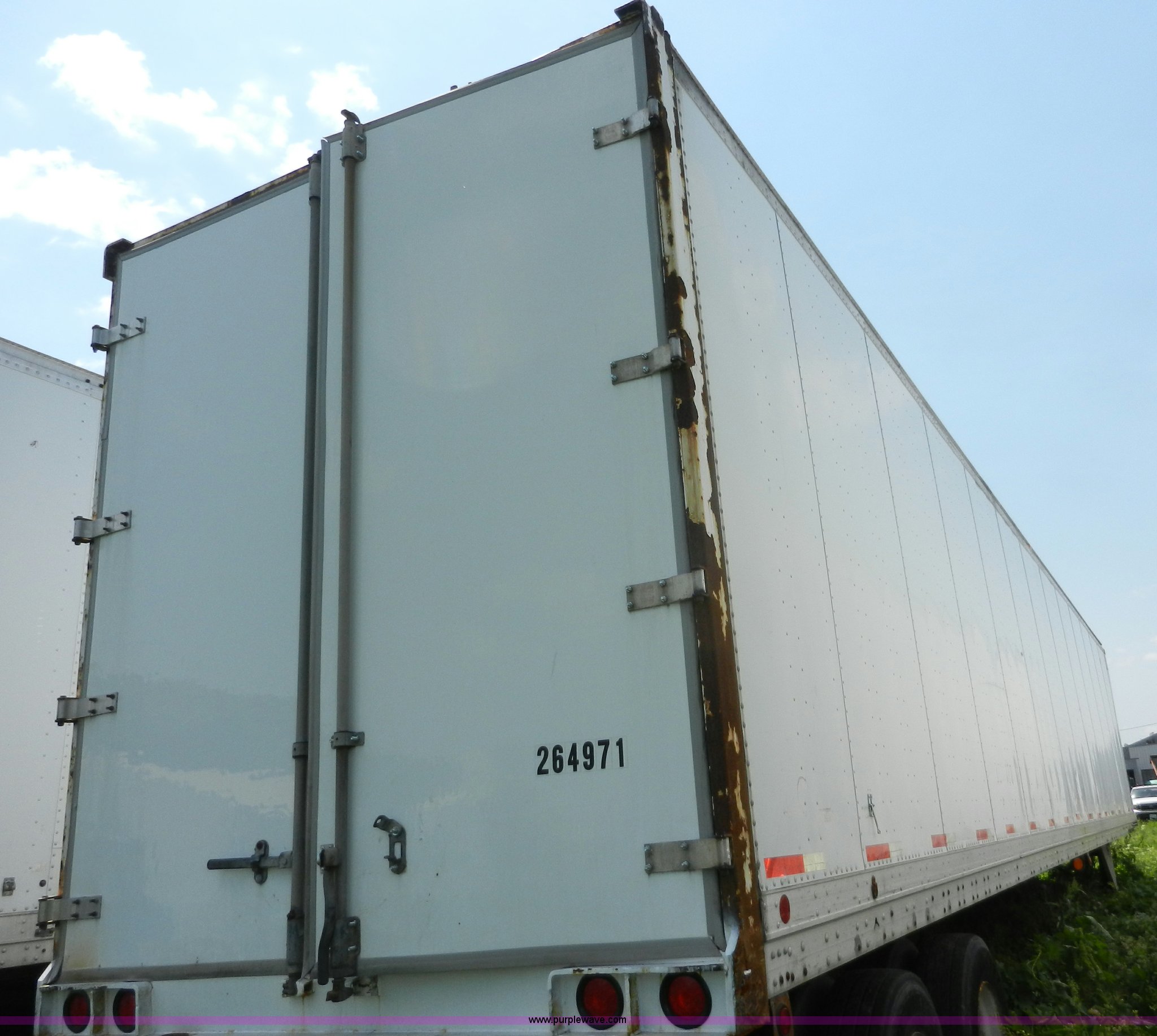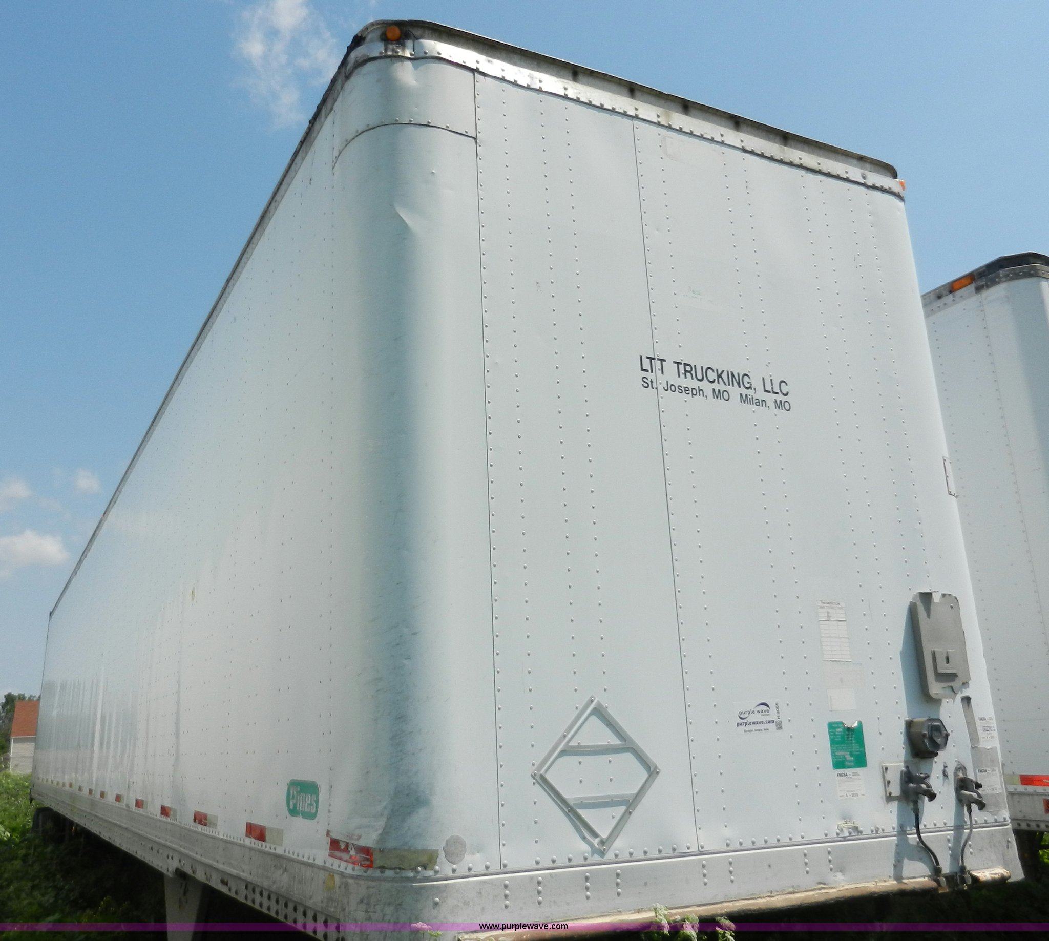 Purple Wave is selling a used Dry Van Trailer in Missouri. This item is a 1991 Pines 53' dry van trailer with the following: Wood floor, Spring suspension, Air brakes, Sliding tandem axle, 295/75R22.5 tires, GVWR 68,080 lbs, Unit# 264971