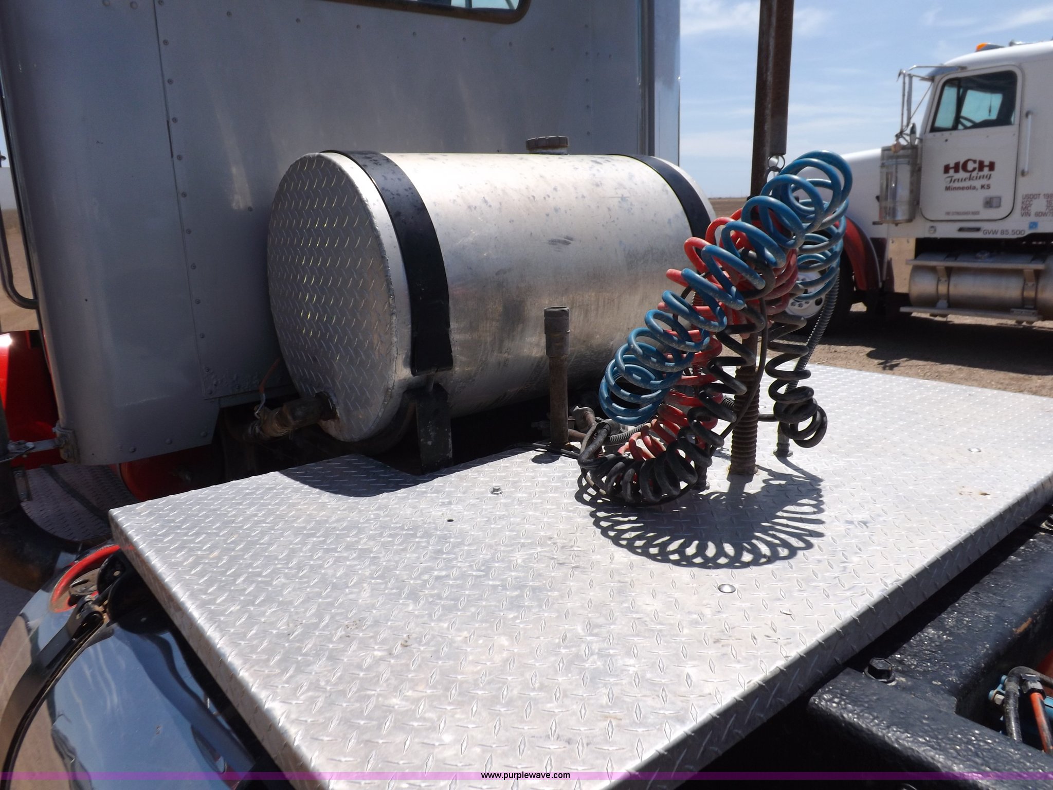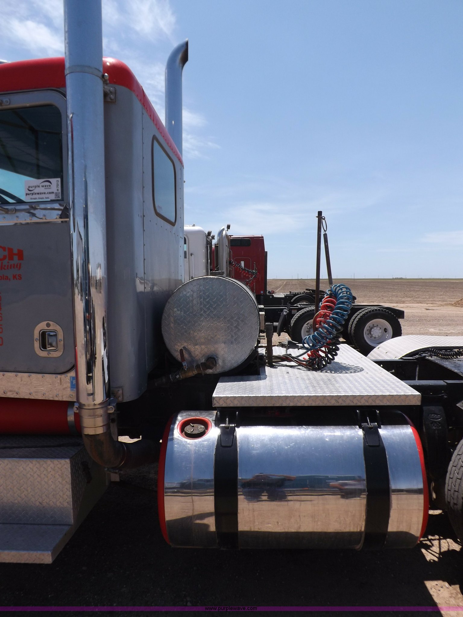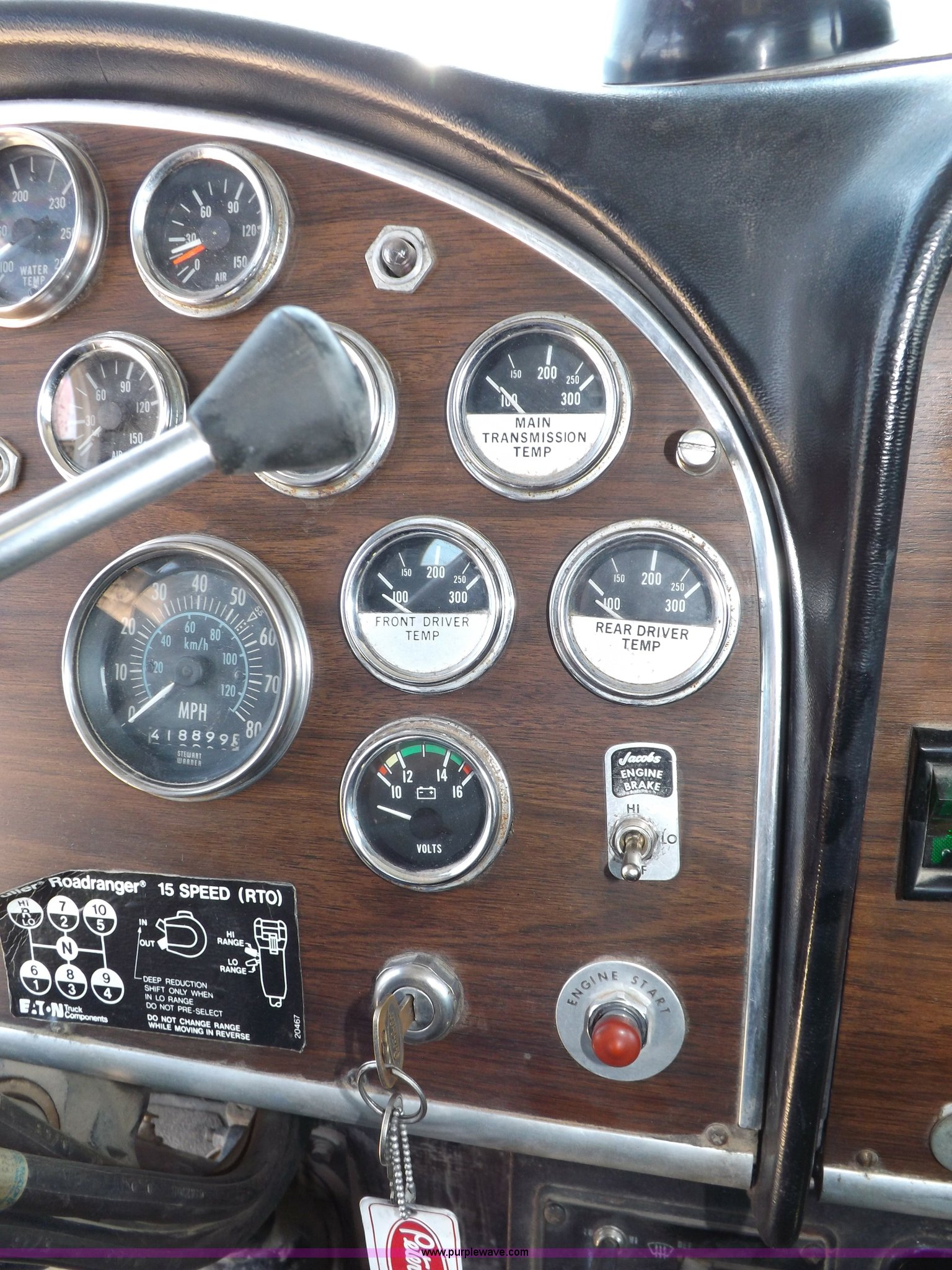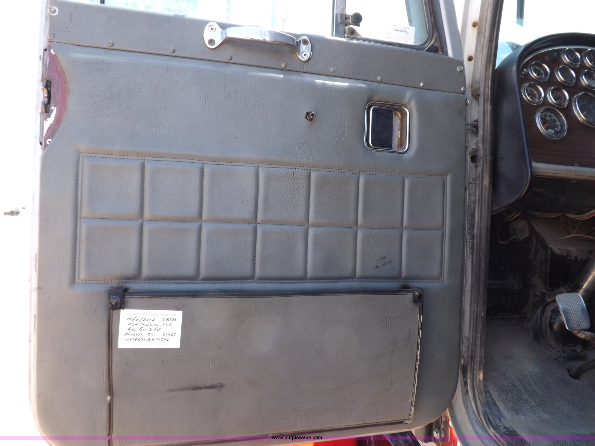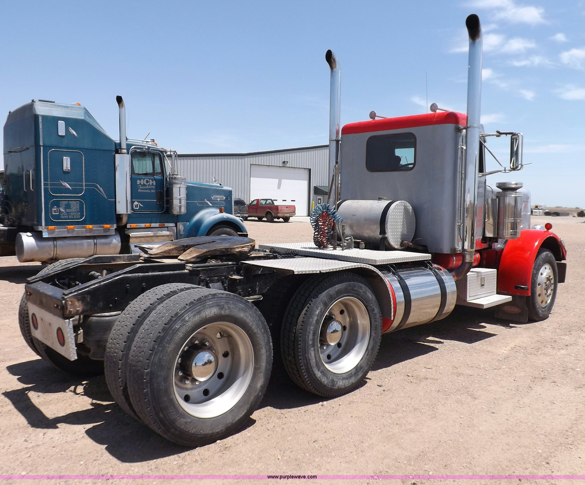 Purple Wave is selling a used Truck Tractor in Kansas. This item is a 1984 Peterbilt 359 semi truck with the following: 418,899 miles on odometer, Caterpillar 3406 14.6L L6 diesel engine, Eaton Fuller Low Range RTO 15 speed manual transmission, Twin screw, AC and heat, AM/FM, Air suspension seat, Heated mirrors, Throttle lock, Hydraulic wet kit tank, Exterior visor, Chrome bumper, Block heater, Air slide fifth wheel plate, Dual fuel tanks, Aluminum half fenders, Dual rear exhaust stacks, Aluminum deck plate, PTO, Wet kit, Dump valves, Air suspension, Air brakes, Brake controller, Jake brake, 228" wheelbase, Aluminum wheels, 285/75R24.5 tires