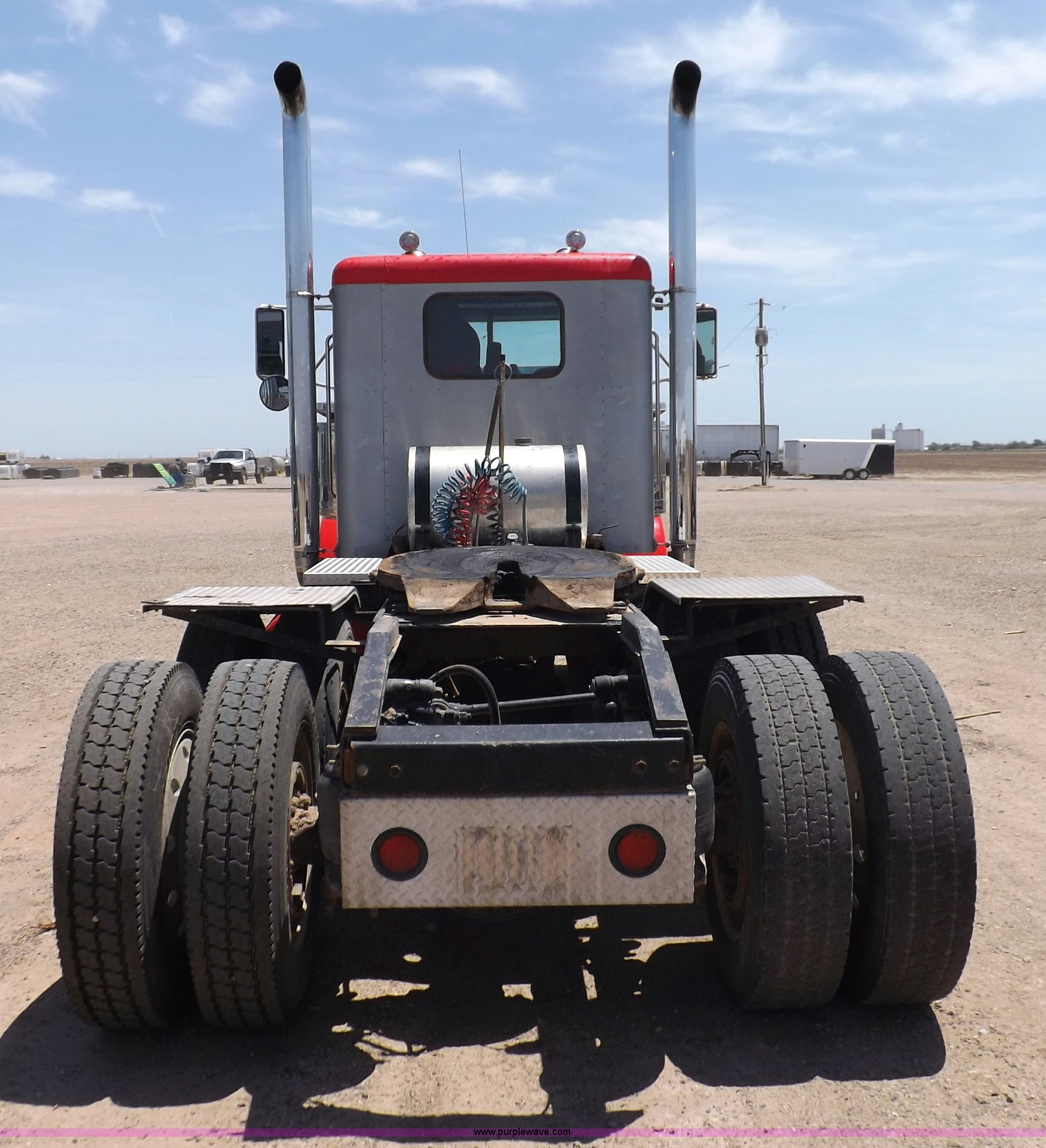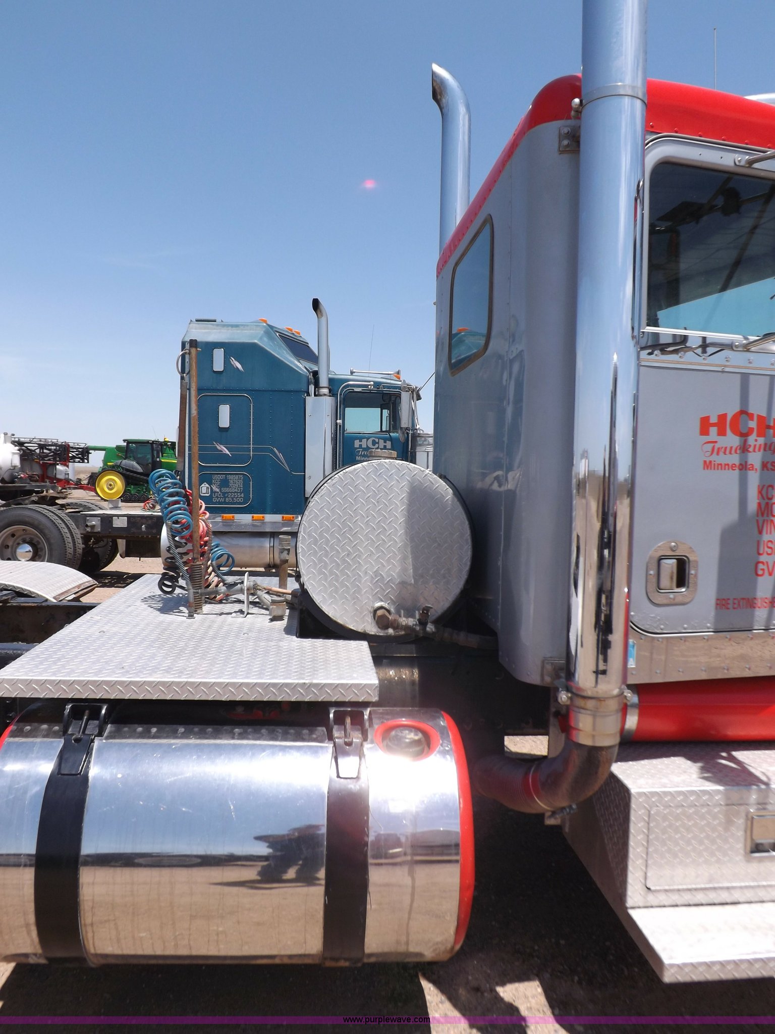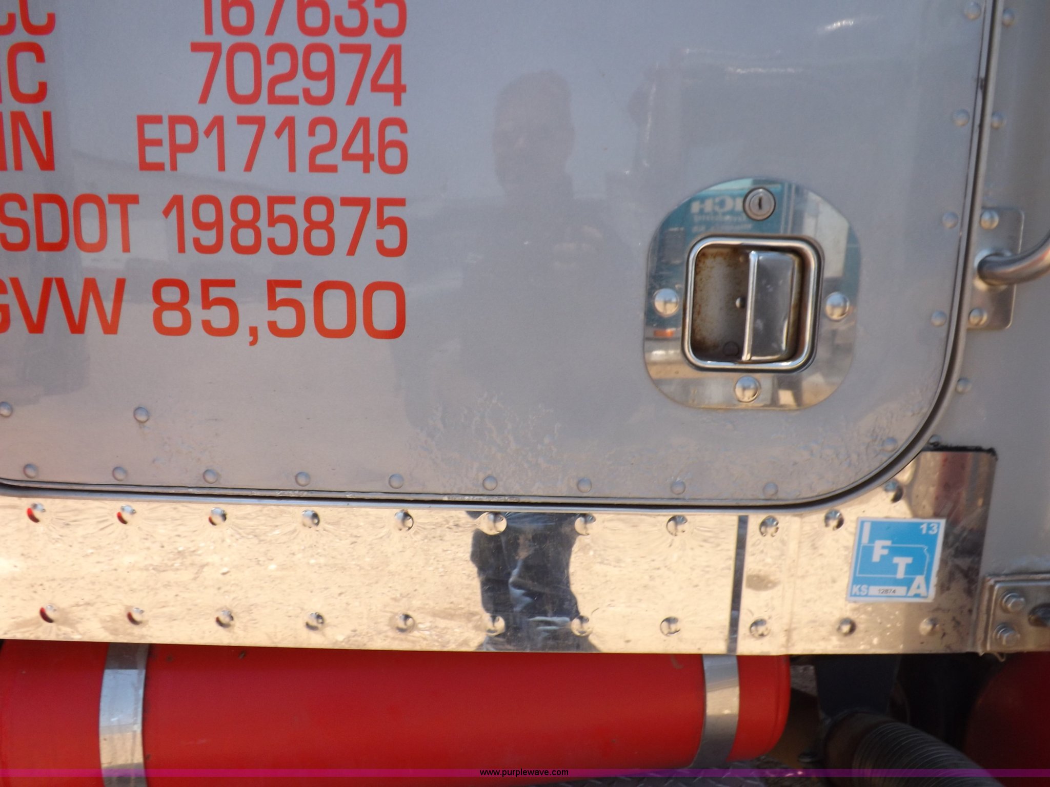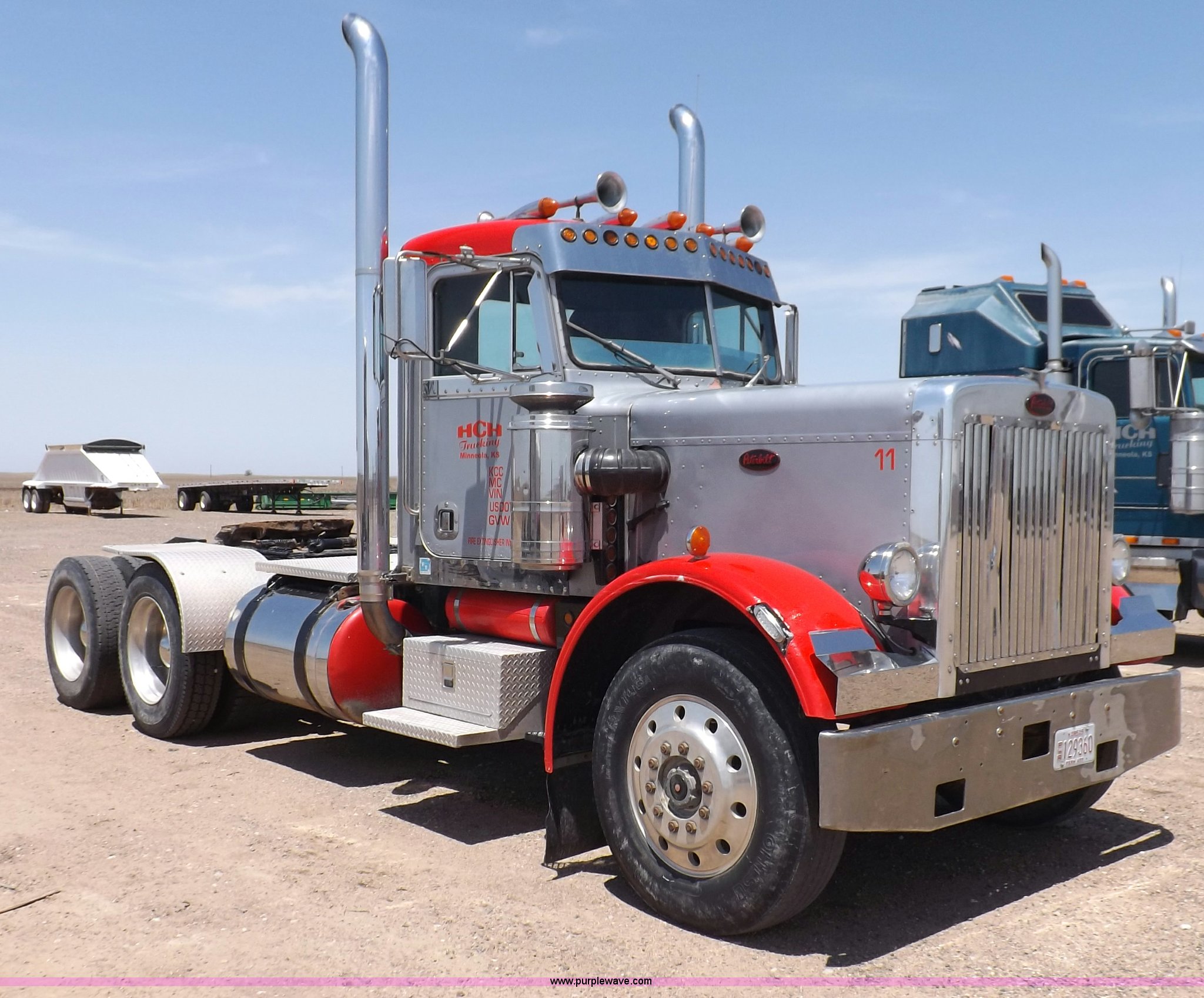 Purple Wave is selling a used Truck Tractor in Kansas. This item is a 1984 Peterbilt 359 semi truck with the following: 418,899 miles on odometer, Caterpillar 3406 14.6L L6 diesel engine, Eaton Fuller Low Range RTO 15 speed manual transmission, Twin screw, AC and heat, AM/FM, Air suspension seat, Heated mirrors, Throttle lock, Hydraulic wet kit tank, Exterior visor, Chrome bumper, Block heater, Air slide fifth wheel plate, Dual fuel tanks, Aluminum half fenders, Dual rear exhaust stacks, Aluminum deck plate, PTO, Wet kit, Dump valves, Air suspension, Air brakes, Brake controller, Jake brake, 228" wheelbase, Aluminum wheels, 285/75R24.5 tires