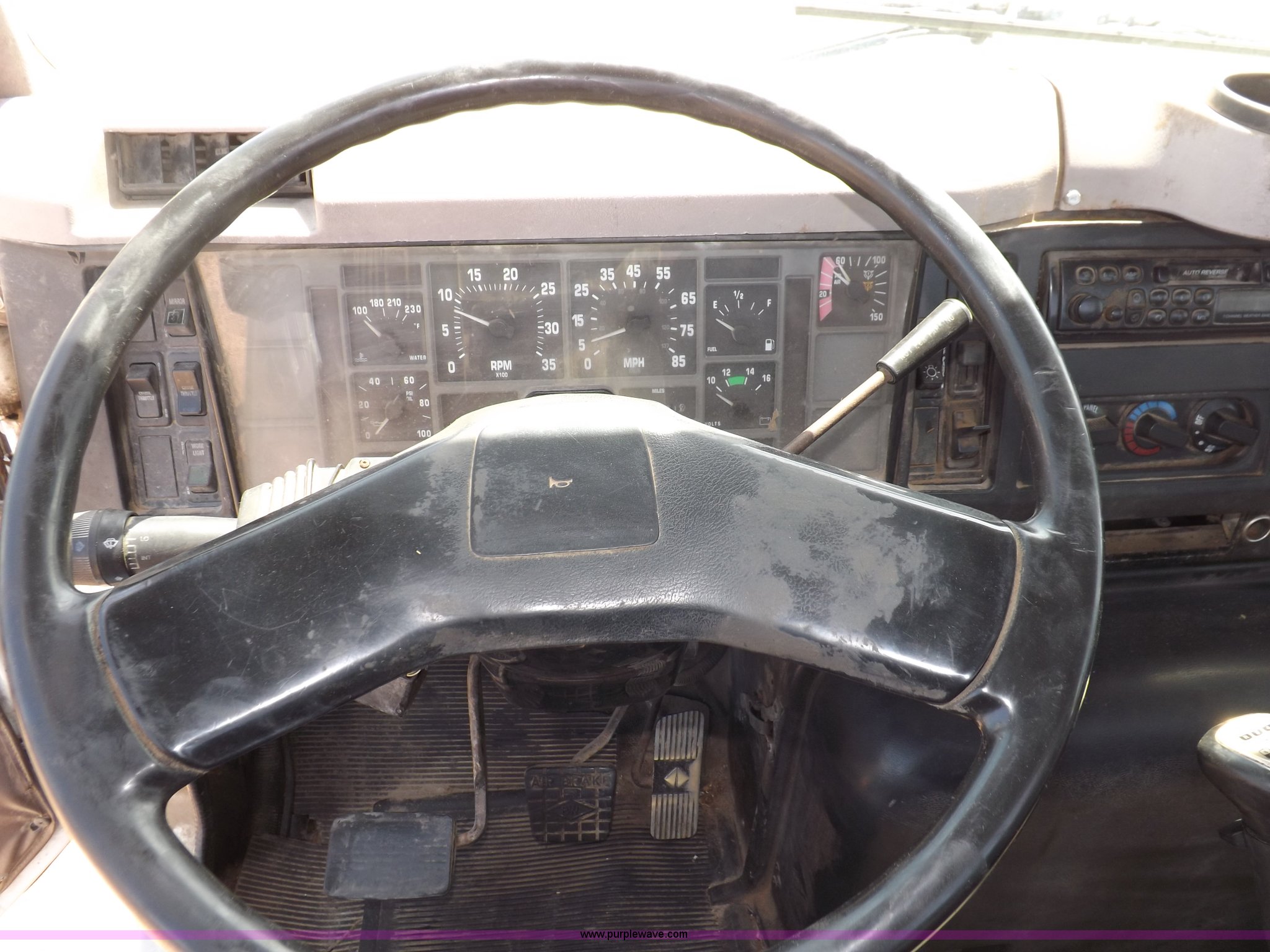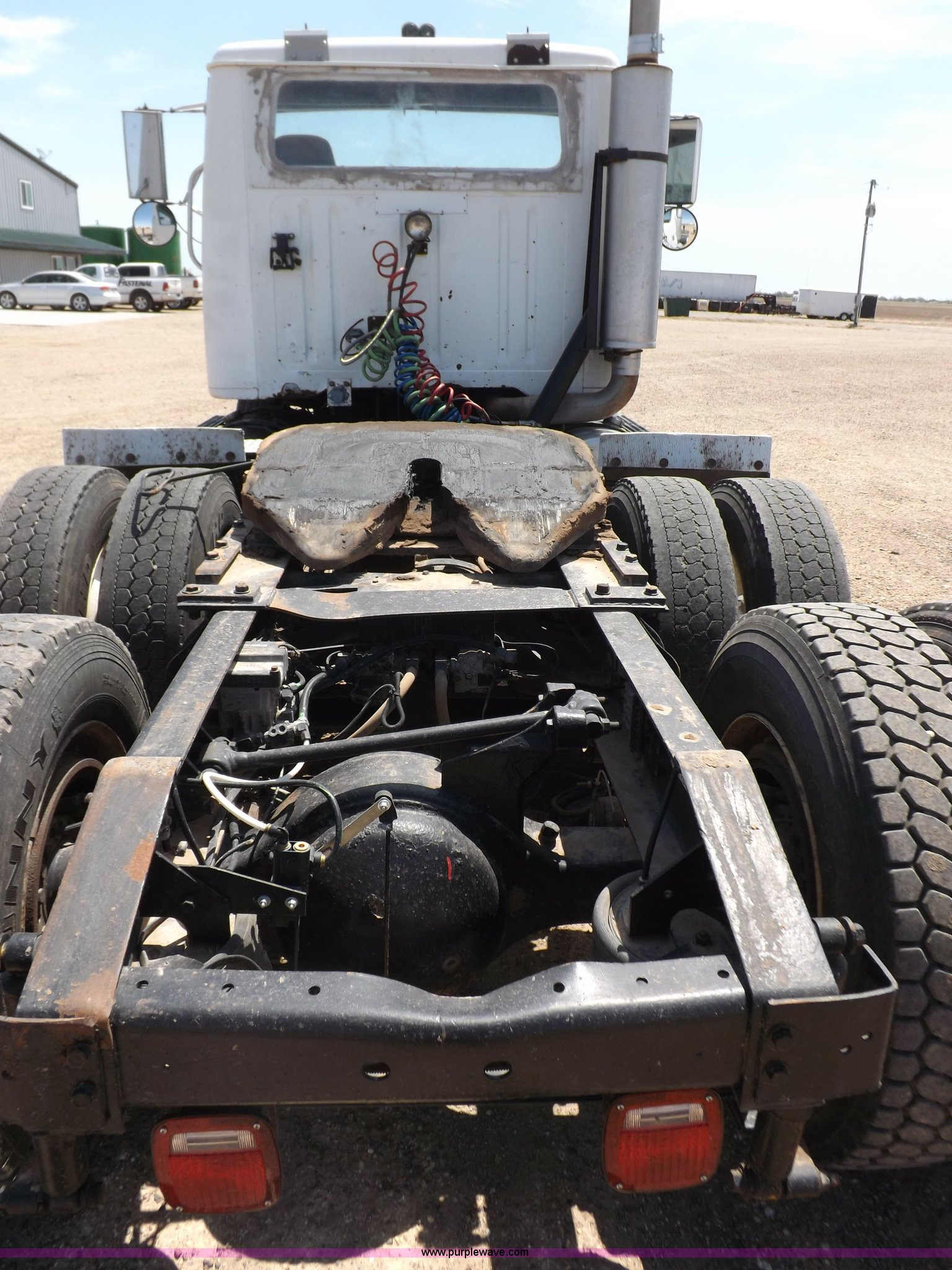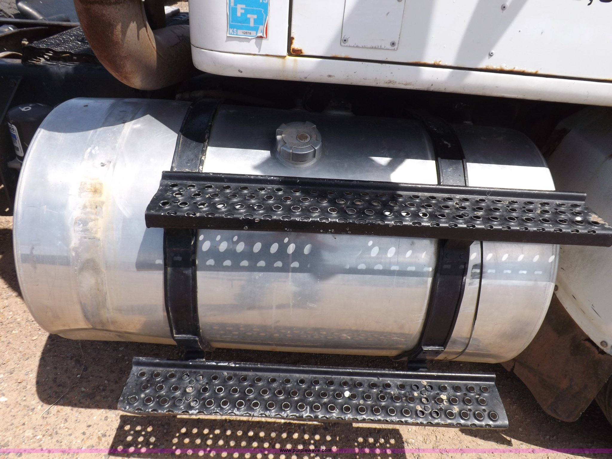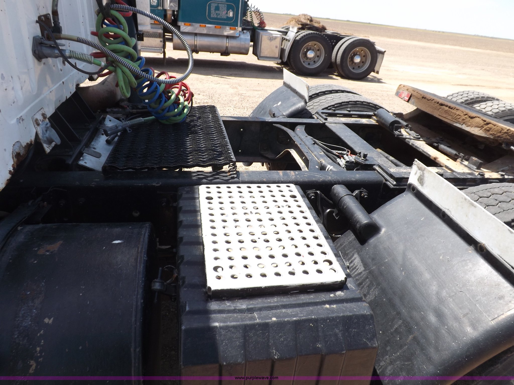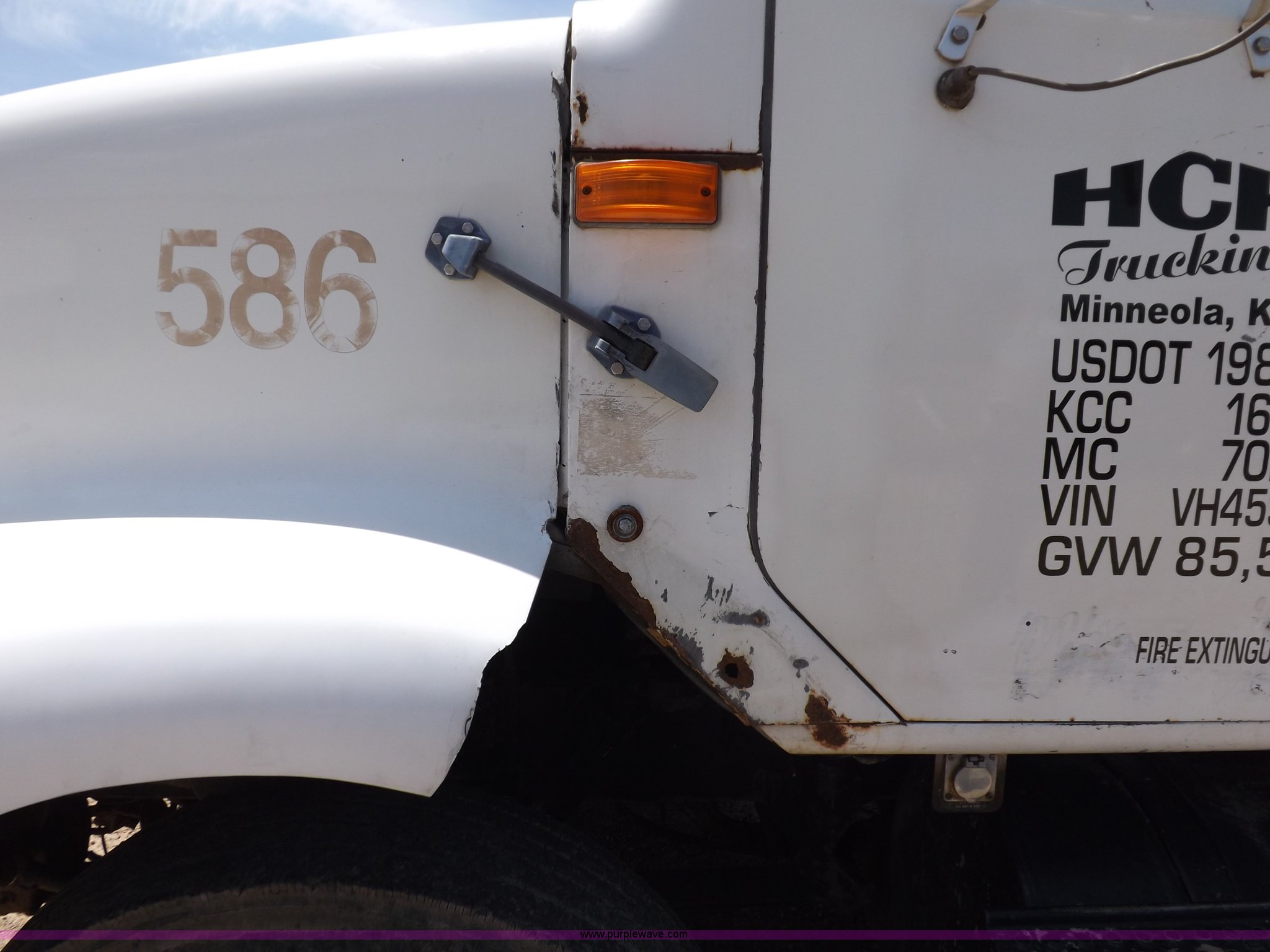 Purple Wave is selling a used Truck Tractor in Kansas. This item is a 1997 International 8200 semi truck with the following: 844,581 miles on odometer, Cummins N14 14.0L L6 diesel engine, Eaton fuller 10 speed manual transmission, Twin screw, AC and heat, Cruise, AM/FM/cassette, Air suspension seat, Heated mirrors, Block heater, Air slide fifth wheel plate, Dual 100 gallon fuel tanks, Poly quarter fenders, Single rear exhaust stack, Steel deck plate, Dump valves, Air suspension, Air brakes, Brake controller, 180" wheelbase, Aluminum front wheels, 295/75R22.5 tires, GVWR 52,000 lbs, FAWR 12,000 lbs, IAWR 20,000 lbs, RAWR 20,000 lbs, Recently replaced clutch