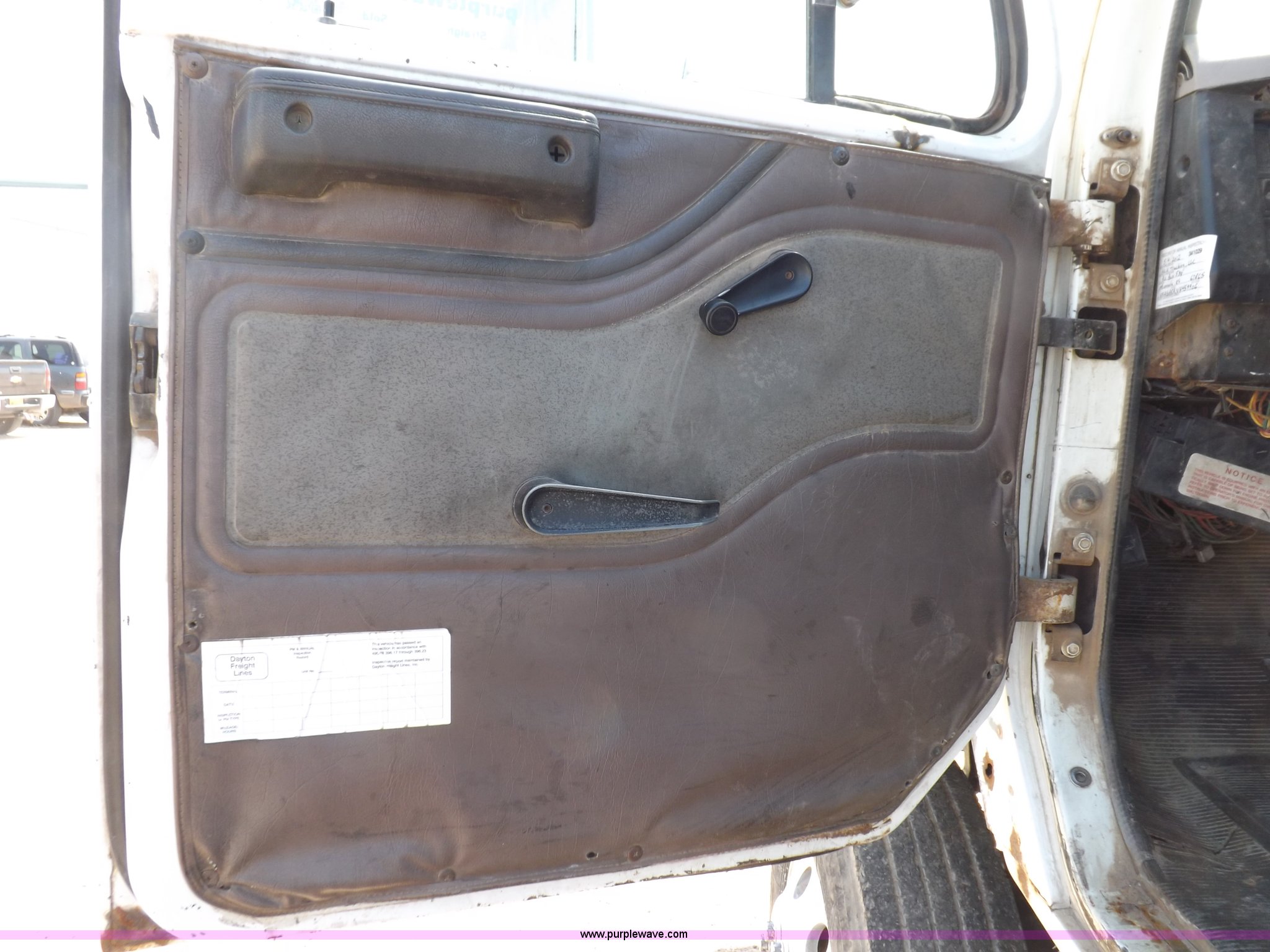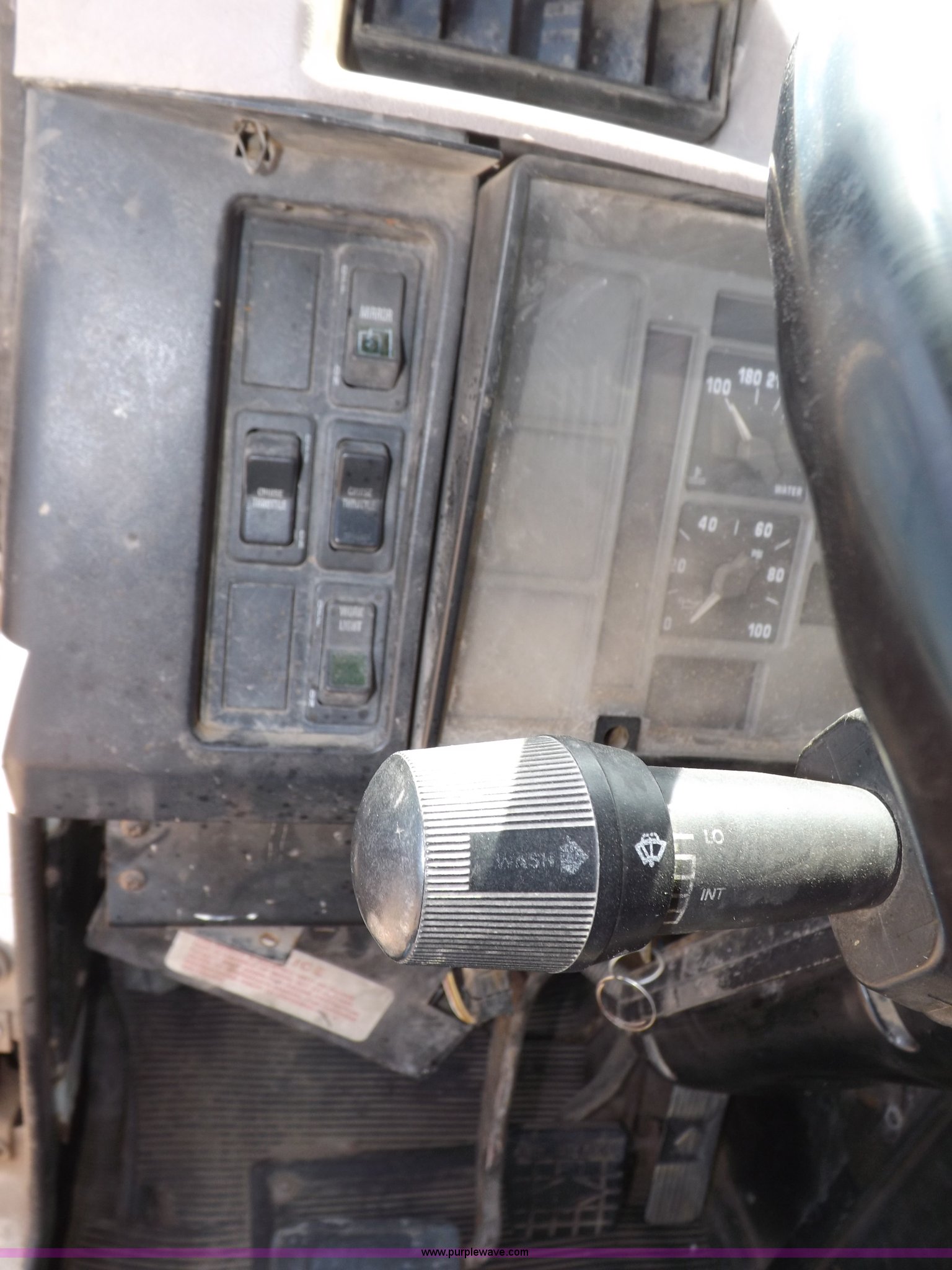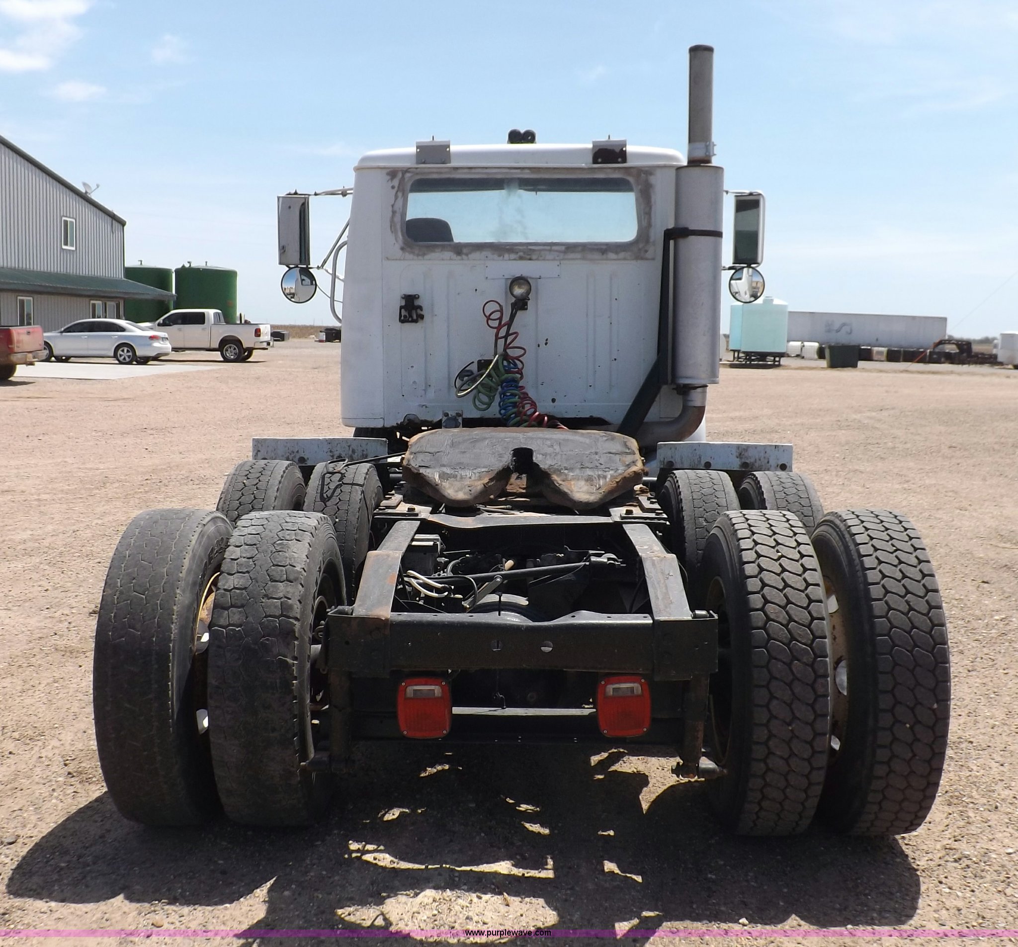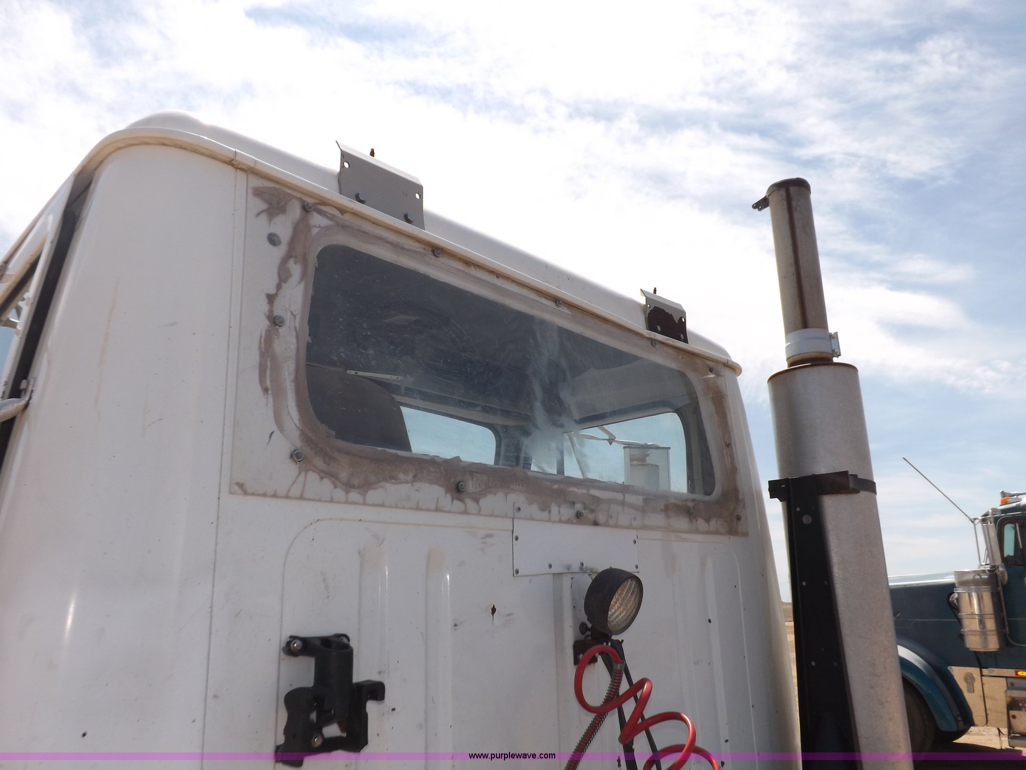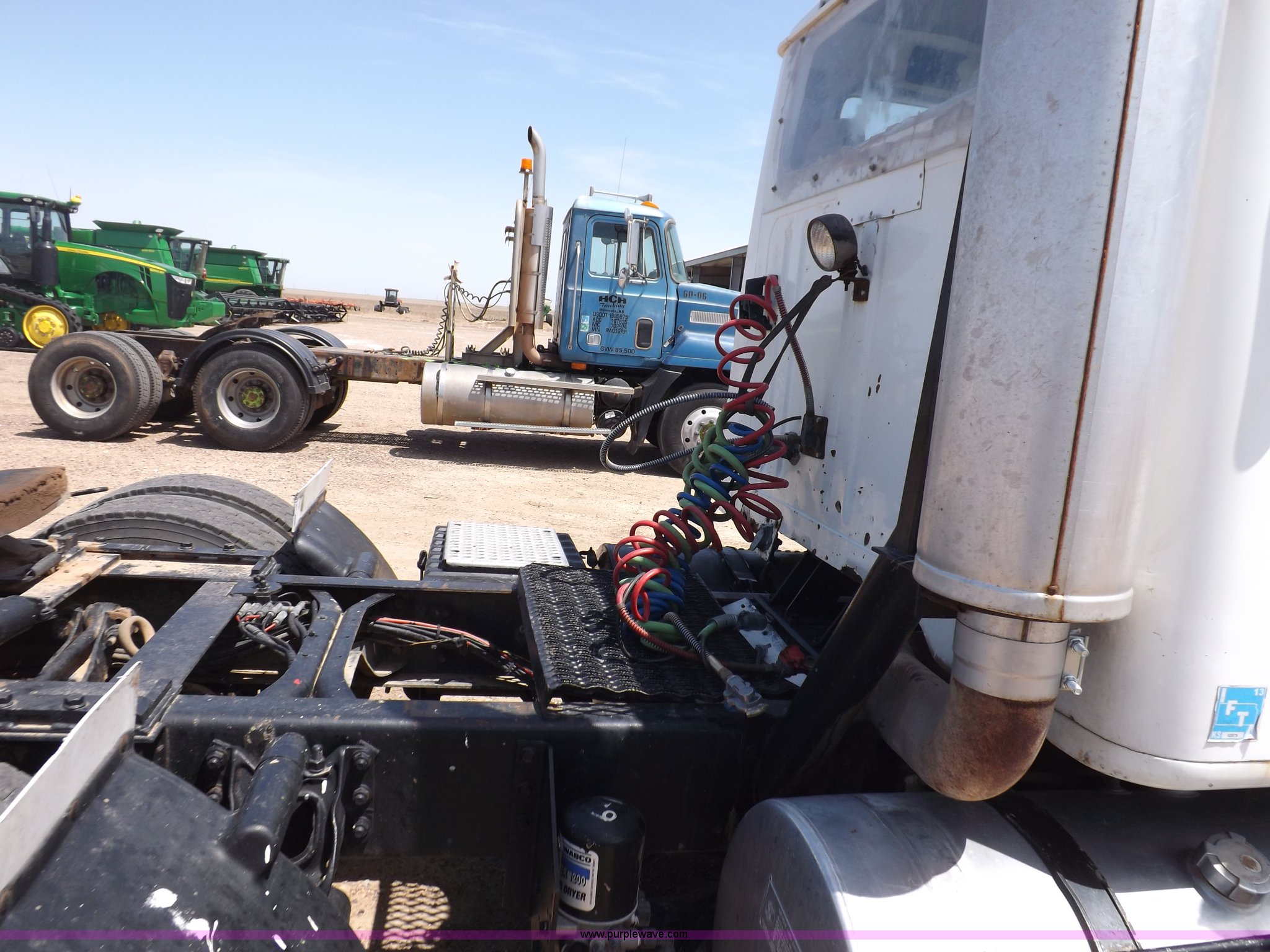 Purple Wave is selling a used Truck Tractor in Kansas. This item is a 1997 International 8200 semi truck with the following: 844,581 miles on odometer, Cummins N14 14.0L L6 diesel engine, Eaton fuller 10 speed manual transmission, Twin screw, AC and heat, Cruise, AM/FM/cassette, Air suspension seat, Heated mirrors, Block heater, Air slide fifth wheel plate, Dual 100 gallon fuel tanks, Poly quarter fenders, Single rear exhaust stack, Steel deck plate, Dump valves, Air suspension, Air brakes, Brake controller, 180" wheelbase, Aluminum front wheels, 295/75R22.5 tires, GVWR 52,000 lbs, FAWR 12,000 lbs, IAWR 20,000 lbs, RAWR 20,000 lbs, Recently replaced clutch