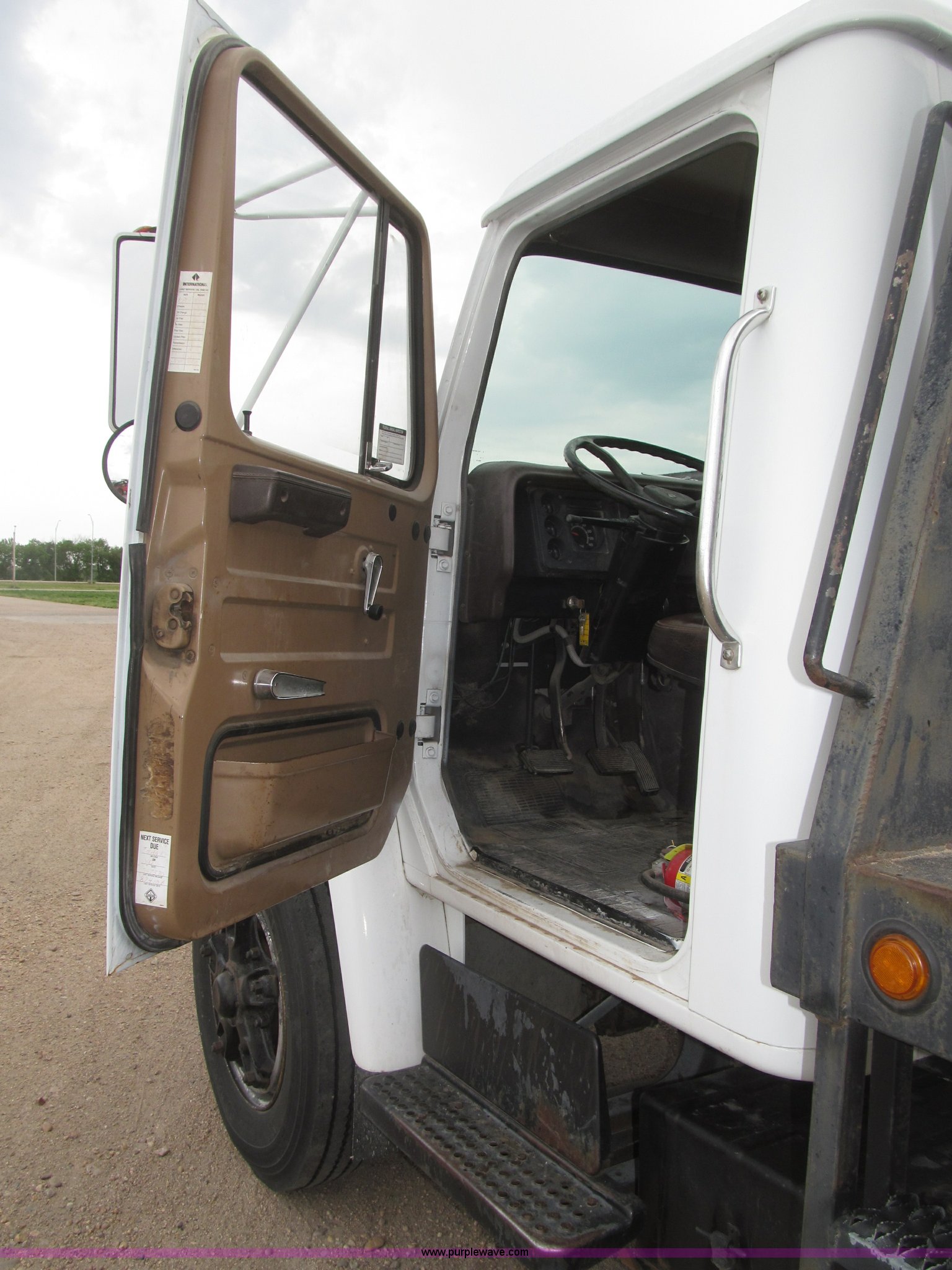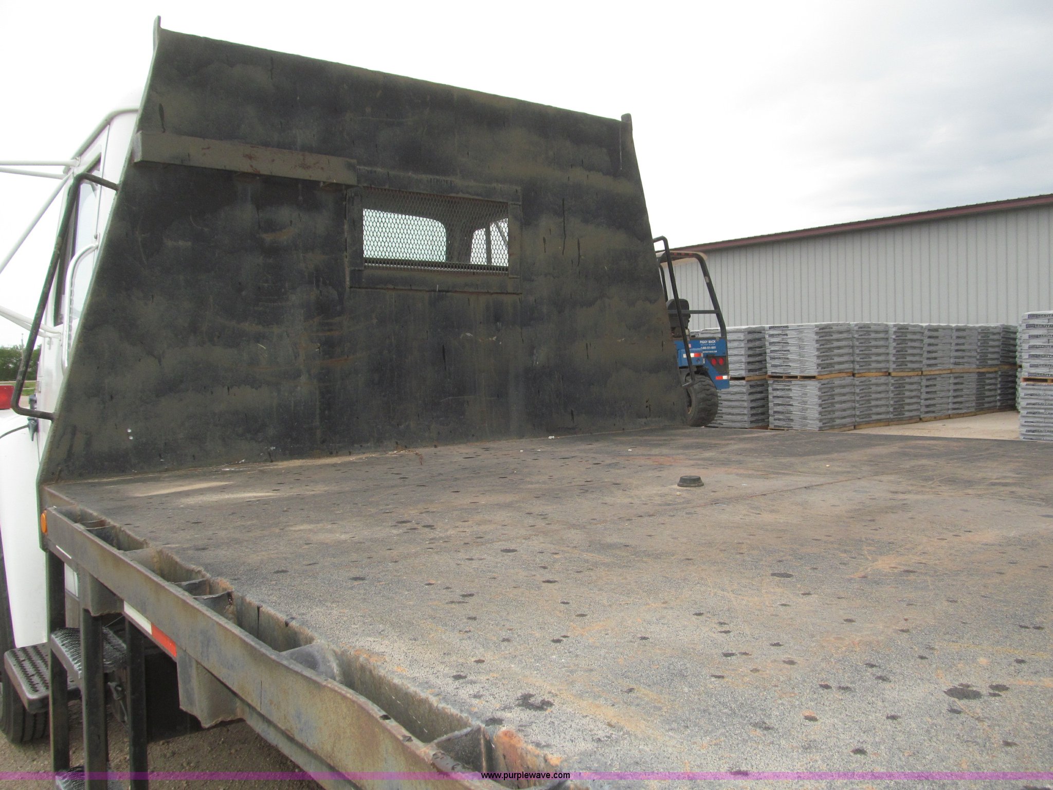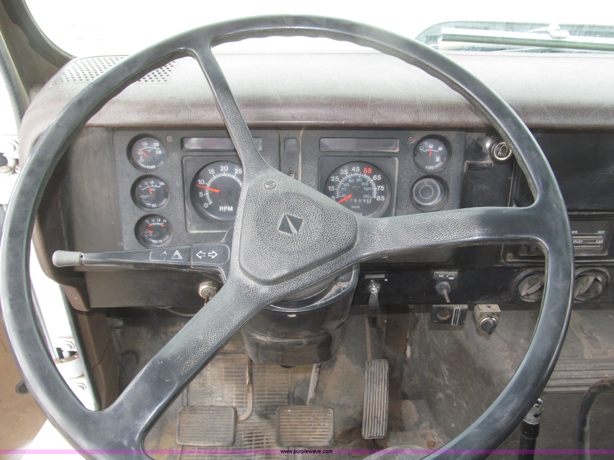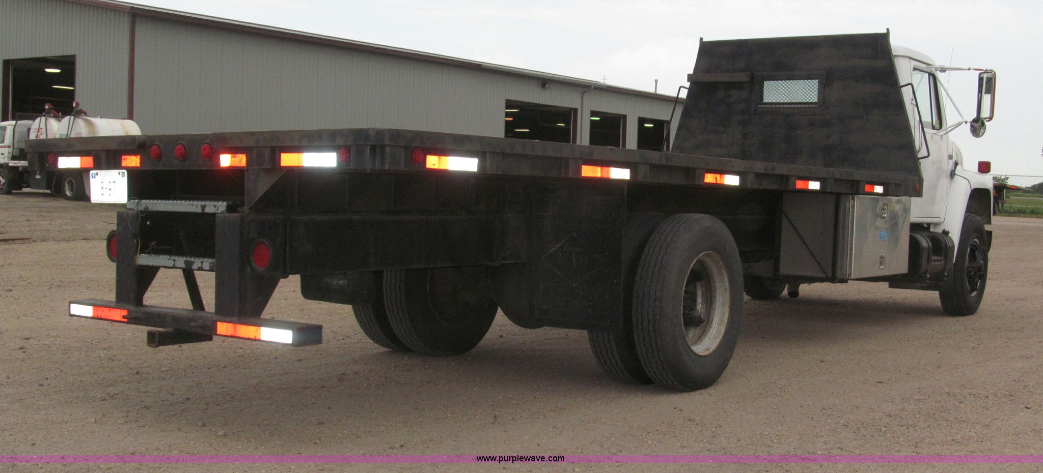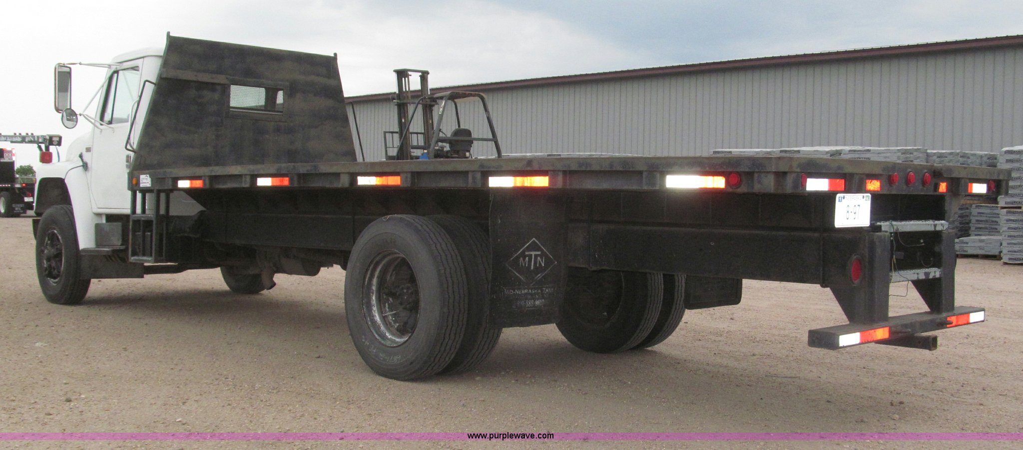 Purple Wave is selling a used Flat Bed Truck in Nebraska. This item is a 1988 International 1754 flatbed truck with the following: 397,909 miles on odometer, International DT360 5.9L L6 diesel engine, 10 speed manual transmission, Two speed rear end, Heat, Manual windows and locks, Suspension seat, Manual adjustment, Vinyl interior, 20'10"L x 97.5"W x 51.25"H flatbed, Stake pockets, Rub rails, 4'H headache rack, Chain hanger, Window, Under bed toolbox, Drivers side bed ladder, Front tow hooks, Fire extinguisher, Mud flaps, Receiver hitch, Trailer wiring, 10R22.5 tires, GVWR 26,500 lbs, FAWR 9,000 lbs, RAWR 17,500 lbs, Cracked dash