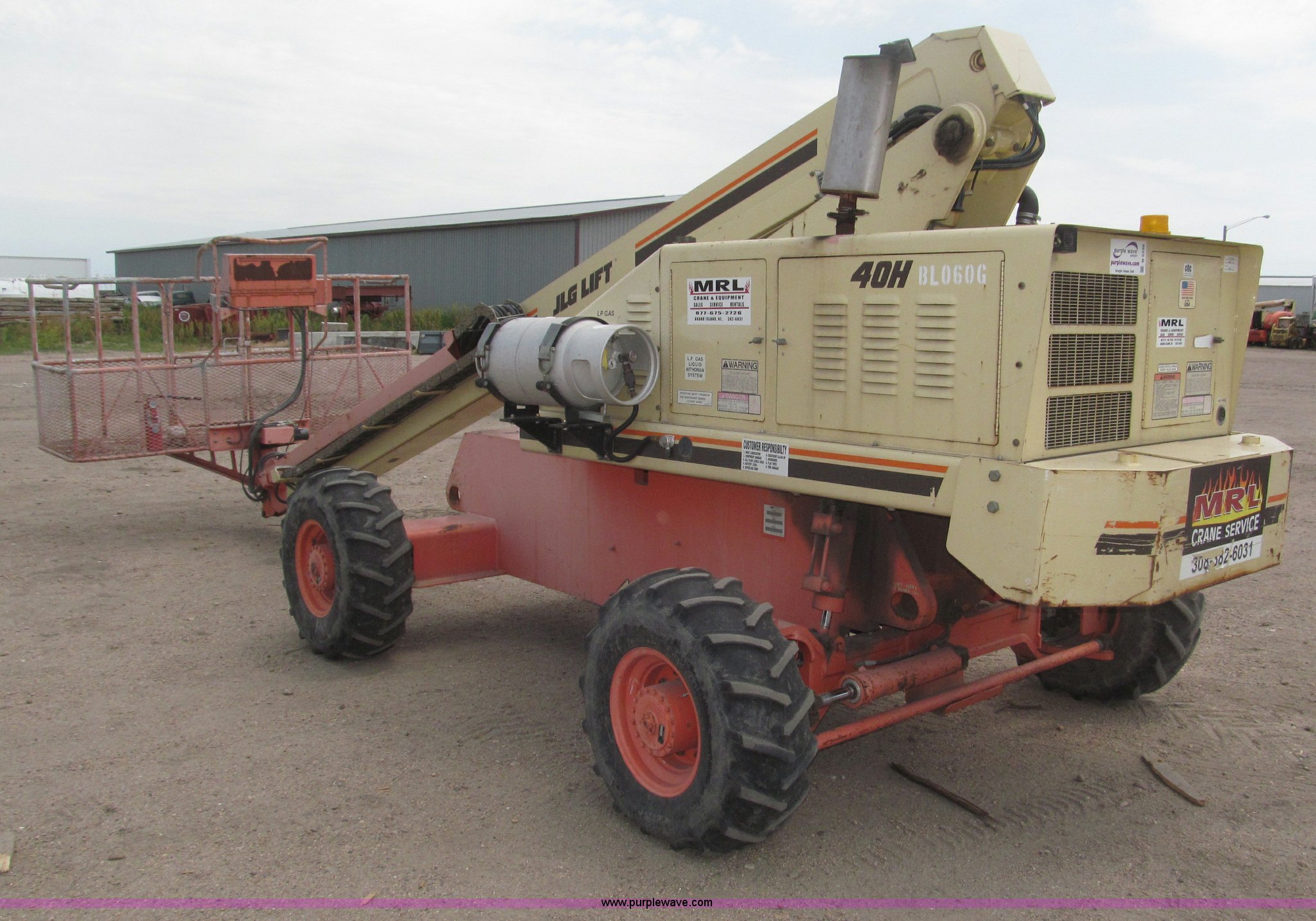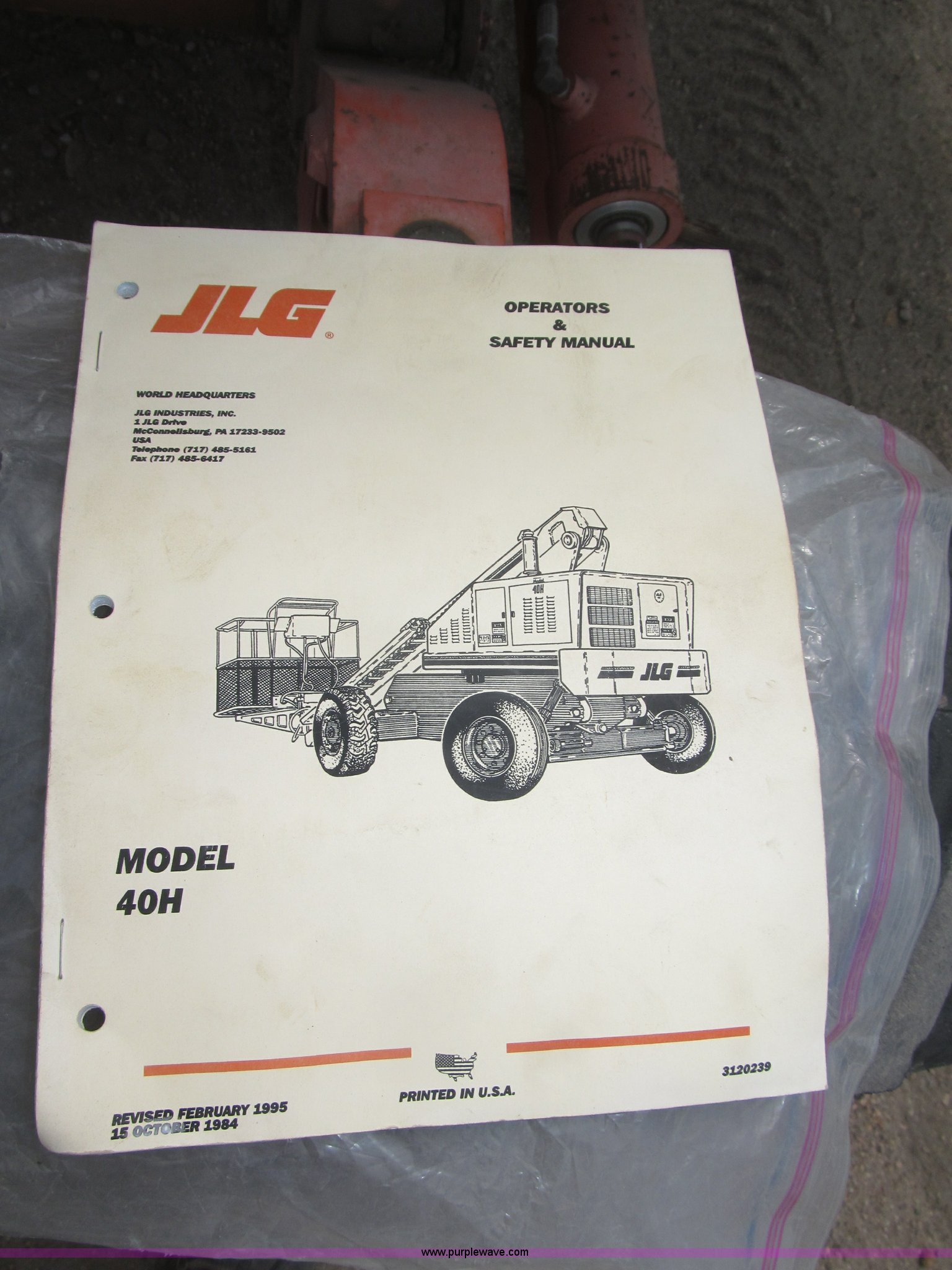 Purple Wave is selling a used Boom Lift in Nebraska. This item is a 1999 JLG 40H telescoping boom lift with the following: 3,937 hours on meter, Ford four cylinder propane or gas engine, Model LRG-4251-6005-A, Serial 01875-1-02-99, Hydrostatic transmission, Four wheel drive, Straight stick boom, 40' max platform lift height, Approx. 33' max horizontal reach, (2) boom sections, 12V electrical system, Engine and hydraulic access doors on both sides, 3,200 max hydraulic operating pressure, 40 percent grade-ability, 1,000 lb max capacity, 500 lb unrestricted lift capacity, 8' basket, Auxiliary power controls, Manual emergency lowering controls, Platform and ground controls, Foot operated safety pedal, Motion alarm and amber beacon, Inoperable, Propane bottle included, Fire extinguisher, Oscillating axle, 12.5L-15 pneumatic tires, Operator, safety, and ANSI manual in box, Load chart, Paint over spray, Serial 0927160300042069