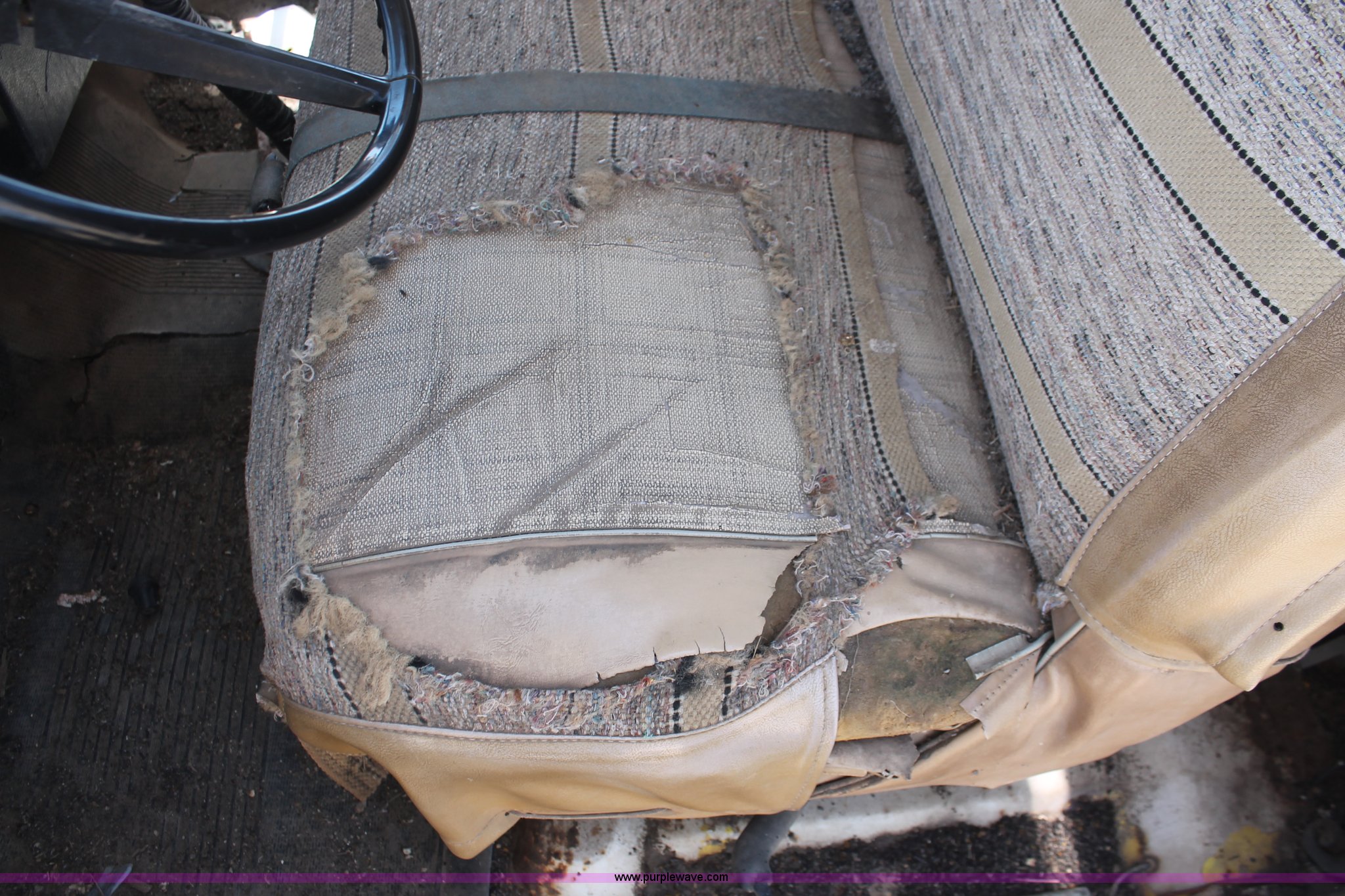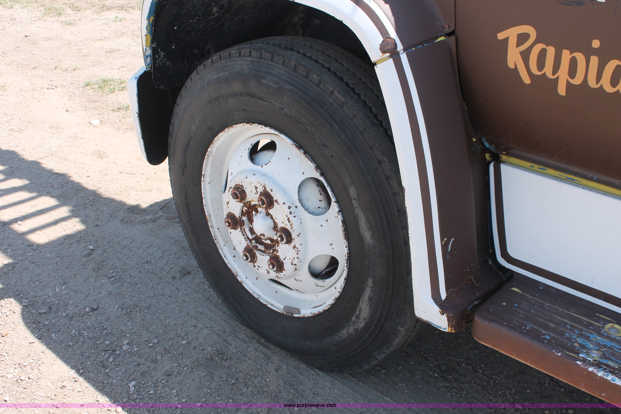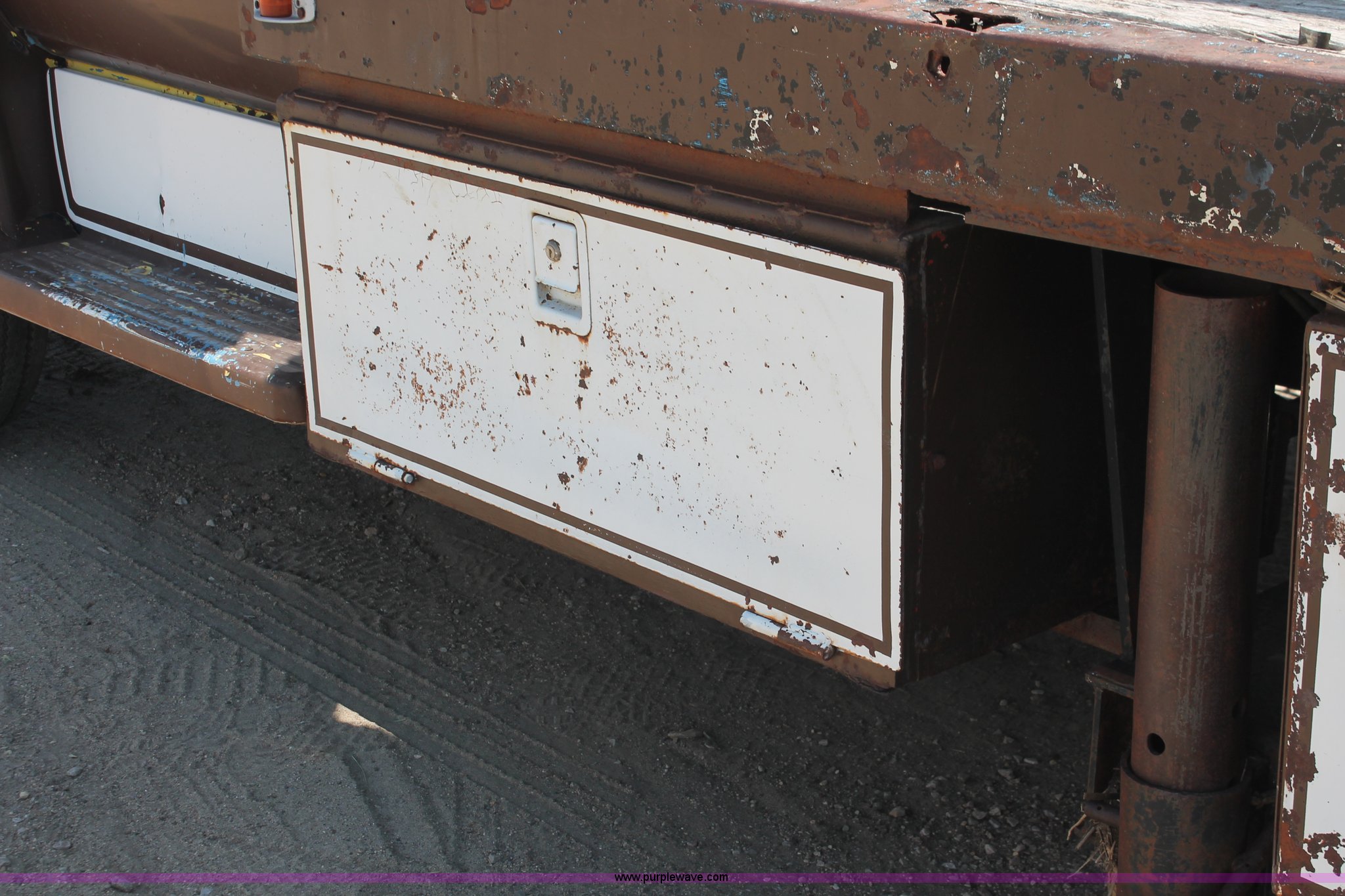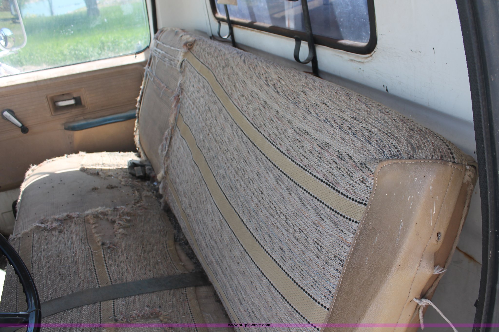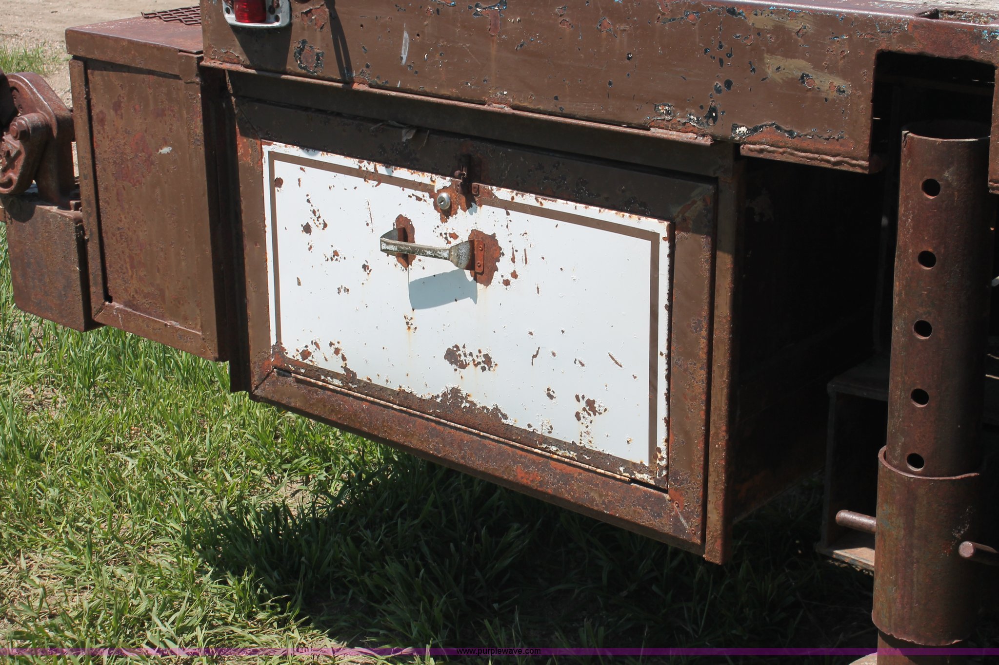 Purple Wave is selling a used Crane Truck in South Dakota. This item is a 1977 GMC Sierra 6500 flatbed ladder/boom truck with the following: 38,594 miles on odometer, Eight cylinder diesel engine, Five speed manual transmission, Manual windows and locks, Vinyl interior, 16' flatbed, (10) storage compartments, Angle iron chopper, Stake side pockets, Miller AEAD-200LE welder/generator, Onan B48M engine, 72 max weld OVC, 25 rated volts, 120/240V, (3) outlets, Serial JF910935, Baldwin Ward Skyhook crane, 80' max extension, Four stage room, 5,000 lbs max lift capacity, Four stick operation, Boom ladder, Manual outriggers, 360 degree rotation, Serial 80199261,, Receiver hitch, 2 5/16" ball, 10R22.5 tires, Operational, requires work to be highway ready, Missing driver's window handle, Interior cosmetic damage, Cracked glass