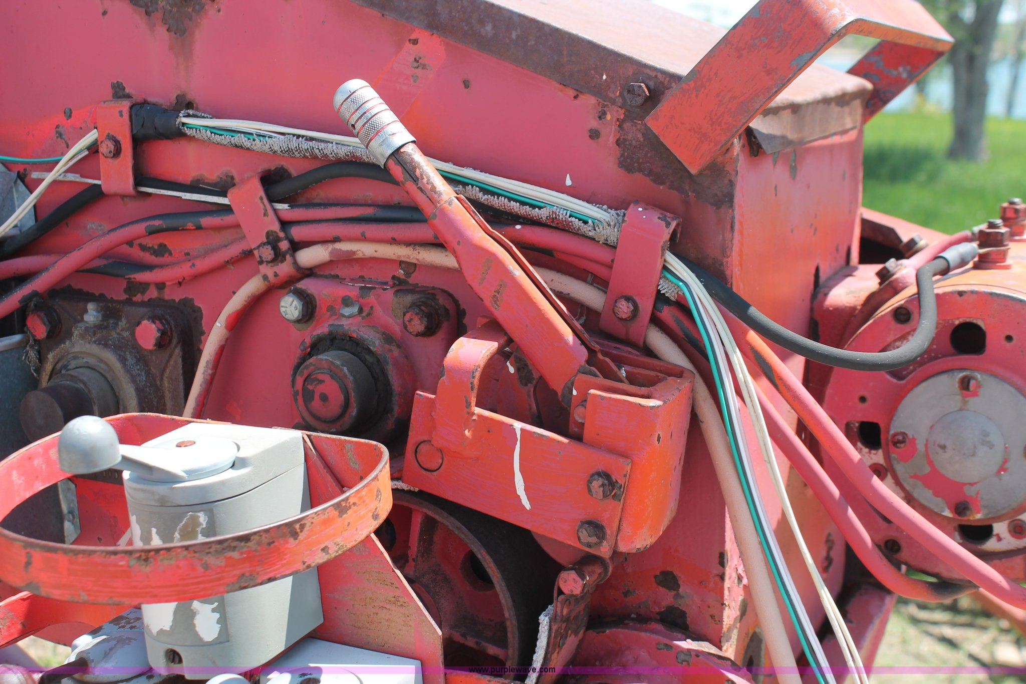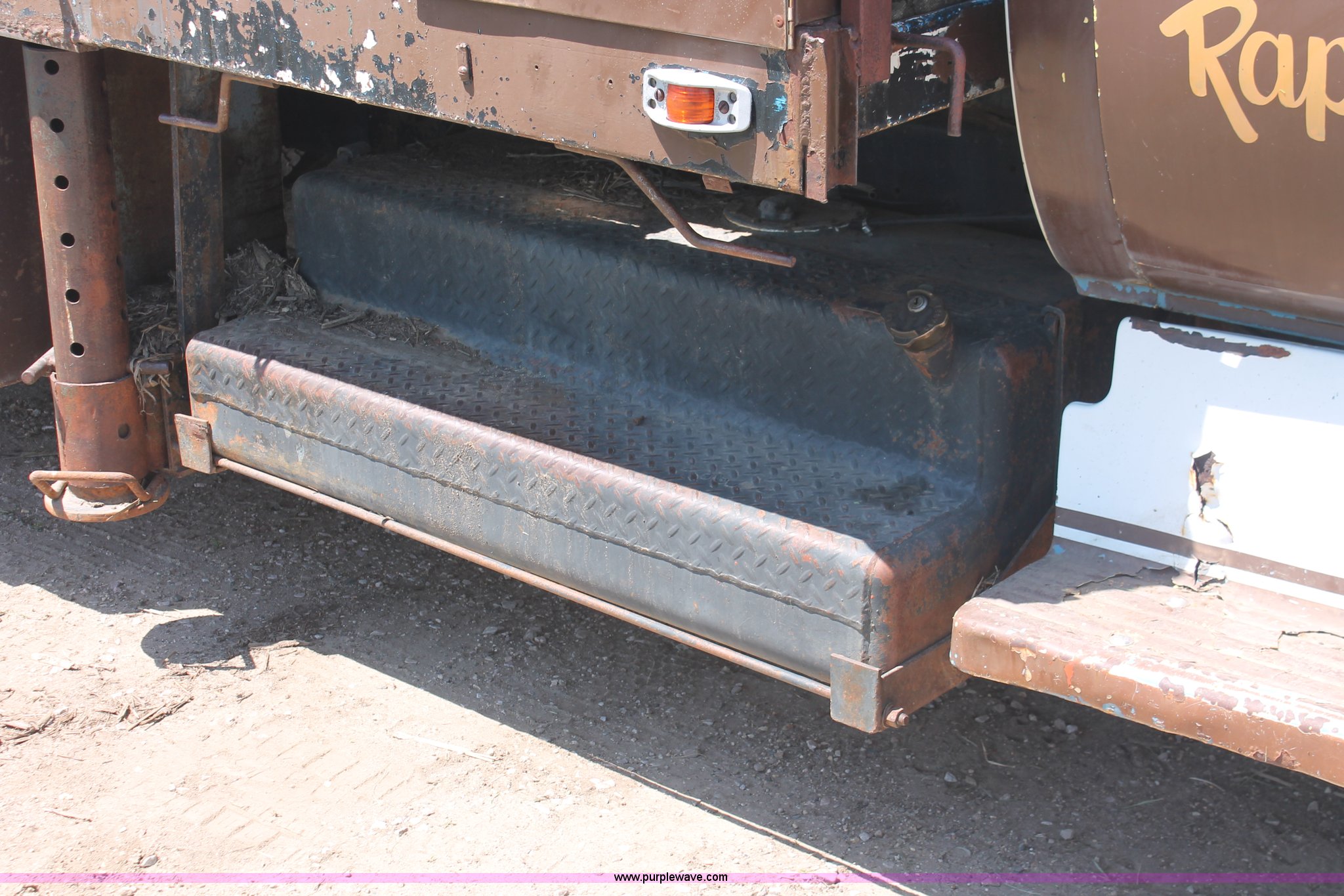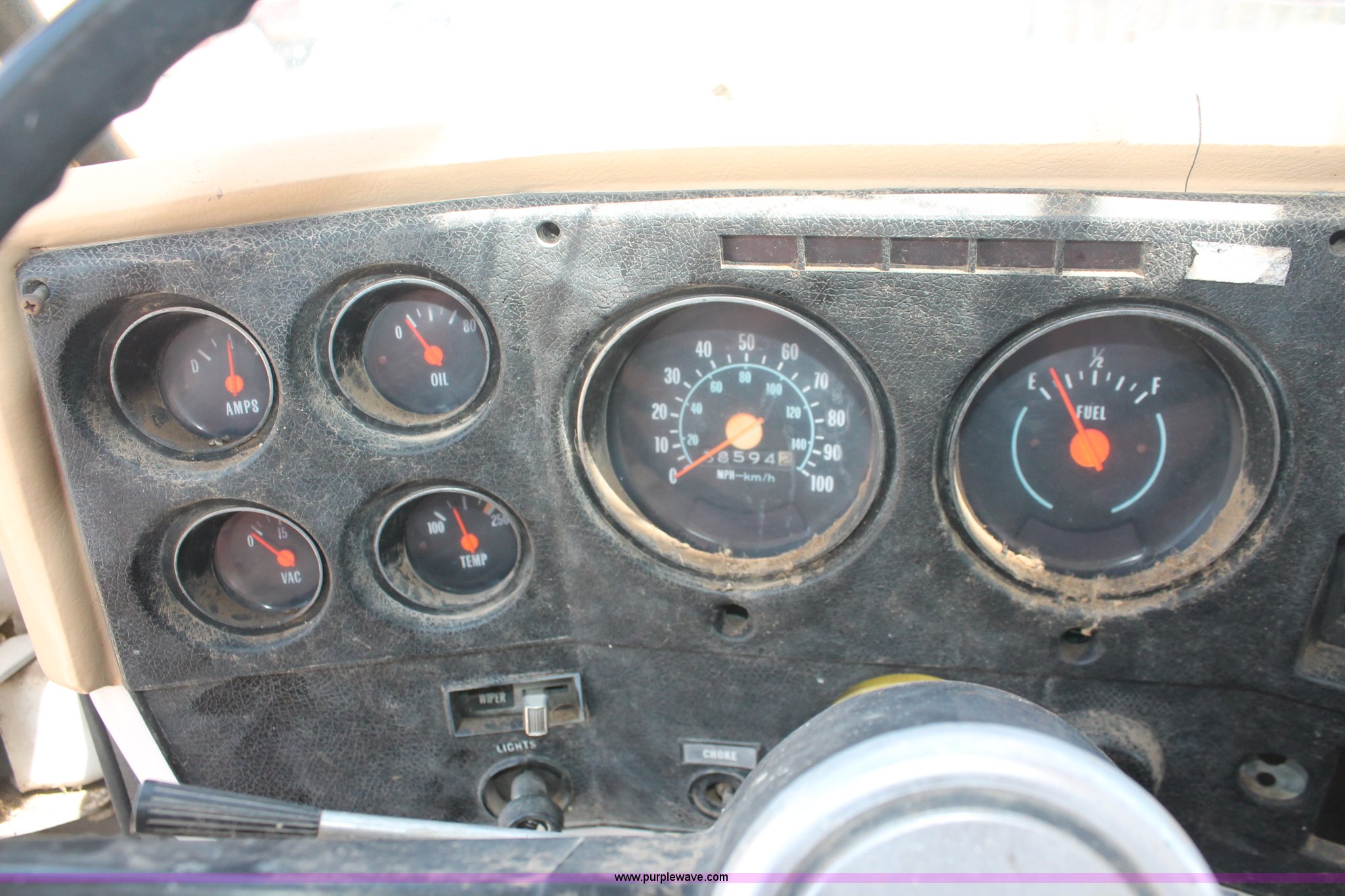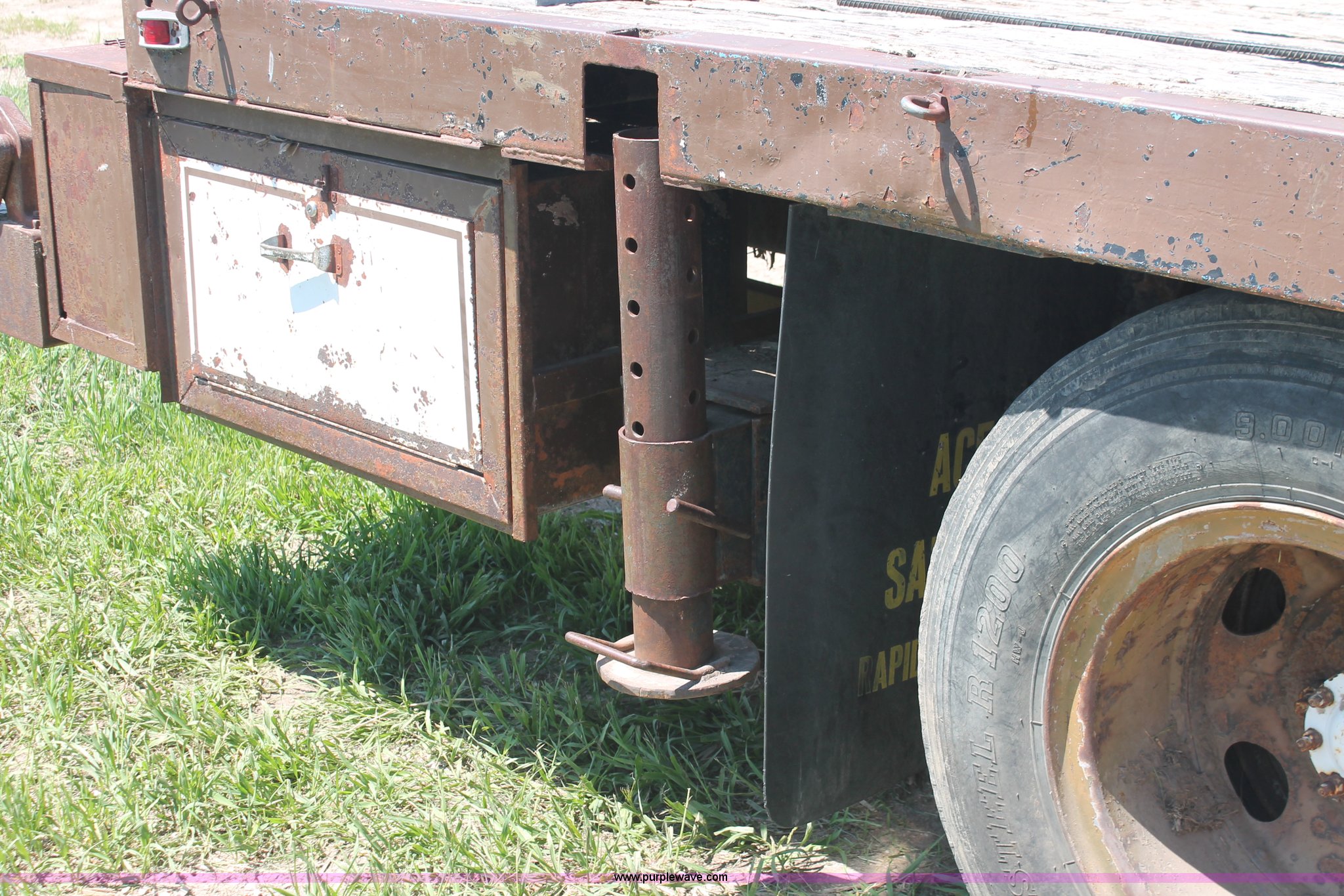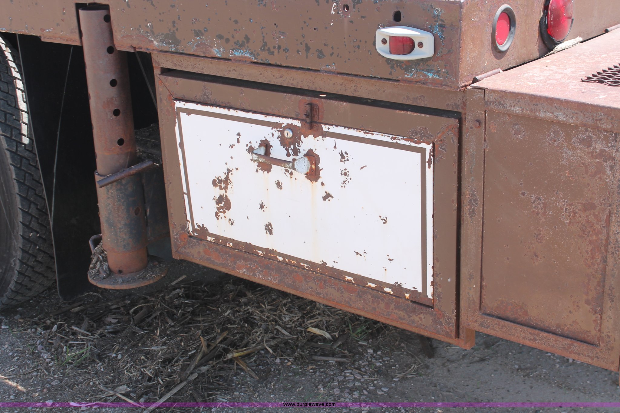 Purple Wave is selling a used Crane Truck in South Dakota. This item is a 1977 GMC Sierra 6500 flatbed ladder/boom truck with the following: 38,594 miles on odometer, Eight cylinder diesel engine, Five speed manual transmission, Manual windows and locks, Vinyl interior, 16' flatbed, (10) storage compartments, Angle iron chopper, Stake side pockets, Miller AEAD-200LE welder/generator, Onan B48M engine, 72 max weld OVC, 25 rated volts, 120/240V, (3) outlets, Serial JF910935, Baldwin Ward Skyhook crane, 80' max extension, Four stage room, 5,000 lbs max lift capacity, Four stick operation, Boom ladder, Manual outriggers, 360 degree rotation, Serial 80199261,, Receiver hitch, 2 5/16" ball, 10R22.5 tires, Operational, requires work to be highway ready, Missing driver's window handle, Interior cosmetic damage, Cracked glass