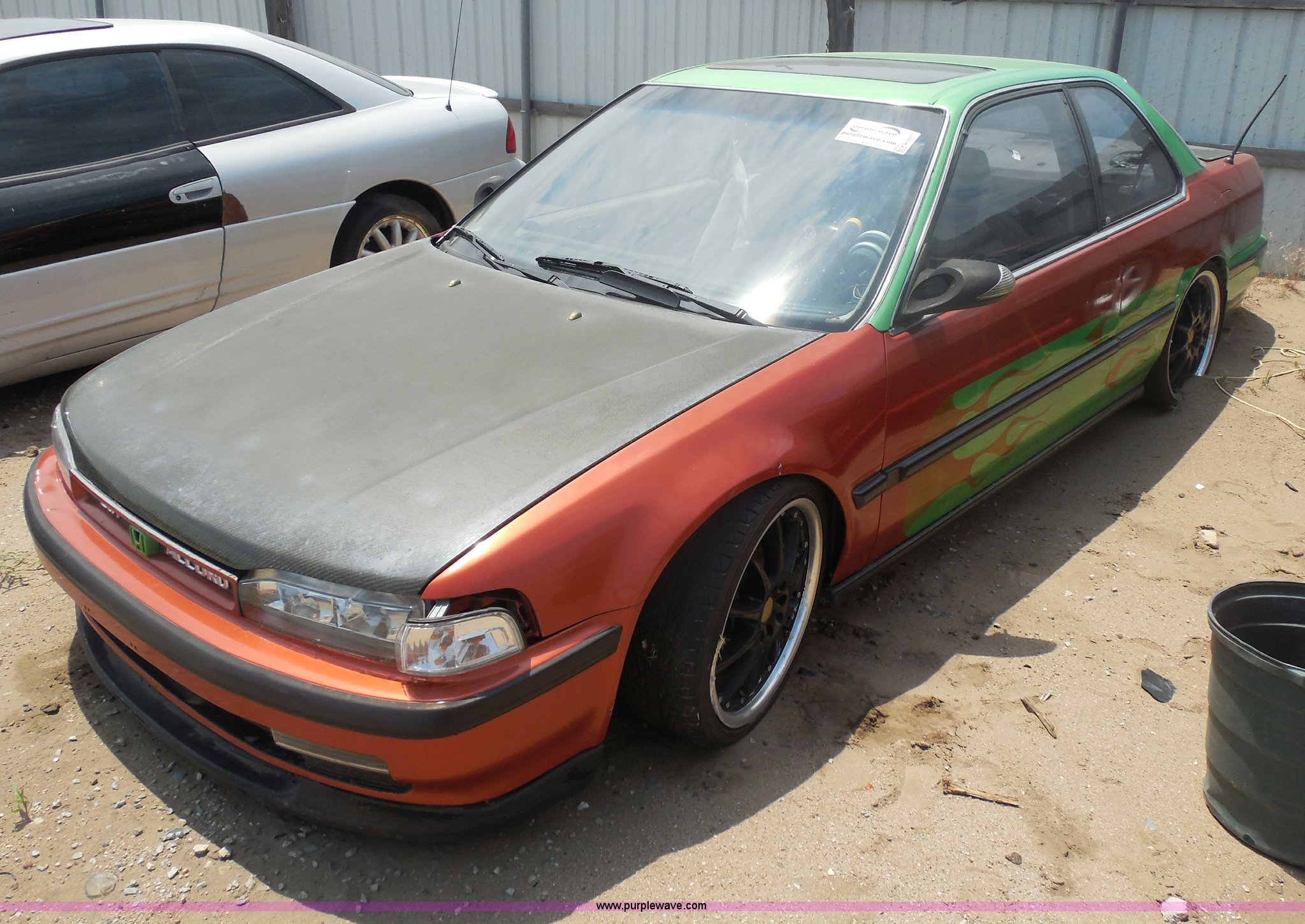 Purple Wave is selling a used Wrecked and Abandoned in Kansas. This item is a 1991 Honda Accord EX with the following: 75,772 miles on odometer, Not Actual Mileage, 2.2L L4 SOHC 16V gas engine, Five speed manual transmission, AC and heat, AM/FM/CD, Power windows and locks, Cloth interior, 215/35R18 tires, Custom paint, Unknown operating condition, No door handle entry, Case# 13C033478