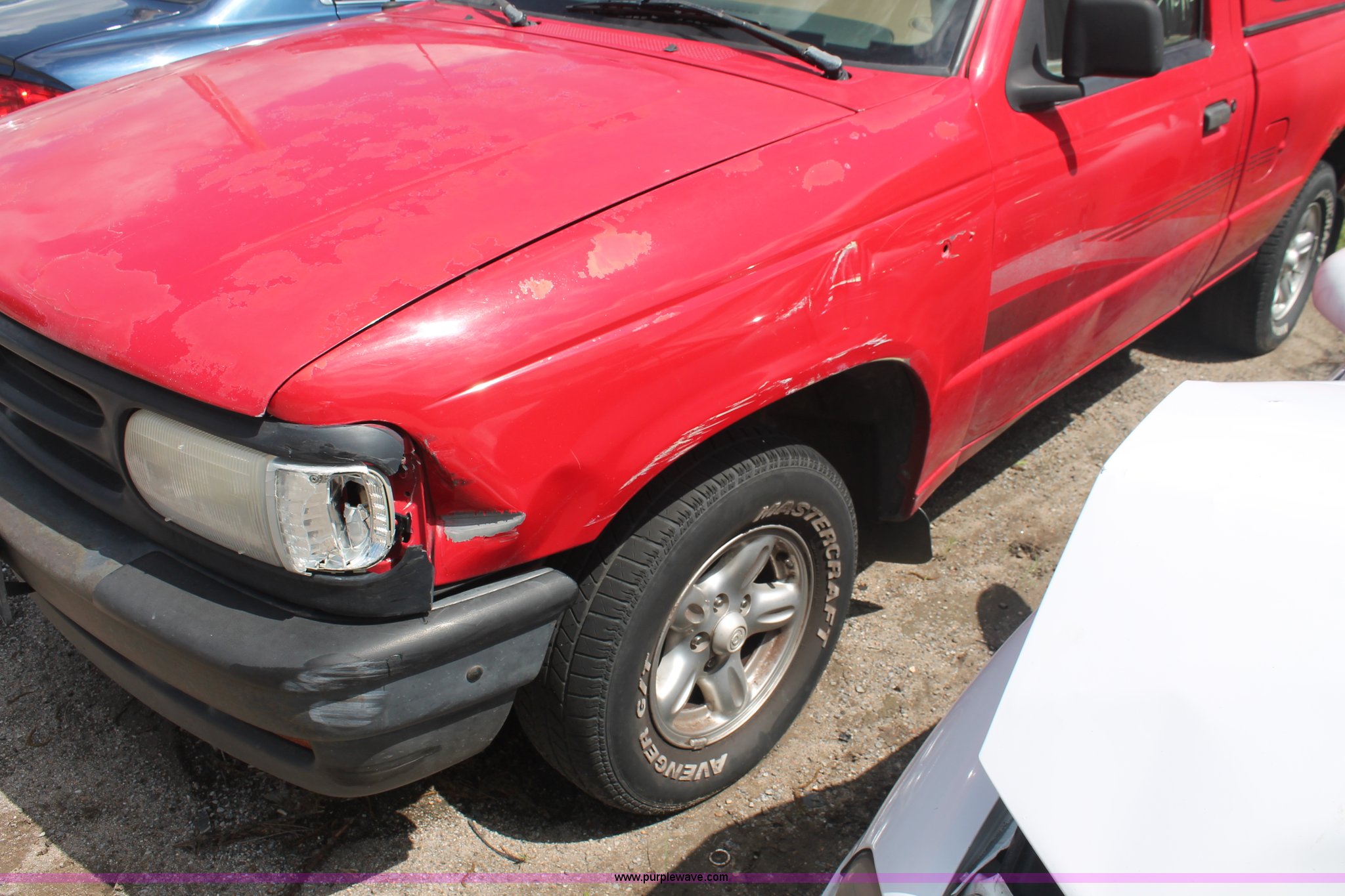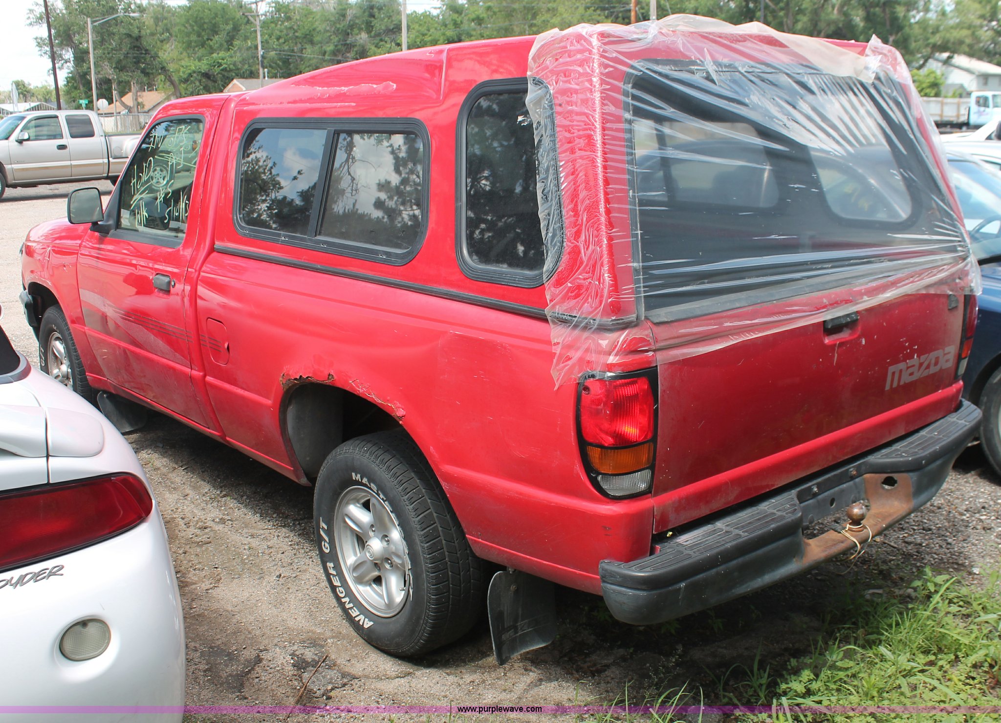 Purple Wave is selling a used Wrecked and Abandoned in Kansas. This item is a 1995 Mazda B2300 pickup truck with the following: 186,490 miles on odometer, 2.3L L4 SOHC 8V gas engine, Five speed manual transmission, AC and heat, Tilt, Cruise, AM/FM/cassette, Sliding rear window, Keys, Bed topper, 2" ball, Trailer wiring, P225/70R14 tires, Paint faded and peeling, Passenger side swipe damage, Glove box damage, Will start, Unknown driving condition, Idles rough, Case# 13C30314