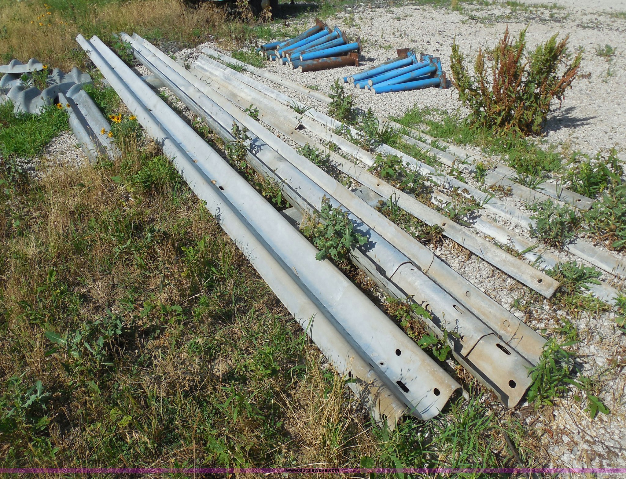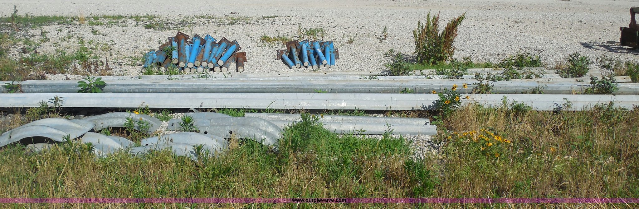 Shop built guard rails. (30) 30" posts, (2) 26' rails, 14' rail, 18' rail, 22' rail, 5' rail, (7) end pieces, (4) 20' angle iron, (2) 10' angle iron. Shipping quotes available. 12700 30th Rd. Parsons, KS 67357