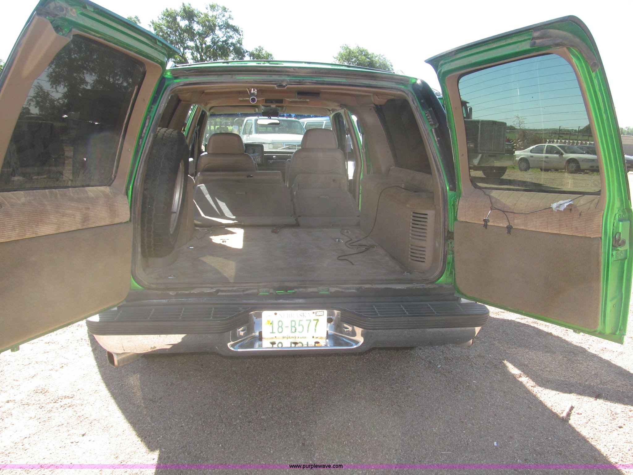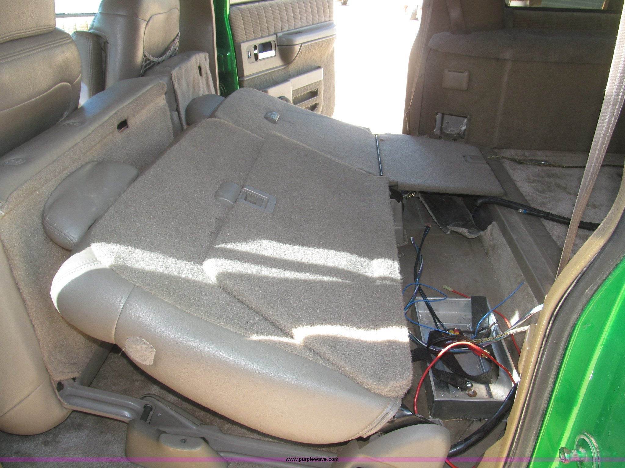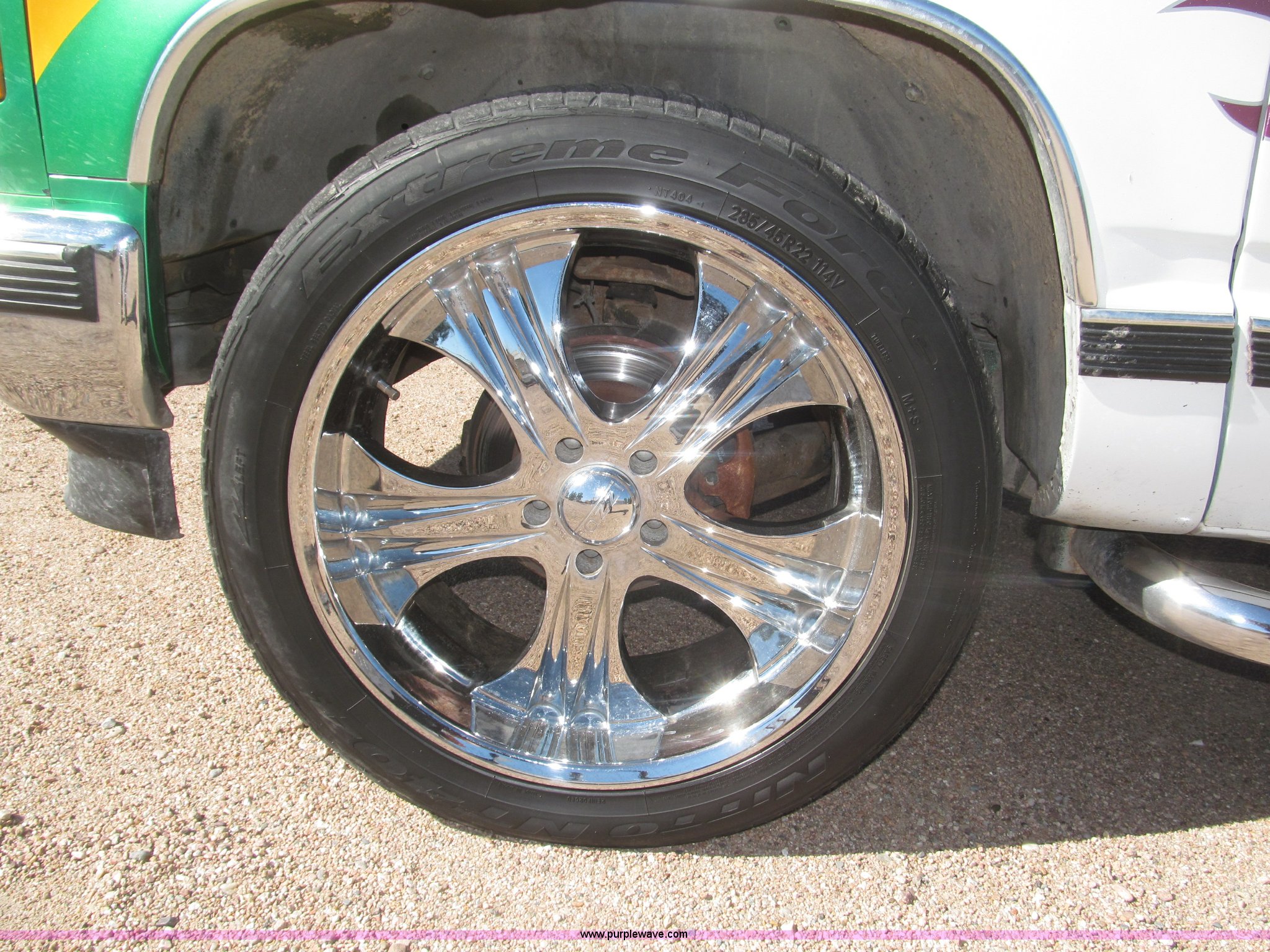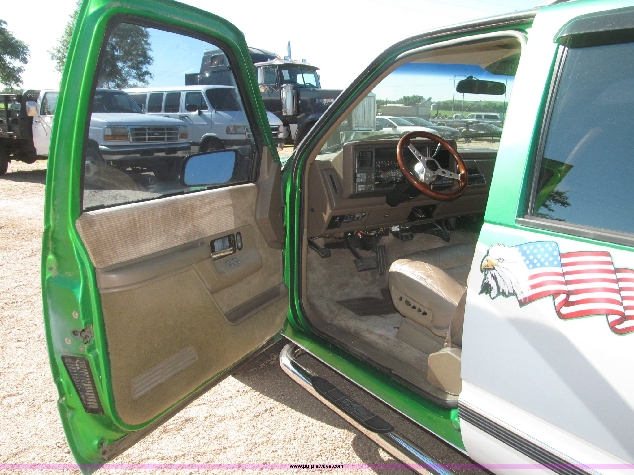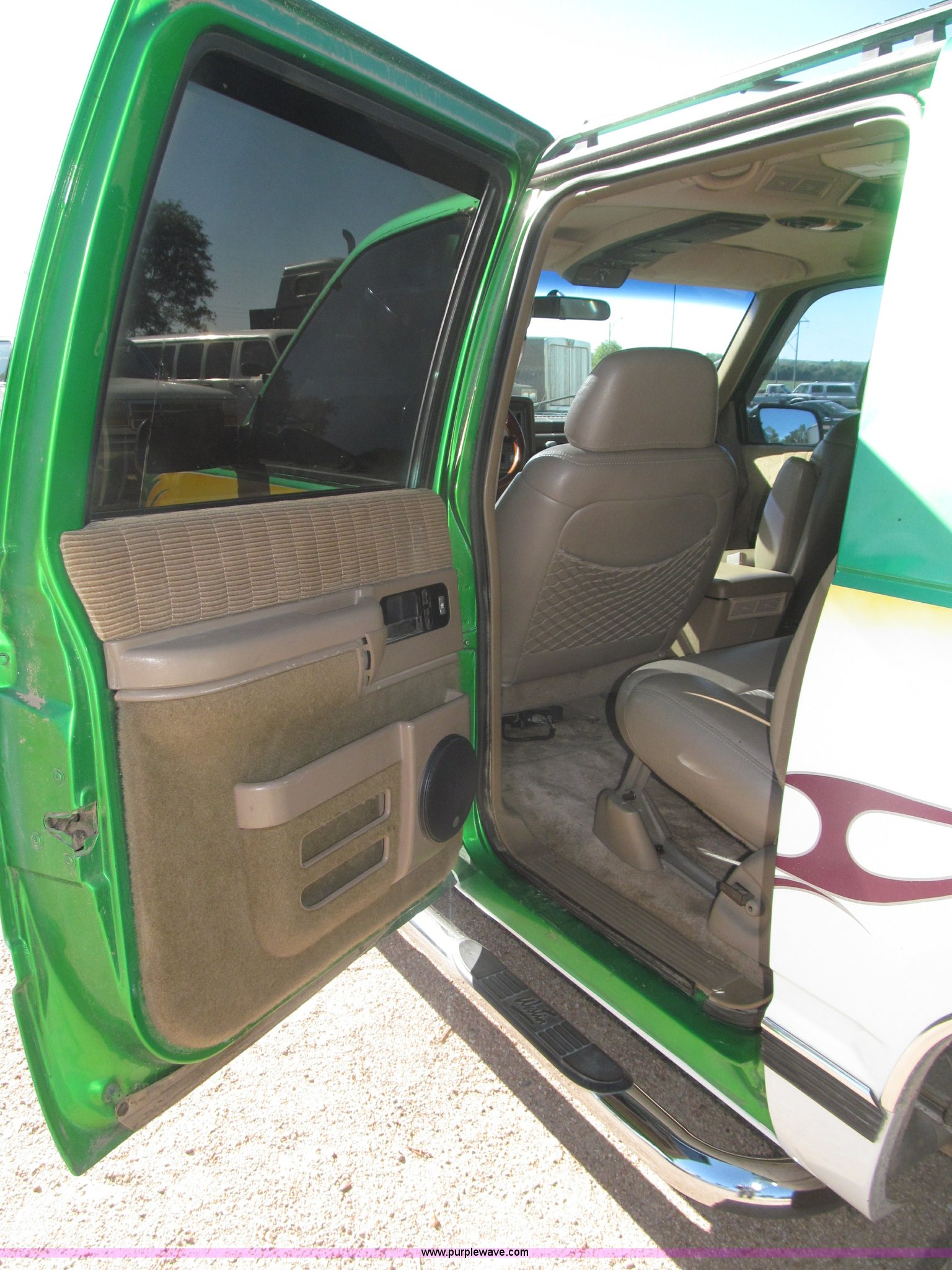 Purple Wave is selling a used Passenger Vehicle in Nebraska. This item is a 1993 Chevrolet Suburban SUV with the following: 212,427 miles on odometer, 5.7L V8 OHV 16V gas engine, Automatic transmission, AC and heat, Tilt, Soundstorm SDVD-100 AM/FM/CD/MP3/DVD, Remote, Power windows, locks, and seats, Vinyl interior, Dual exhaust, Custom paint, Heavy duty alternator, High electric output, Westin nerf bars, Luggage rack, Window rain guards, One missing, Backup camera, Grant GT 13.5" steering wheel, (2) ceiling mounted 7" TFT monitors, ESN AM/FM/CD, Not hooked up, Directional lighting, Rear passenger AC controls, Nitro NT40 Extreme Force 285/45R22 tires, Interior/exterior cosmetic damage, Windshield cracked