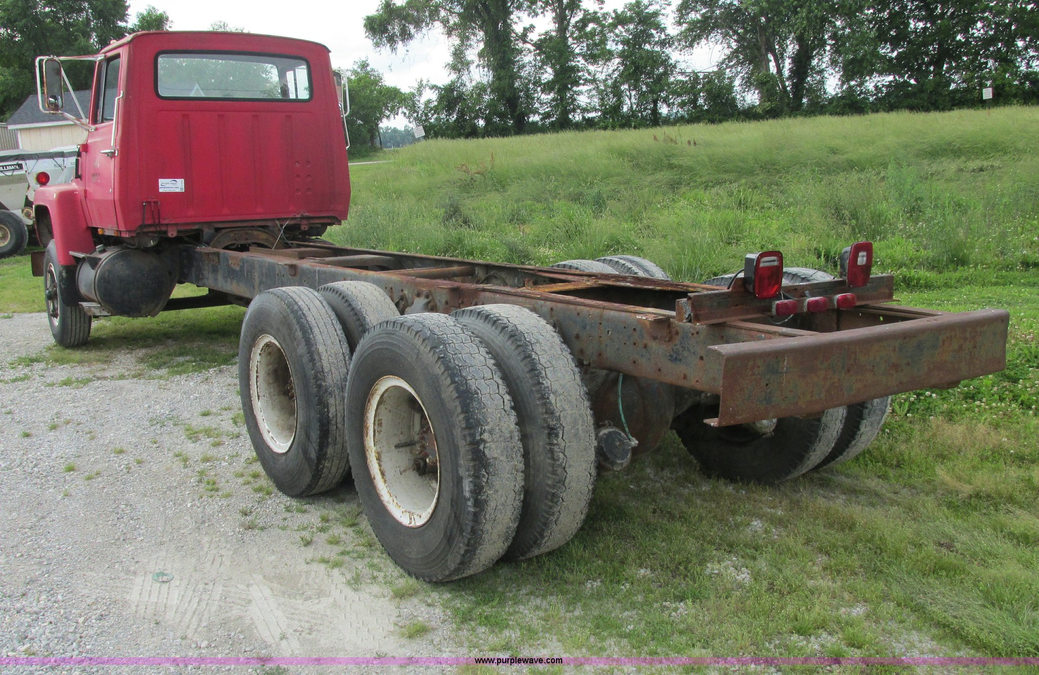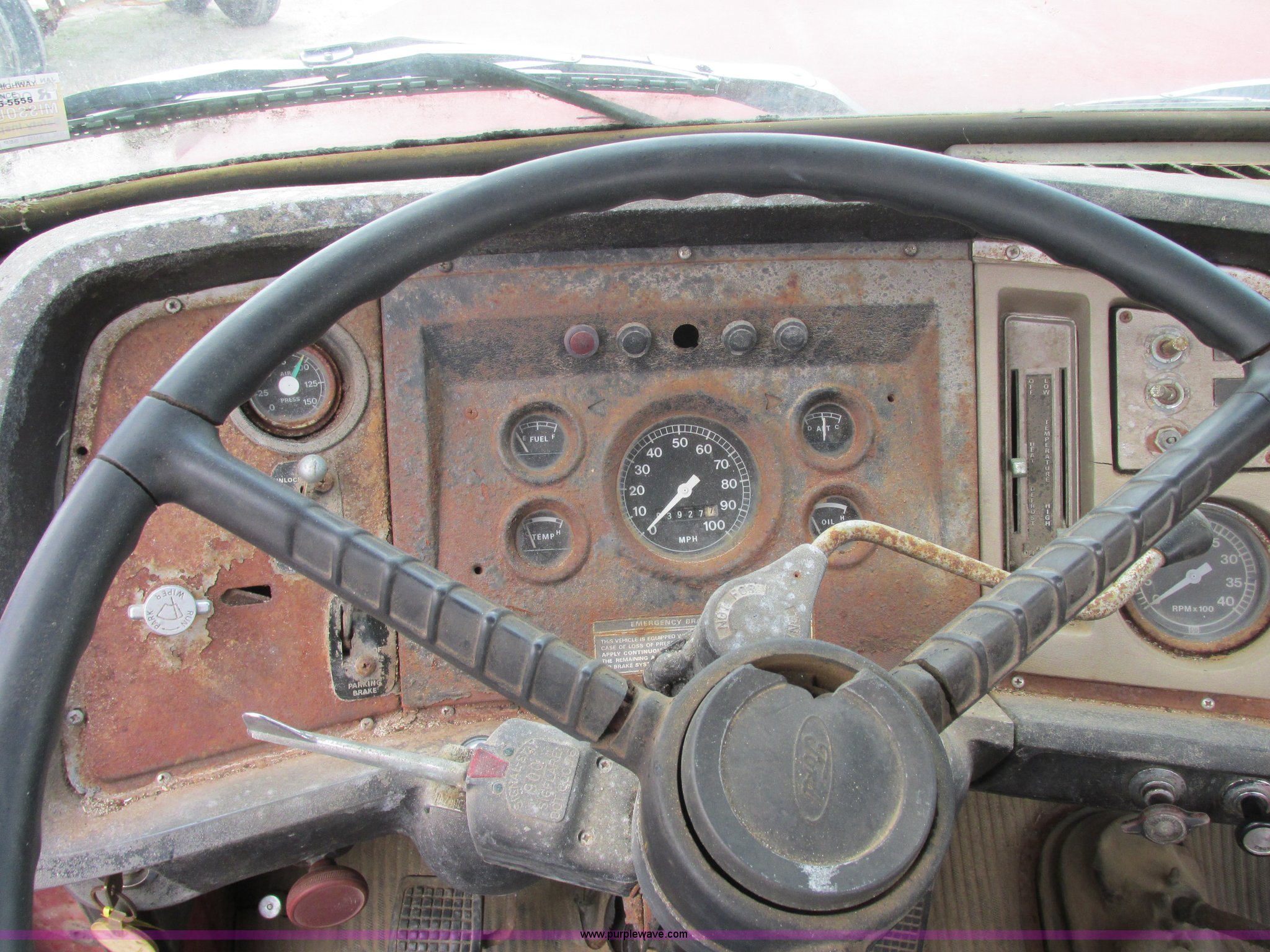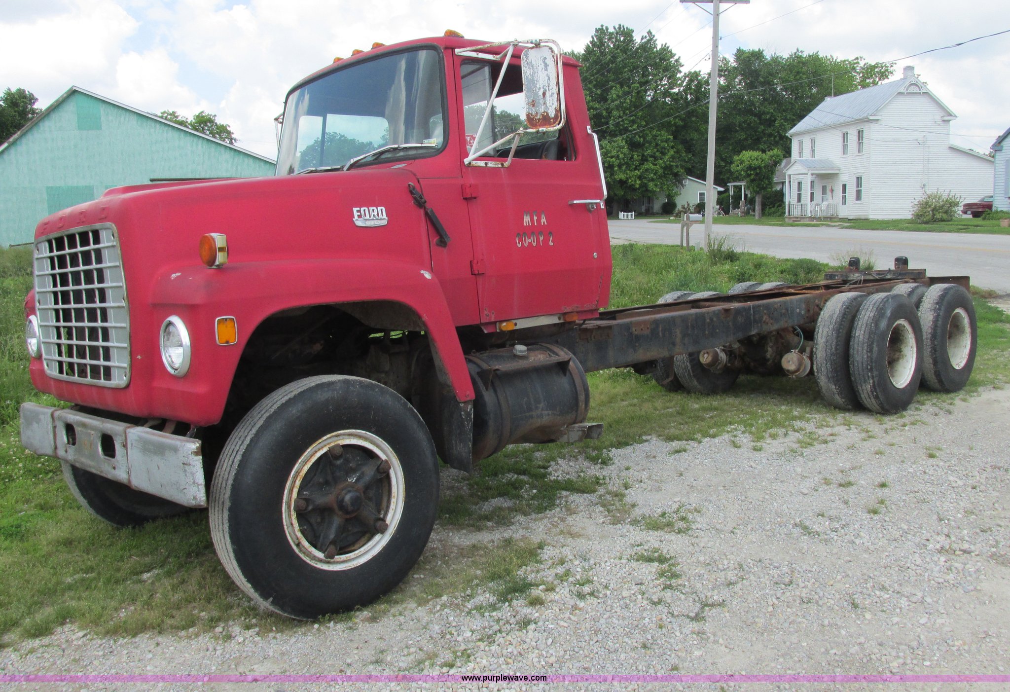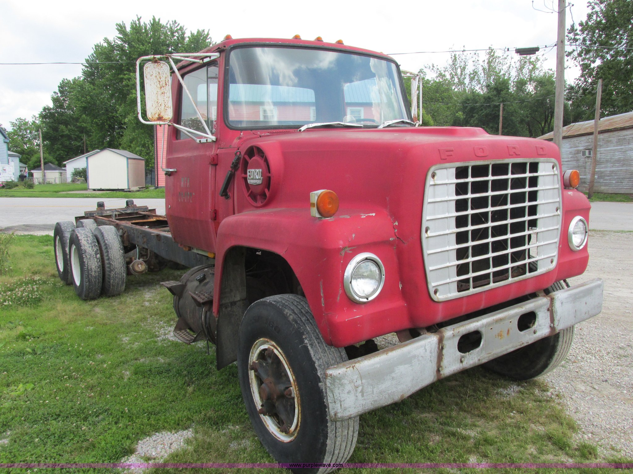 Purple Wave is selling a used Truck Chassis in Missouri. This item is a 1974 Ford 880 truck cab and chassis with the following: 93,927 miles on odometer, V8 gas engine, Holley carburetor, 10 speed manual transmission, Twin screw, Heat, Locking rear differential, Dual 40 gallon fuel tanks, Spring over walking beam suspension, Air brakes, 20' frame from cab to tail, 11R22.5 tires, GVWR 44,800 lbs, Interior/exterior cosmetic damage, Minor leaks, Removed from service June 2013
