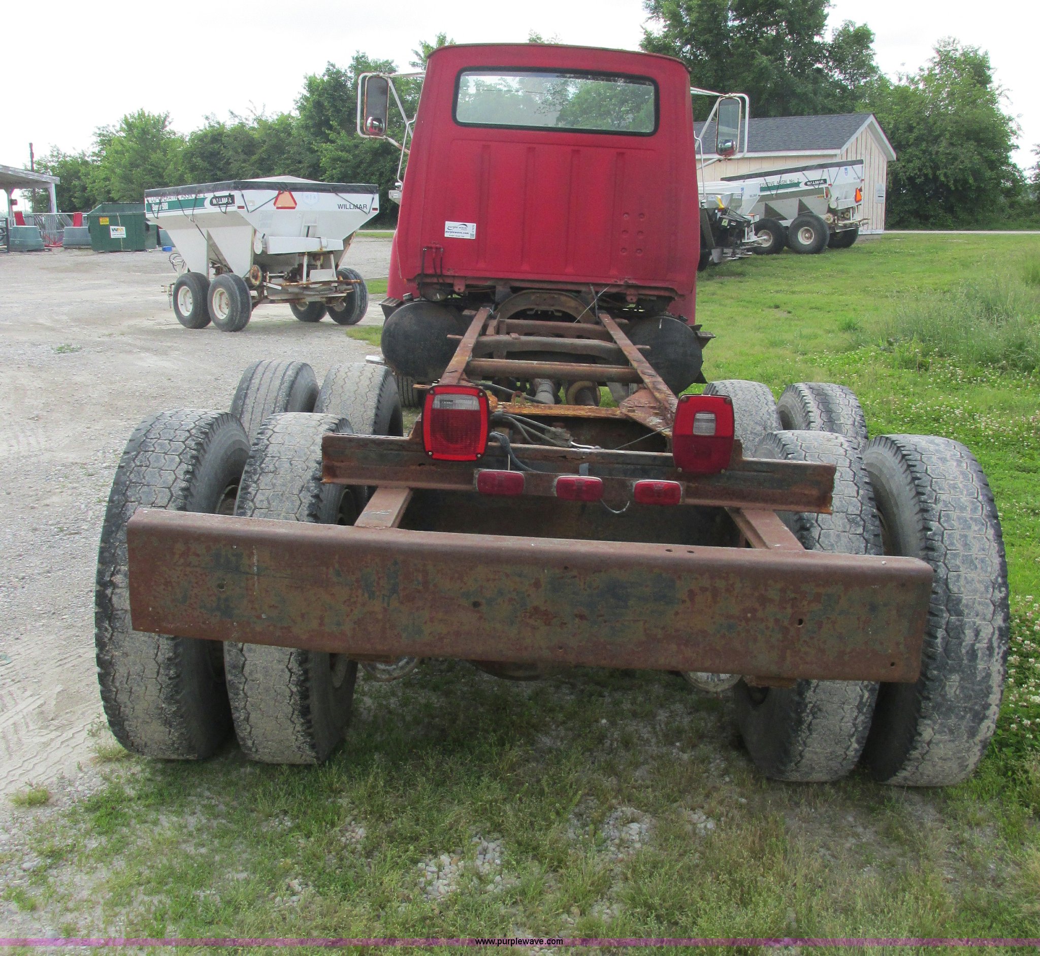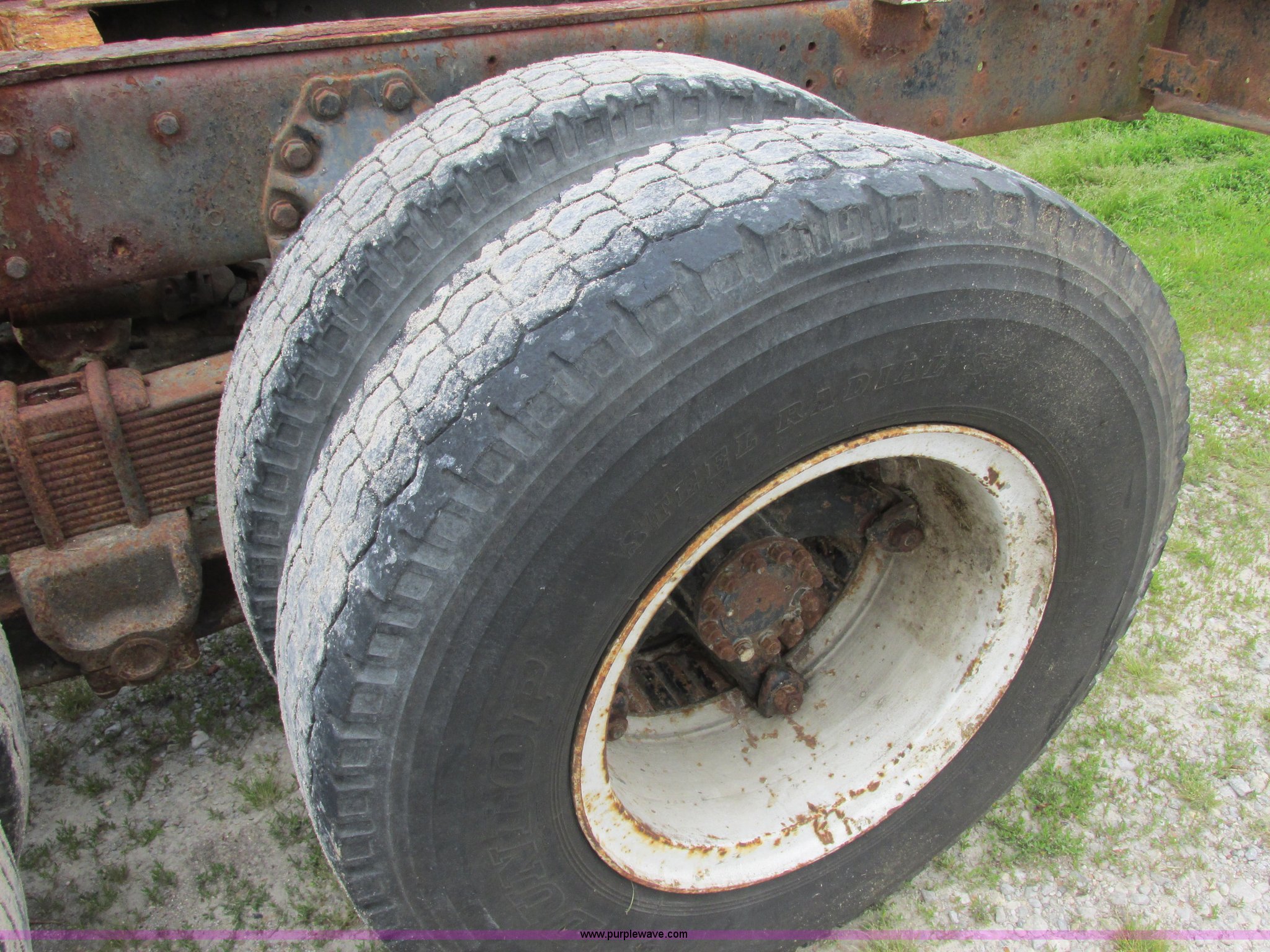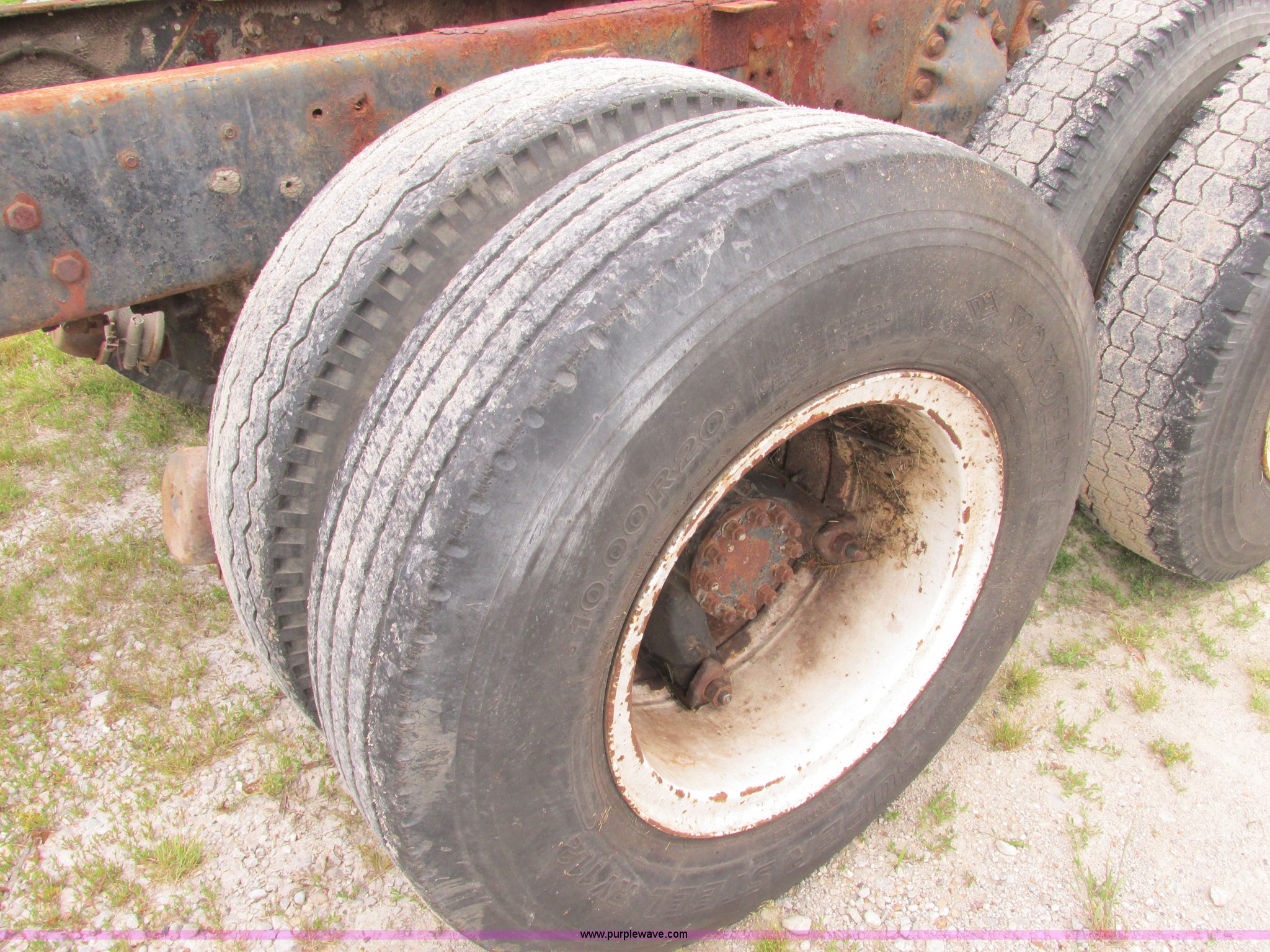 Purple Wave is selling a used Truck Chassis in Missouri. This item is a 1974 Ford 880 truck cab and chassis with the following: 93,927 miles on odometer, V8 gas engine, Holley carburetor, 10 speed manual transmission, Twin screw, Heat, Locking rear differential, Dual 40 gallon fuel tanks, Spring over walking beam suspension, Air brakes, 20' frame from cab to tail, 11R22.5 tires, GVWR 44,800 lbs, Interior/exterior cosmetic damage, Minor leaks, Removed from service June 2013