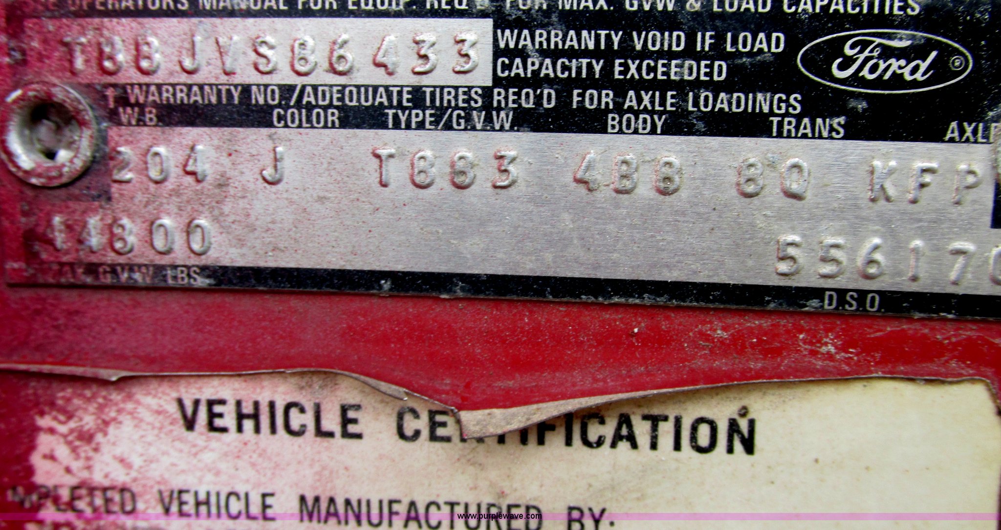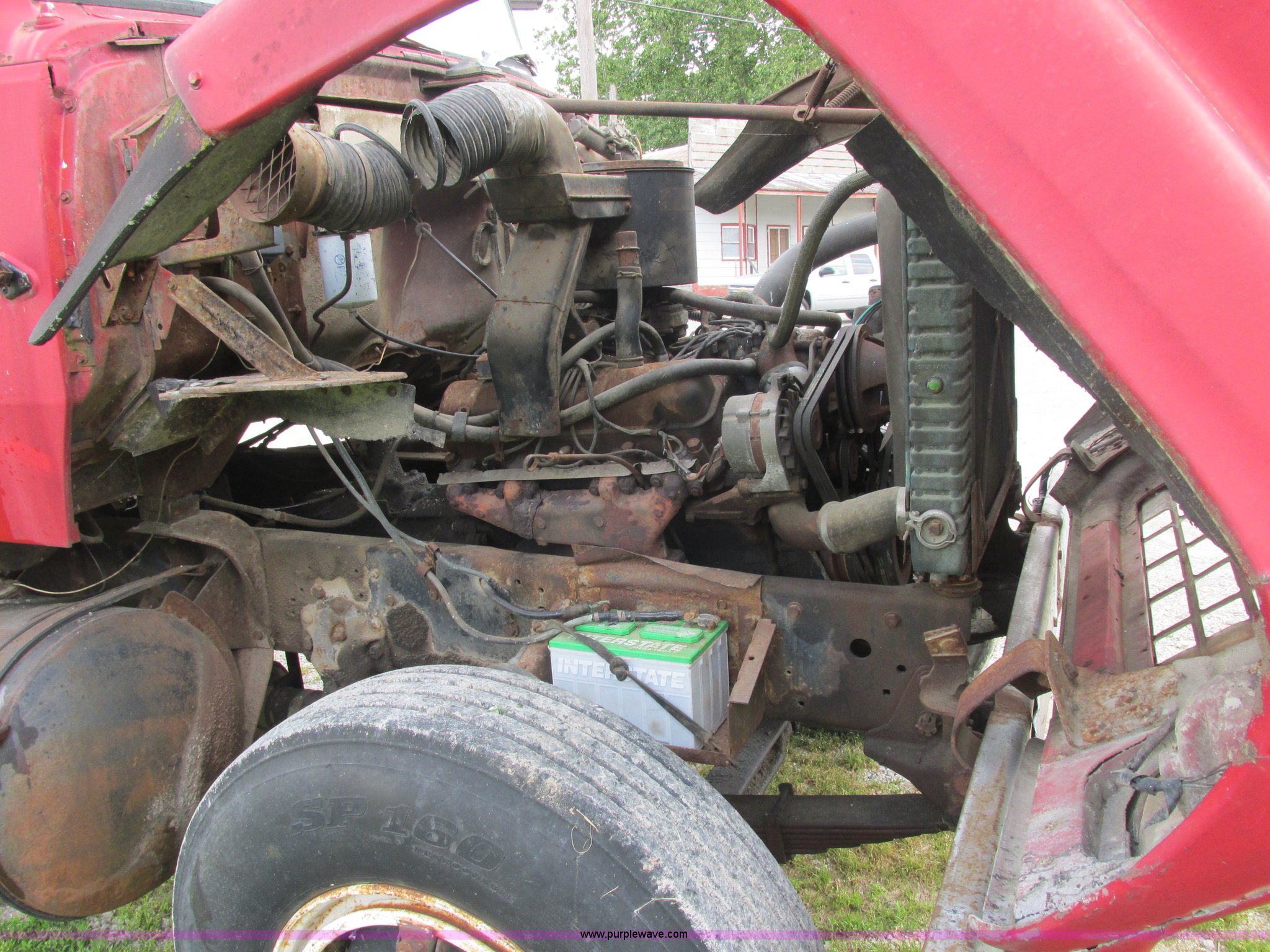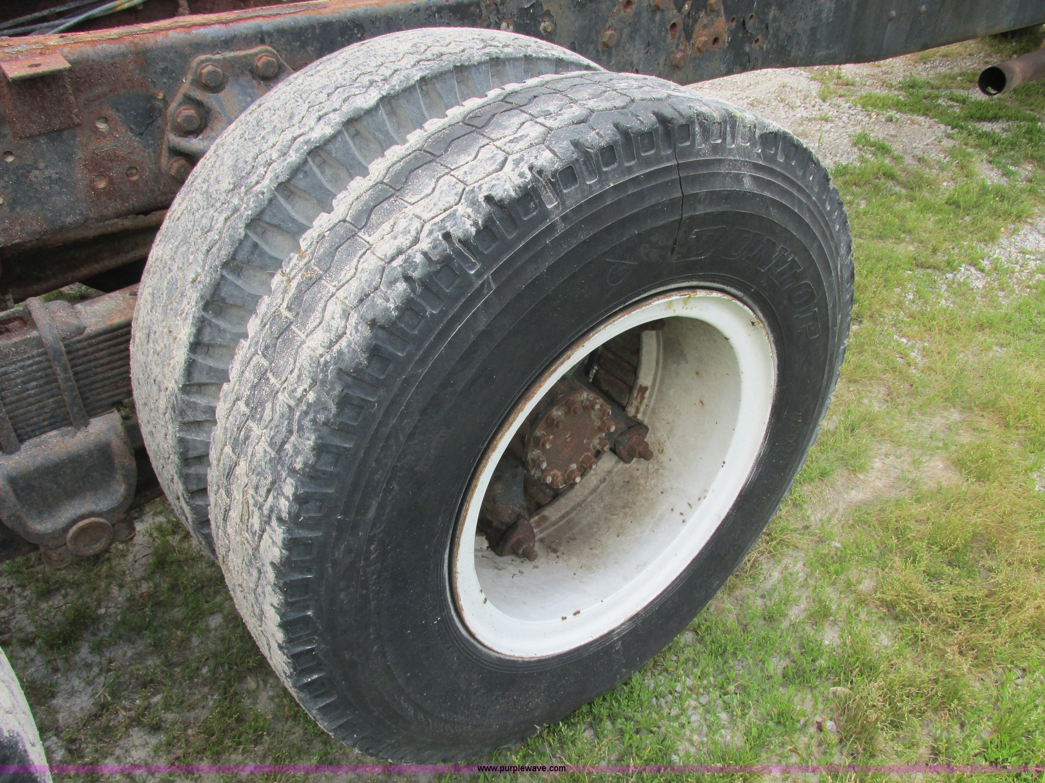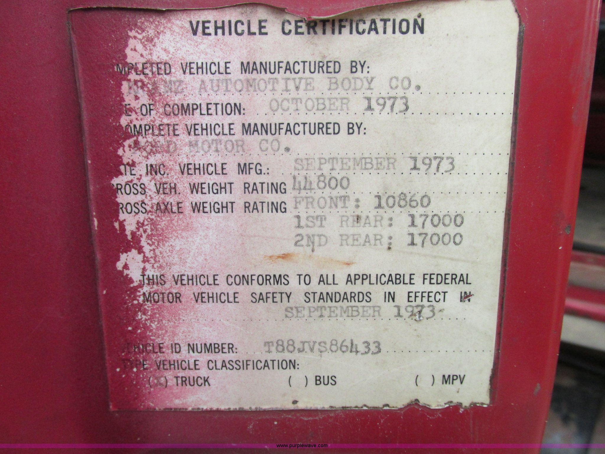 Purple Wave is selling a used Truck Chassis in Missouri. This item is a 1974 Ford 880 truck cab and chassis with the following: 93,927 miles on odometer, V8 gas engine, Holley carburetor, 10 speed manual transmission, Twin screw, Heat, Locking rear differential, Dual 40 gallon fuel tanks, Spring over walking beam suspension, Air brakes, 20' frame from cab to tail, 11R22.5 tires, GVWR 44,800 lbs, Interior/exterior cosmetic damage, Minor leaks, Removed from service June 2013