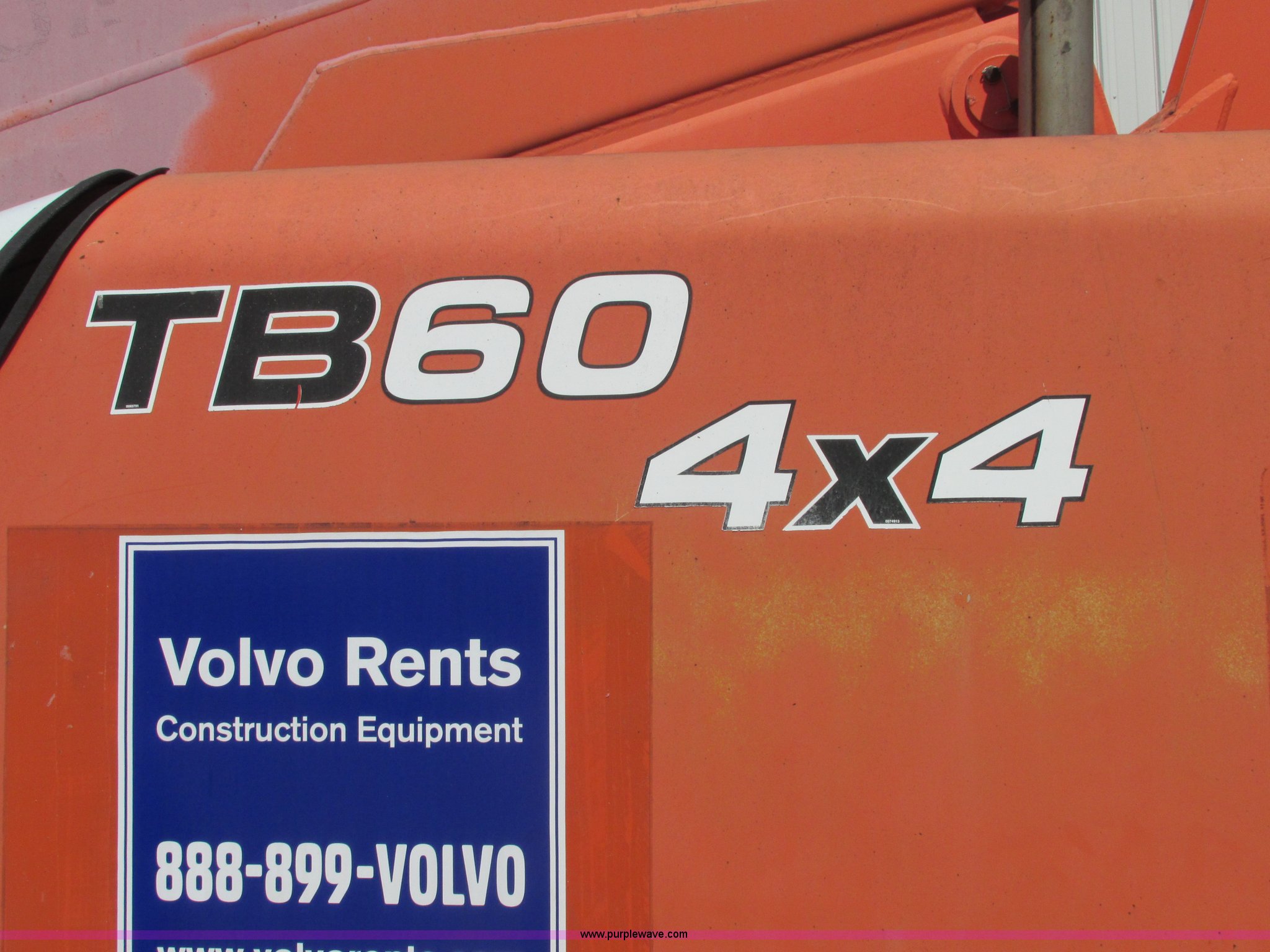 Snorkel TB60 60' boom lift. 3,988 hours on meter, Cummins B3.3L four cylinder diesel engine Serial B3368086241, High and low travel, 120V electric outlet in basket, Ground and platform control, 15-19.5 NHS tires, Front cowling cracked, Serial MY01106. Shipping quotes available. Volvo Rents. 2241 North Belcrest. Springfield, MO 65803