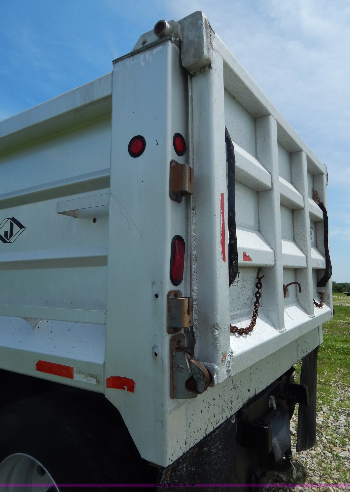 1994 International F9370 dump truck. 222,889 miles on odometer, Caterpillar 3406 14.6L L6 turbo diesel engine, Eaton Fuller 13 speed manual transmission, Twin screw, AC and heat, AM/FM, Air suspension seat, Heated mirrors, Passenger daylight door, J-Craft bed 15'L, Air operated end gate, Serial TB93316, Single ram three stage hoist, Exterior visor, Chrome bumper, Block heater, Dual 100 gallon fuel tanks, Trailer wiring, Pintle hitch, PTO, Air brakes, Jake brake, Aluminum wheels, 224" wheelbase, 315/80R22.5 front tires, 11R24.5 rear tires, GVWR 54,000 lbs, FAWR 14,000 lbs, IAWR 20,000 lbs, RAWR 20,000 lbs, Windshield cracked, Fuel tank dented, Recenetly repainted. 2HSFBMZR5RC087307. Shipping quotes available. Midwest Mo Contractors. 9309 Wallard Blvd. Richmond, MO 64085