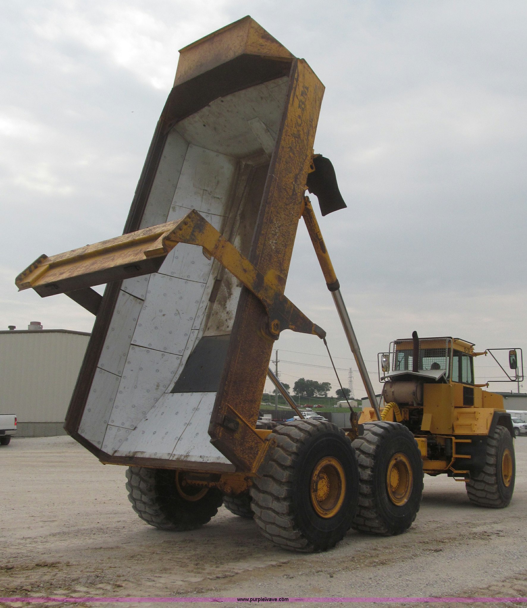 Purple Wave is selling a used Articulated Haul Truck in Nebraska. This item is a 1995 Volvo BM A35 articulated haul truck with the following: 11,355 hours on meter, 28,499 KM on odometer, Volvo TD122GA six cylinder turbo diesel engine, 322 HP, Powershift transmission, 6F-2R gears, Hi-Lo, Six wheel drive, Locking differentials, ROPS, Model 37103, Serial 02954, Heat and defroster, Passenger seat, Adjustable steering wheel, Sun visor, Protective grill for rear window, Block heater, Parking brake, Shop built tailgate, 73 degree tipping angle, Dual three stage rams, 35 ton load capacity, 19.5 cu. yd. struck capacity, 25.5 cu. yd. heaped capacity, Warner Plastics & Liners bed liner, Bed warmer, 95 gallon fuel tank, Volvo suspension, Oscillating axles, Bridgestone 26.5R25 tires, 55,770 lbs. base operating weight, Re-manufactured turbo replaced in 7/2009, Re-manufactured transmission replaced in 11/2007, Headlights inoperable, Maintenance history available, Serial A35V2954, Unit# 10-39