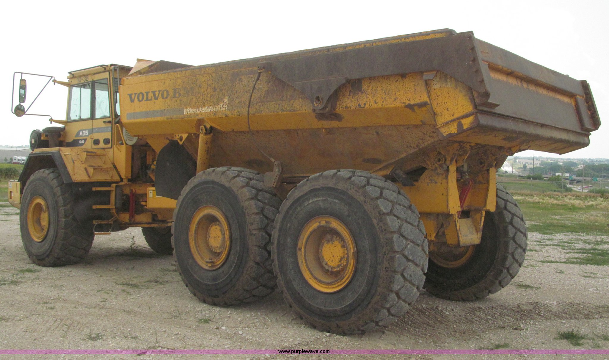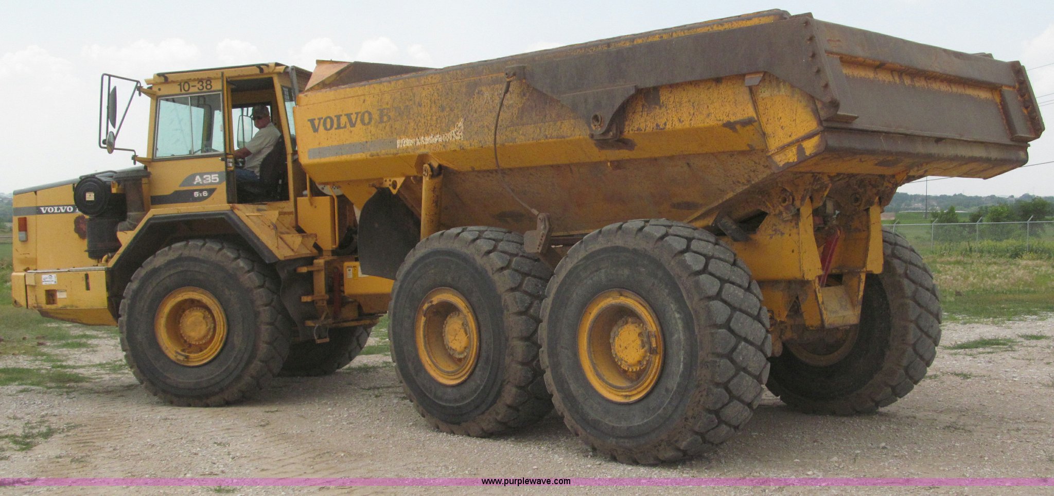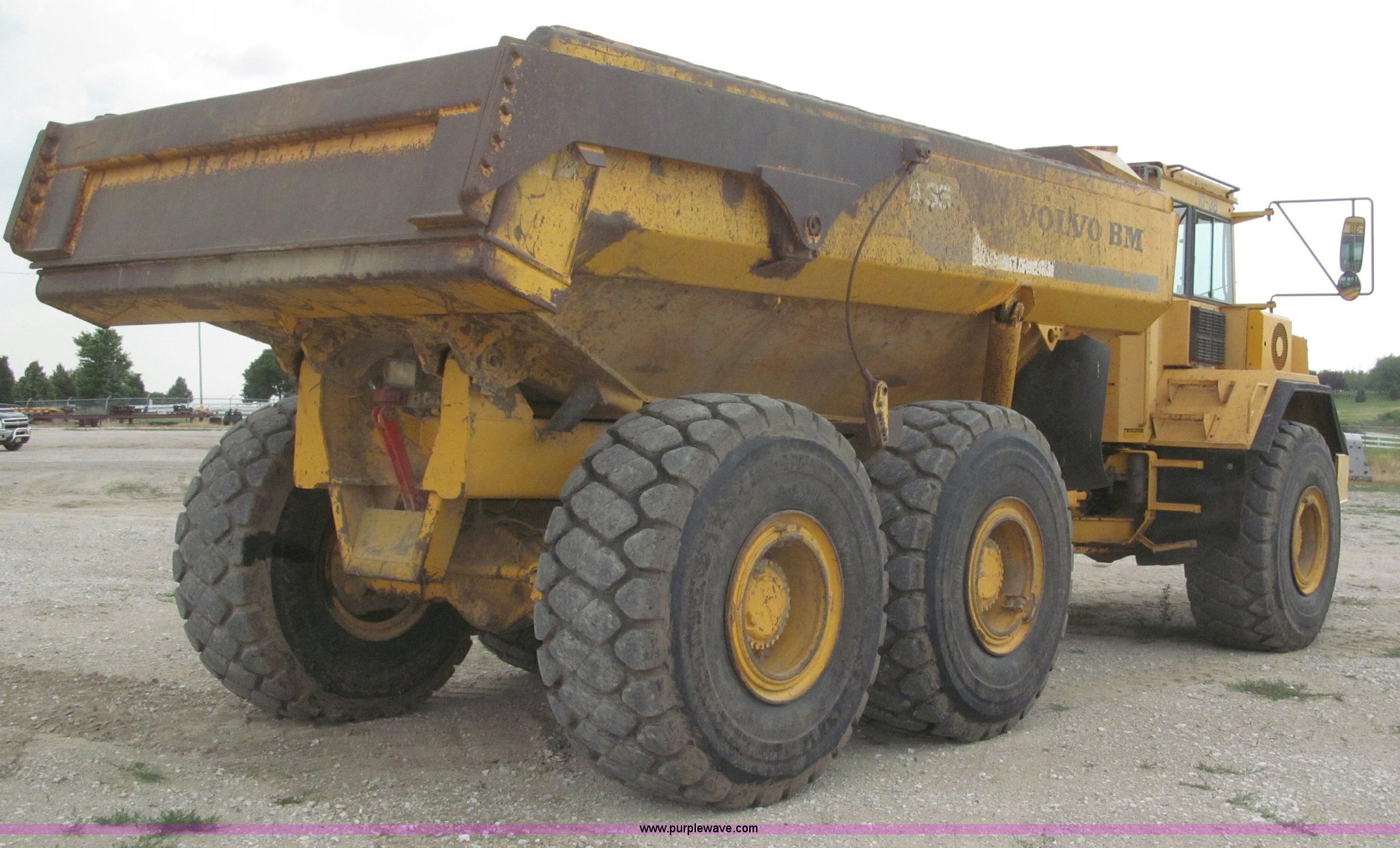 Purple Wave is selling a used Articulated Haul Truck in Nebraska. This item is a 1994 Volvo BM A35 articulated haul truck with the following: 16,907 hours on meter, 5,879 KM on odometer, Instrument panel replaced, actual KM unknown, Volvo TD122GA six cylinder turbo diesel engine, Automatic powershift transmission, Hi-Lo, Six wheel drive, AC and heat, Tilt, Adjustable seat, Master switch disconnect, Backup alarm, ROPS model 37103, Serial 02539, Warner plastics liner, Oscillating axles, Longitudinal differential lock, (3) transverse differential locks, Adjustable steering wheel, Custom tail gate, 73 degree tipping angle, Dual ram three stage hoist, 35 ton load capacity, 19.5 cubic yard struck capacity, 25.5 cubic yard heaped capacity, Rear window protective grill, Block heater, 95 gallon fuel tank, Bridgestone 26.5R25 tires, 55,770 lbs. base operating weight, Damping cylinder replaced 9/2008, Front differential bearings and differential lock rod replaced 2/2008, Remanufactured engine installed 7/2007, Unit# 10-38