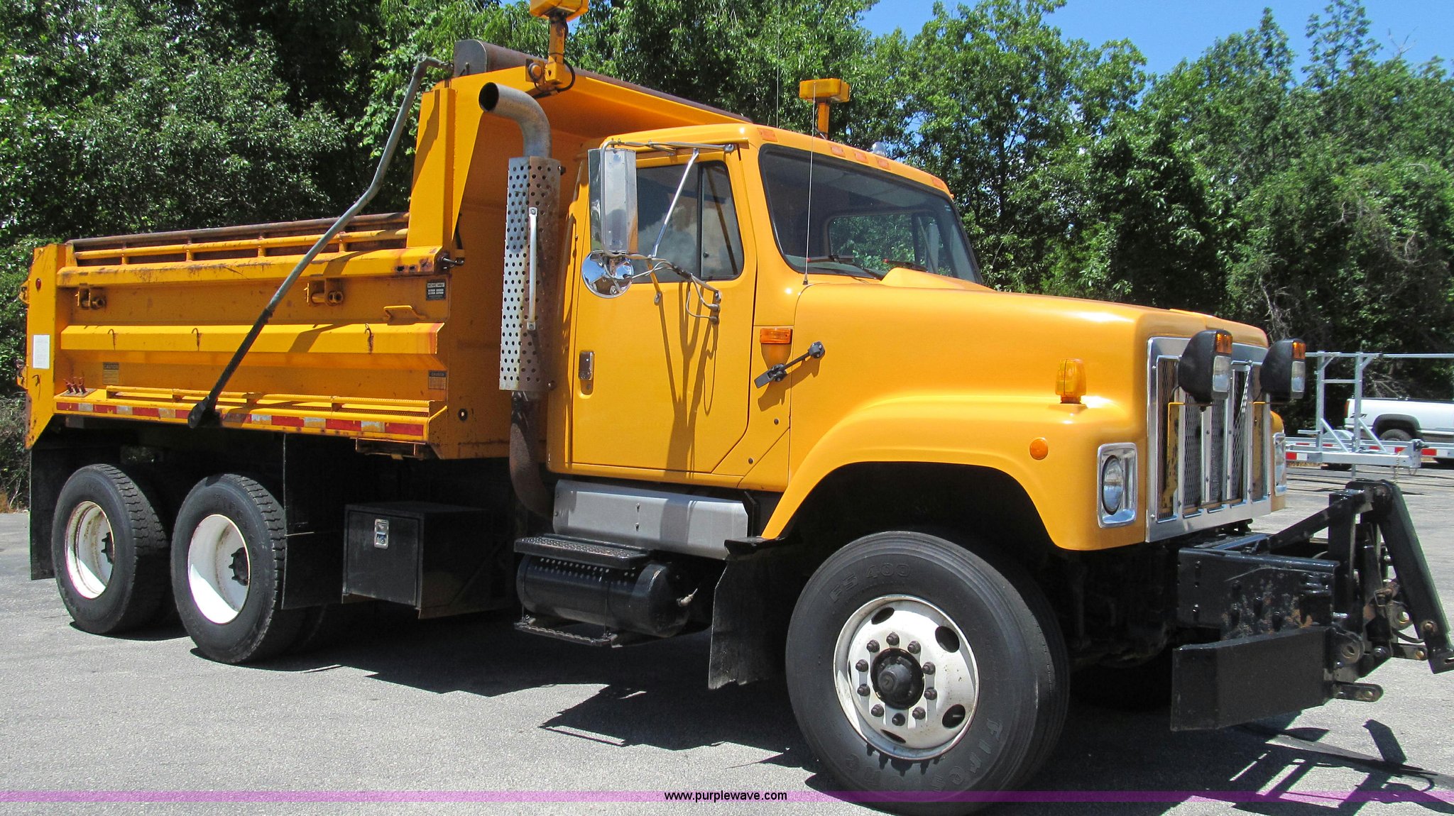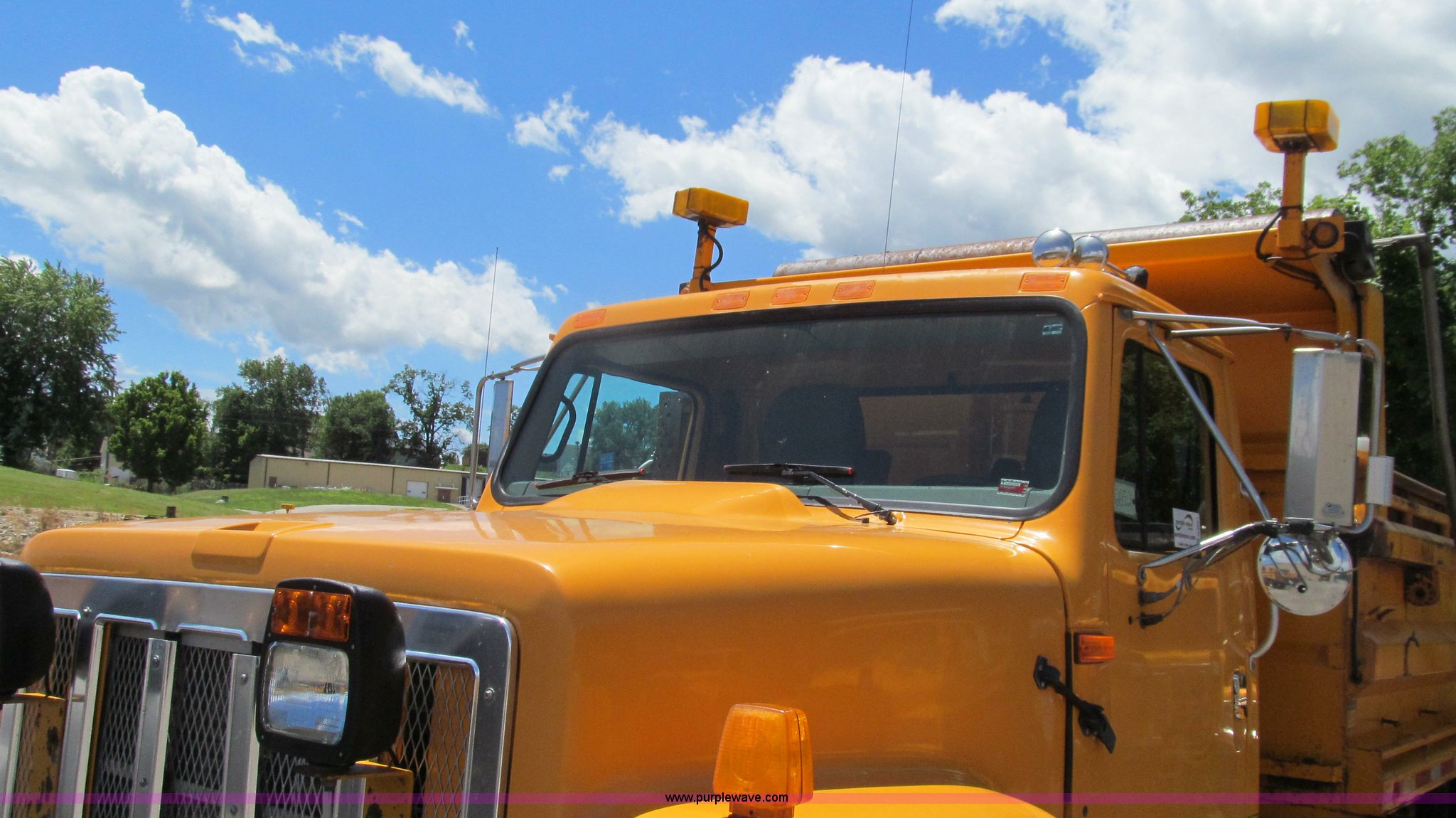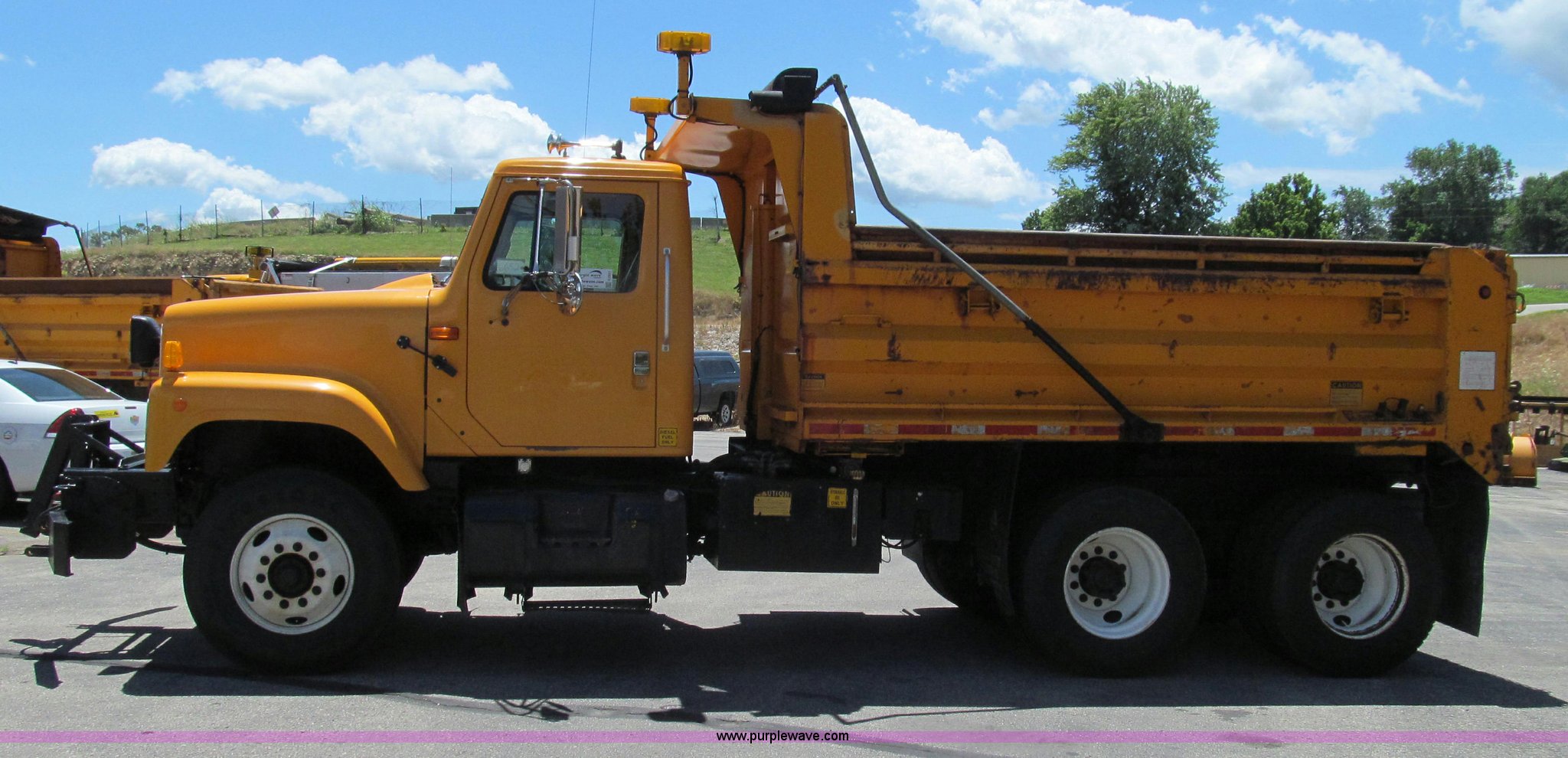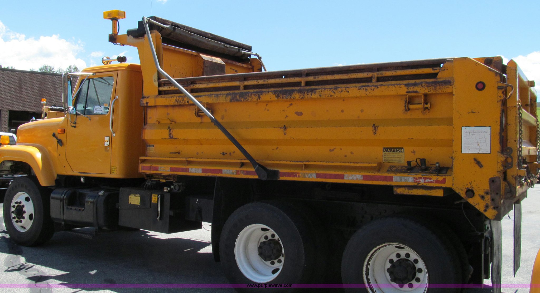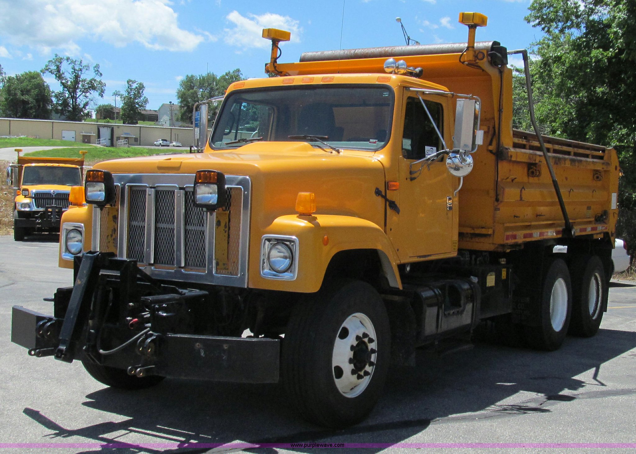 Purple Wave is selling a used Construction Dump Truck in Missouri. This item is a 2002 International F2554 dump truck with the following: 179,169 miles on odometer, 8,579 hours on meter, International DT530 8.7L L6 diesel engine, Allison six speed automatic transmission, Twin screw, Power divider lock, AC and heat, AC inoperable, Cruise, AM/FM, Dual air suspension seats, Air ride cab, Power windows and mirrors, Heated mirrors, Galion 13' dump bed, Electric rollover tarp, Air end gate, Bed mounted amber warning lights, Rust, Serial B-21041, Equipped for front mounted snow plow, In-cab controls, 75 gallon fuel tank, Torshion spring suspension, Air brakes, 192" wheelbase, 11R22.5 tires, GVWR 58,000 lbs, MoDOT ID 6652
