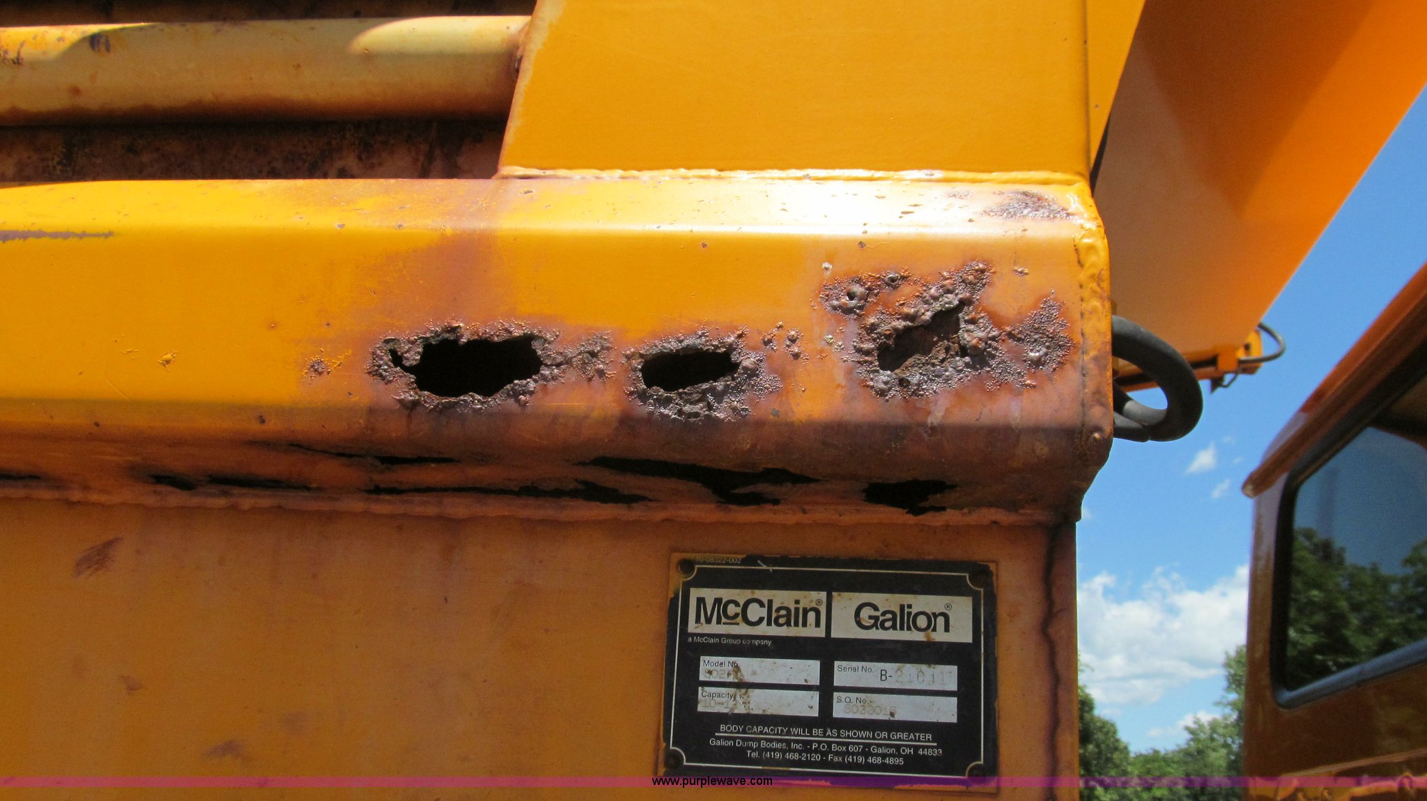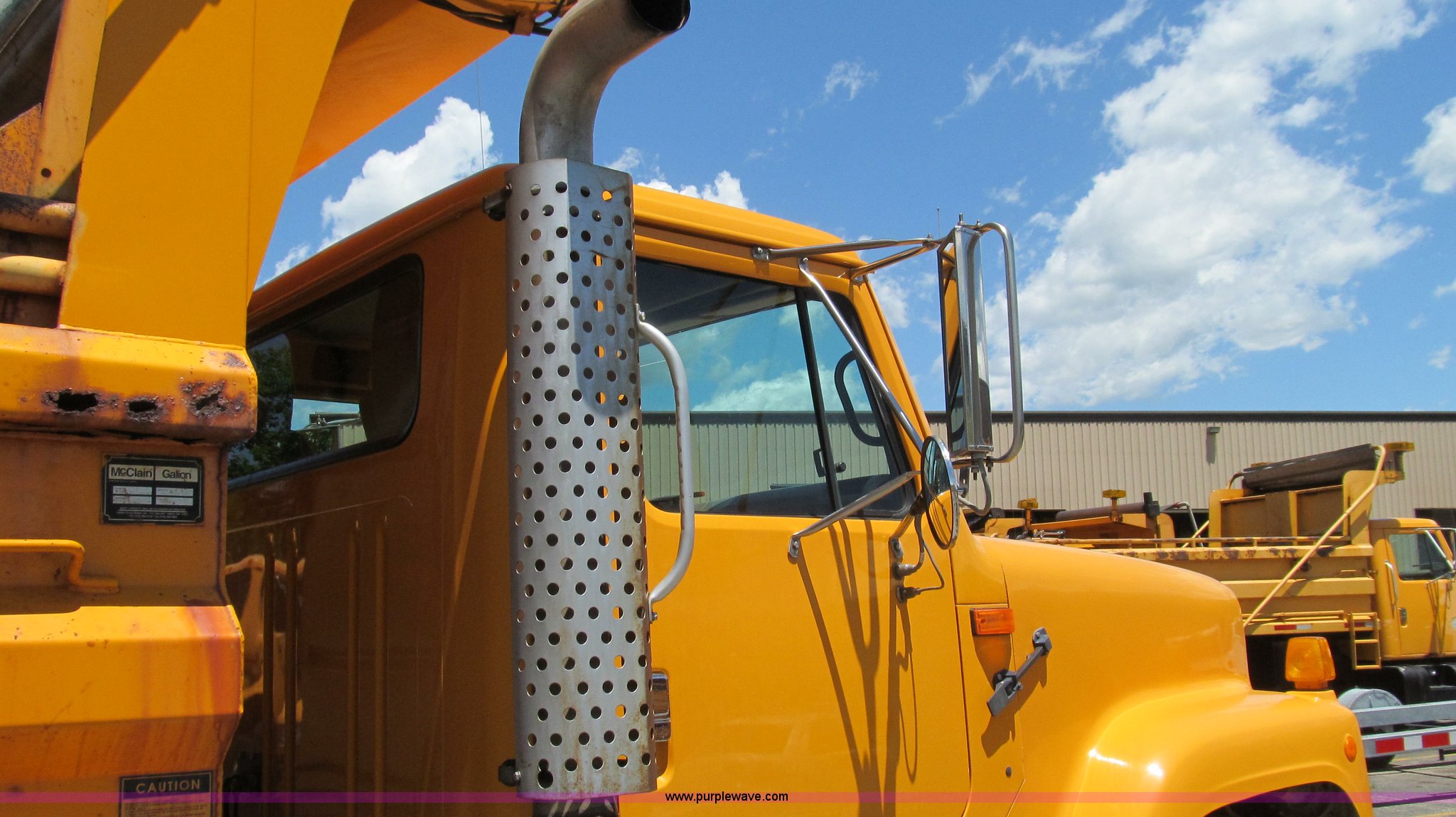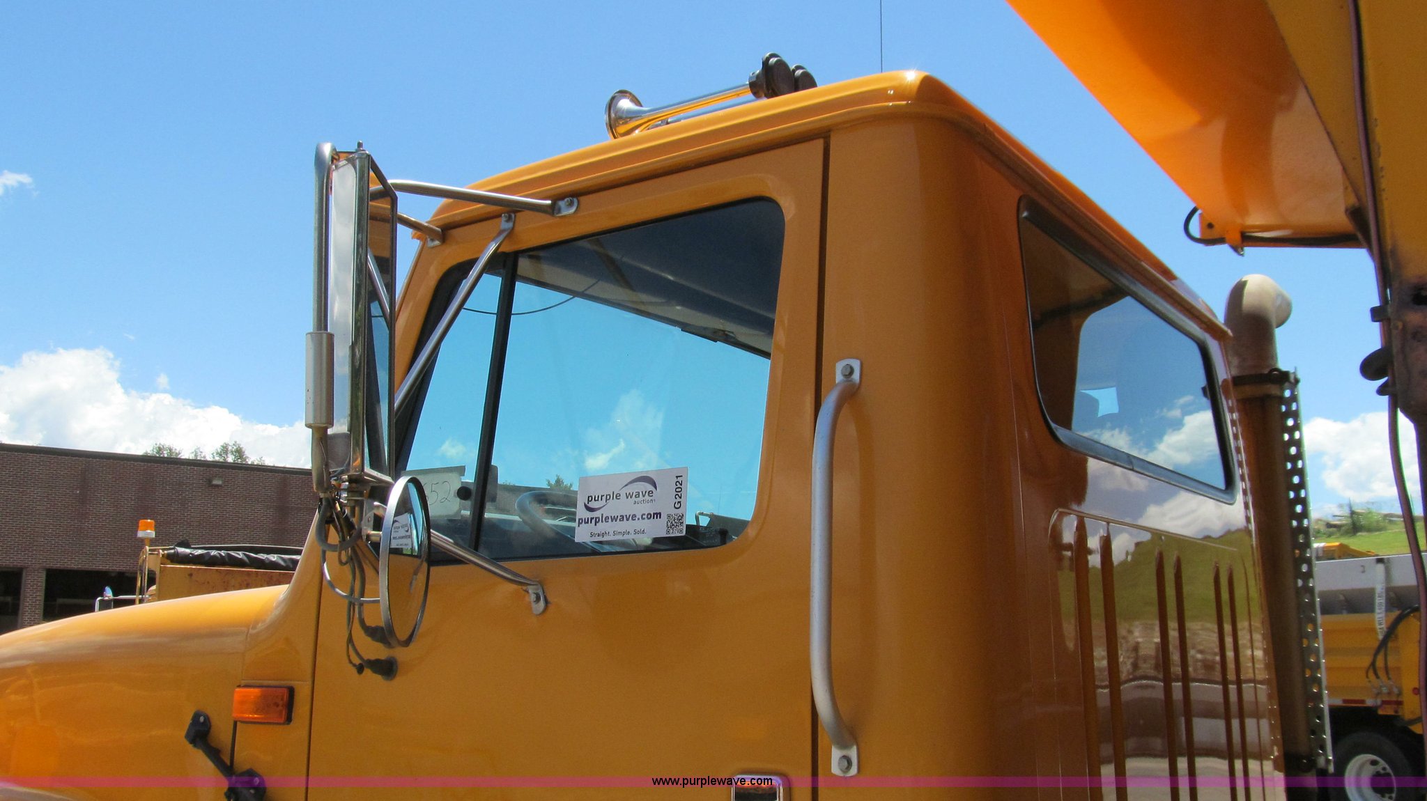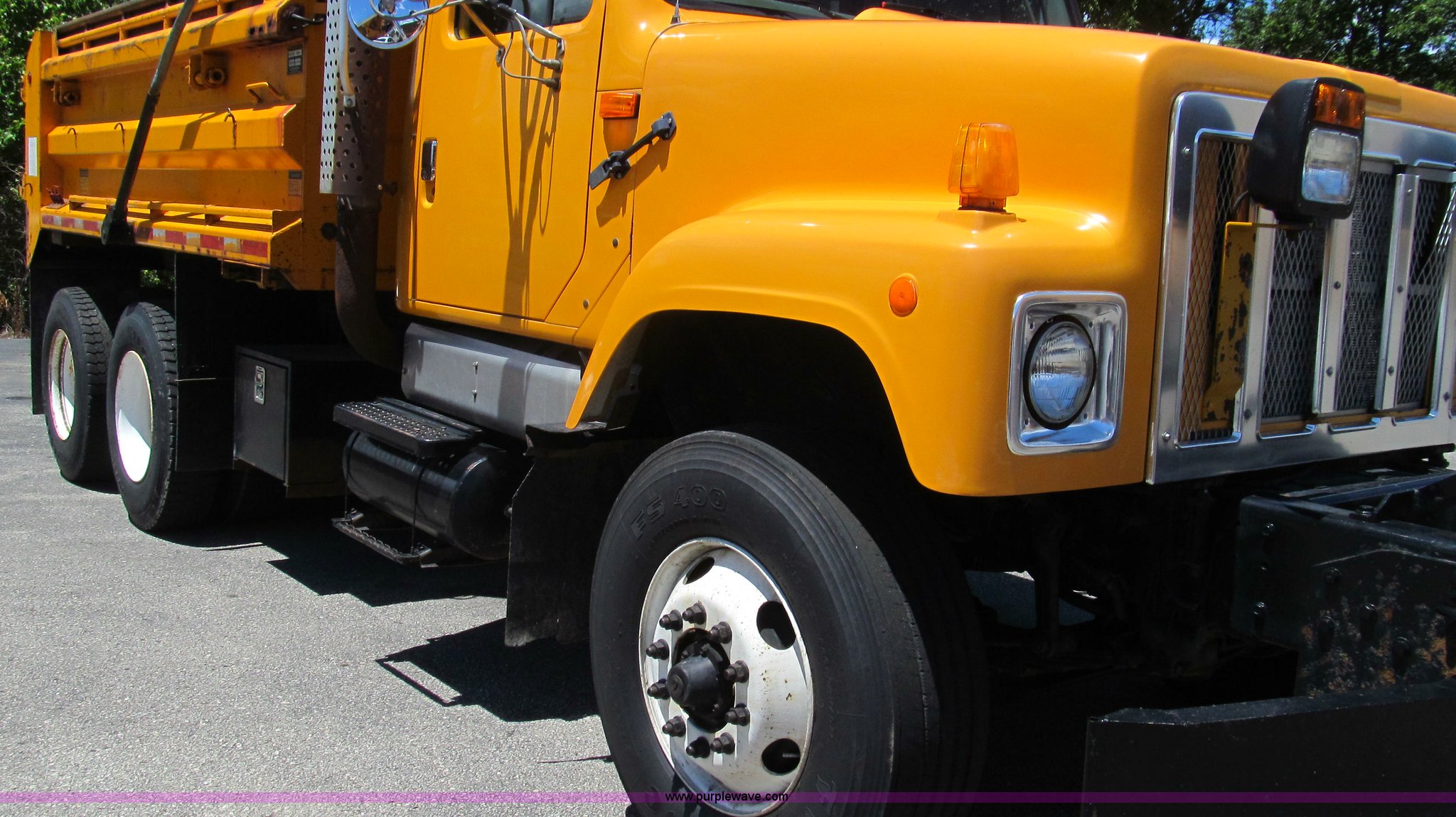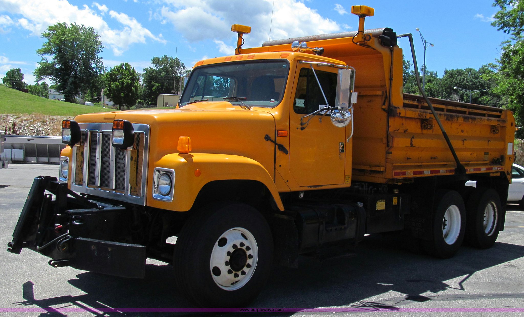 Purple Wave is selling a used Construction Dump Truck in Missouri. This item is a 2002 International F2554 dump truck with the following: 179,169 miles on odometer, 8,579 hours on meter, International DT530 8.7L L6 diesel engine, Allison six speed automatic transmission, Twin screw, Power divider lock, AC and heat, AC inoperable, Cruise, AM/FM, Dual air suspension seats, Air ride cab, Power windows and mirrors, Heated mirrors, Galion 13' dump bed, Electric rollover tarp, Air end gate, Bed mounted amber warning lights, Rust, Serial B-21041, Equipped for front mounted snow plow, In-cab controls, 75 gallon fuel tank, Torshion spring suspension, Air brakes, 192" wheelbase, 11R22.5 tires, GVWR 58,000 lbs, MoDOT ID 6652