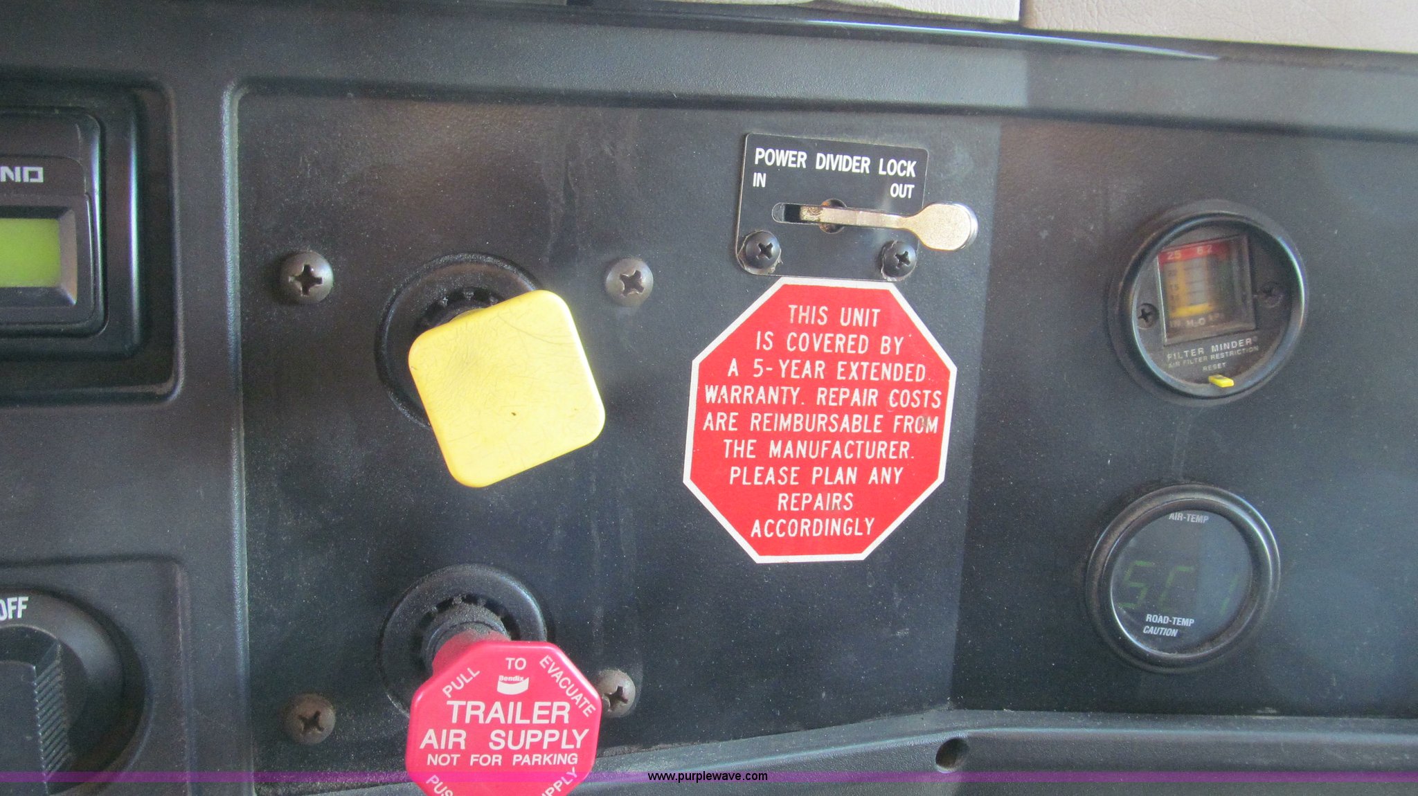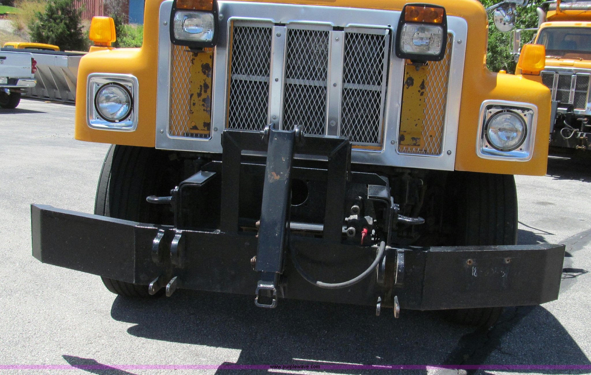 2002 International F2554 dump truck. 179,169 miles on odometer, 8,579 hours on meter, International DT530 8.7L L6 diesel engine, Allison six speed automatic transmission, Twin screw, Power divider lock, AC and heat AC inoperable, Cruise, AM/FM, Dual air suspension seats, Air ride cab, Power windows and mirrors, Heated mirrors, Galion 13' dump bed Electric rollover tarp, Air end gate, Bed mounted amber warning lights, Rust, Serial B-21041, Equipped for front mounted snow plow In-cab controls, 75 gallon fuel tank, Torshion spring suspension, Air brakes, 192" wheelbase, 11R22.5 tires, GVWR 58,000 lbs, MoDOT ID 6652. 1HTGCADT52H523117. Shipping quotes available. Missouri Department of Transportation (MODOT). 1511 Missouri Blvd. Jefferson City, MO 65102