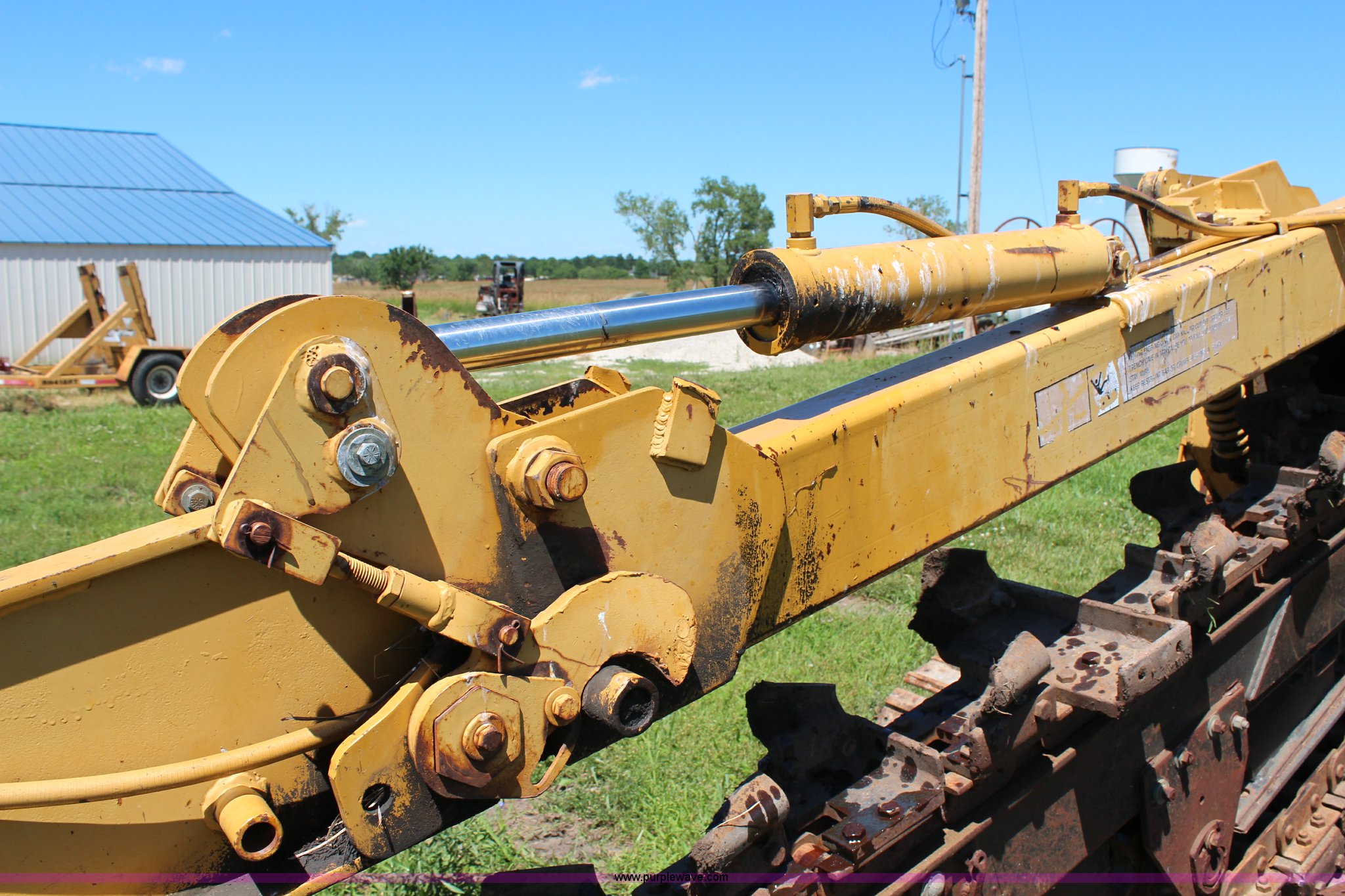Purple Wave is selling a used Trencher or Rock Saw in Kansas. This item is a Vermeer T600C trencher with the following: 1,029 hours on meter, Detroit Diesel four cylinder diesel engine, Serial 40-151856, 6' digging depth, Set up for 14" cutting width, 15" tracks, Hydraulic crummer cylinder leaks, Unit has not been used in five years, Serial 1329