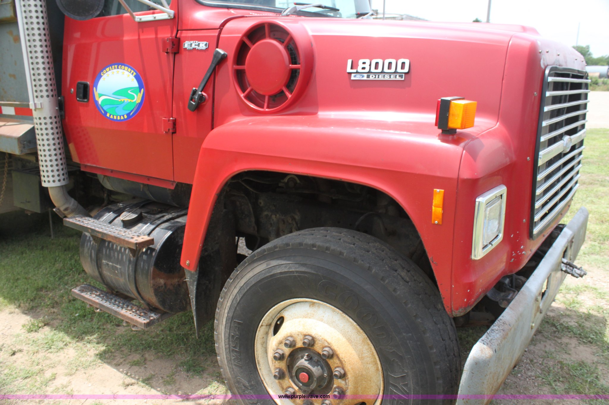 Purple Wave is selling a used Construction Dump Truck in Kansas. This item is a 1994 Ford L8000 dump truck with the following: 76,562 miles on odometer, Actual mileage unknown, Cummins 8.3L L6 diesel engine, Allison automatic transmission, Rebuilt, Twin screw, AC and heat, AM/FM, Air suspension seat, Warren 16' dump bed, Air operated end gate, Roll over tarp, Block heater, Dual 50 gallon fuel tanks, PTO, Front and rear hydraulic remotes, Air brakes, 315/80R22.5 front tires, 11R22.5 rear tires, FAWR 16,000 lbs, RAWR 20,000 lbs, Maintenace records available