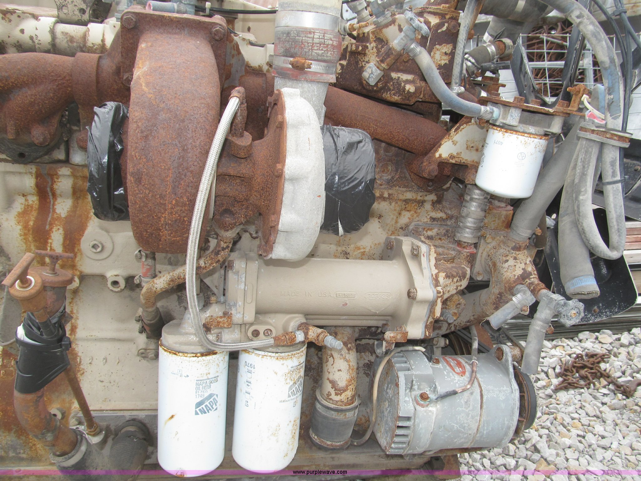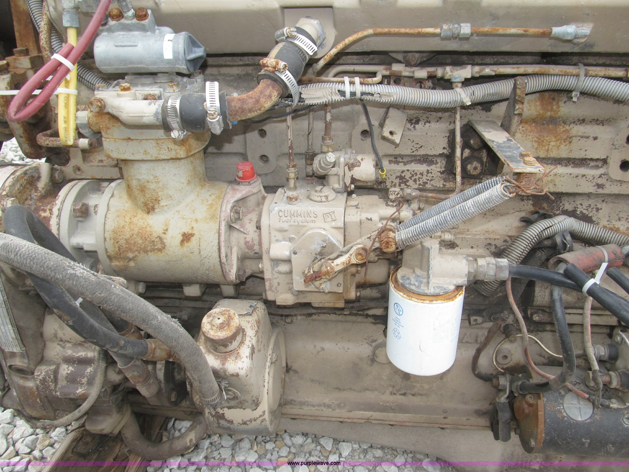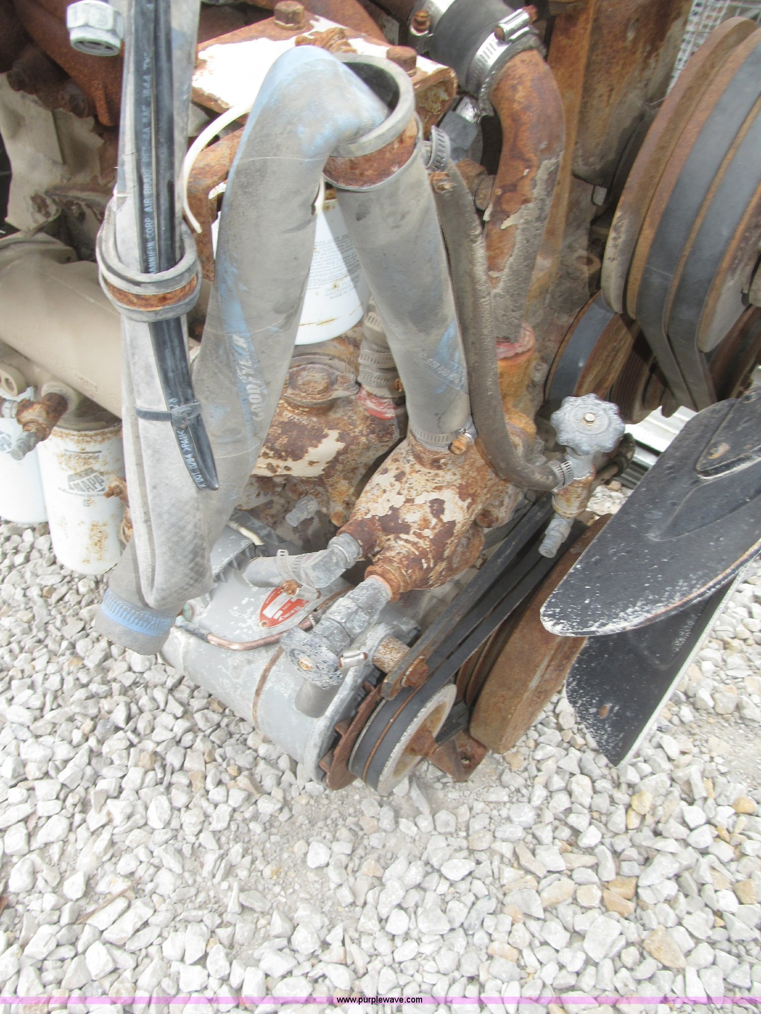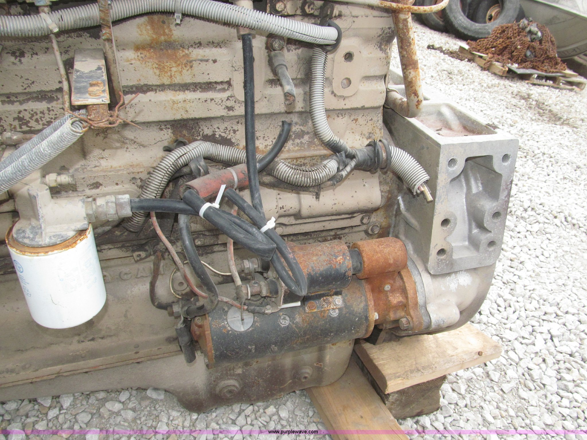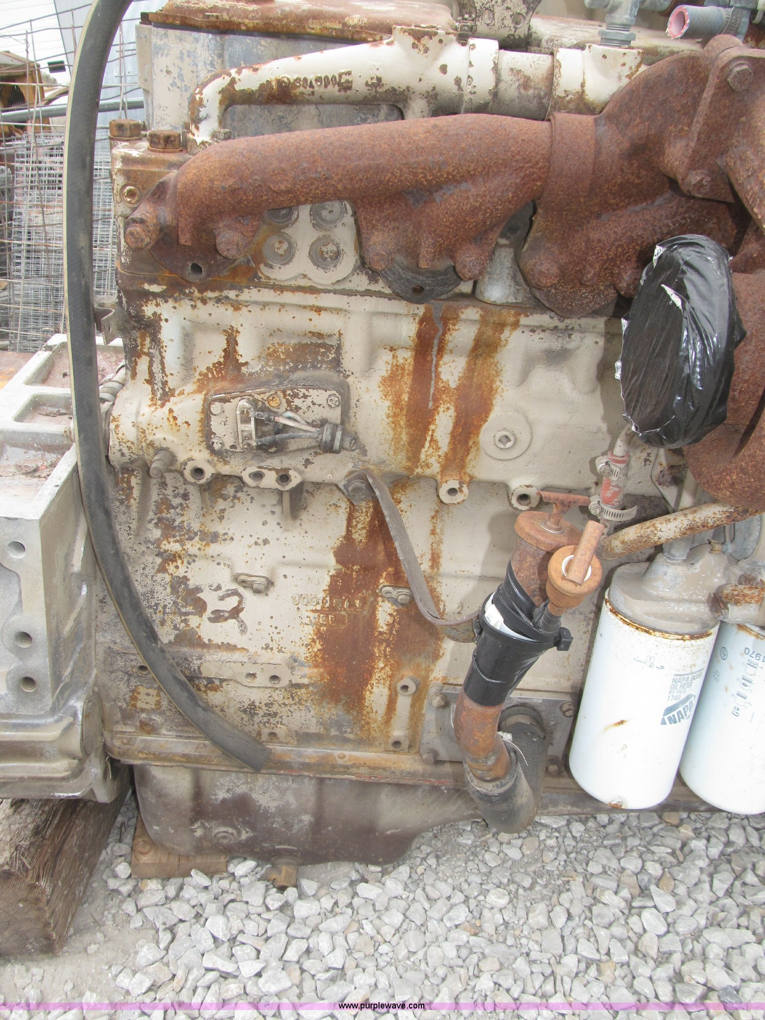 Purple Wave is selling a used Automotive Parts or Acces. in Iowa. This item is a Cummins 855 six cylinder turbo diesel engine with the following: Model NTC350, 855 CID, 350 HP at 1,900 rpm rating, Removed from 1984 White semi truck, Operational when removed from service three years ago, Serial 11226582