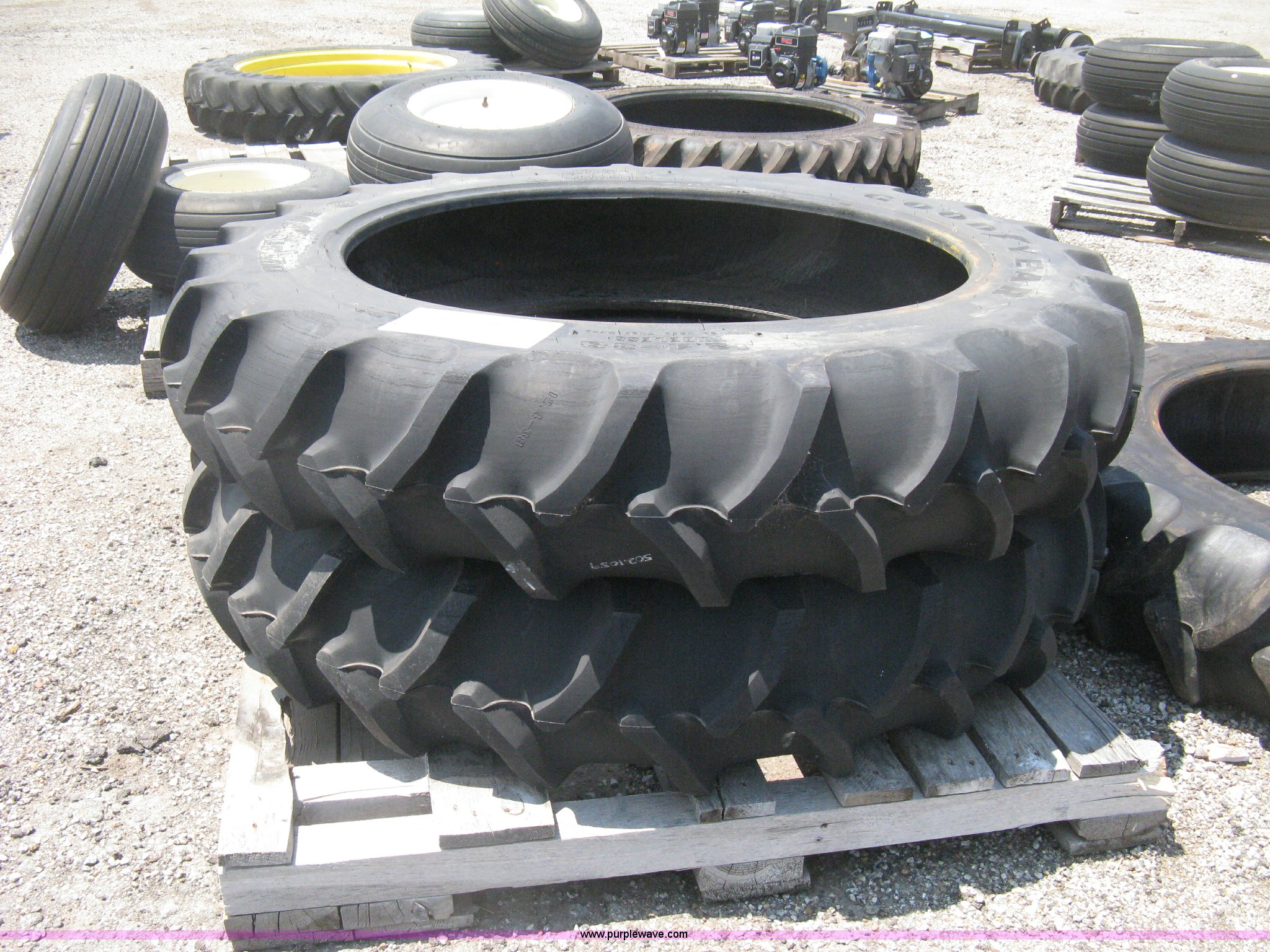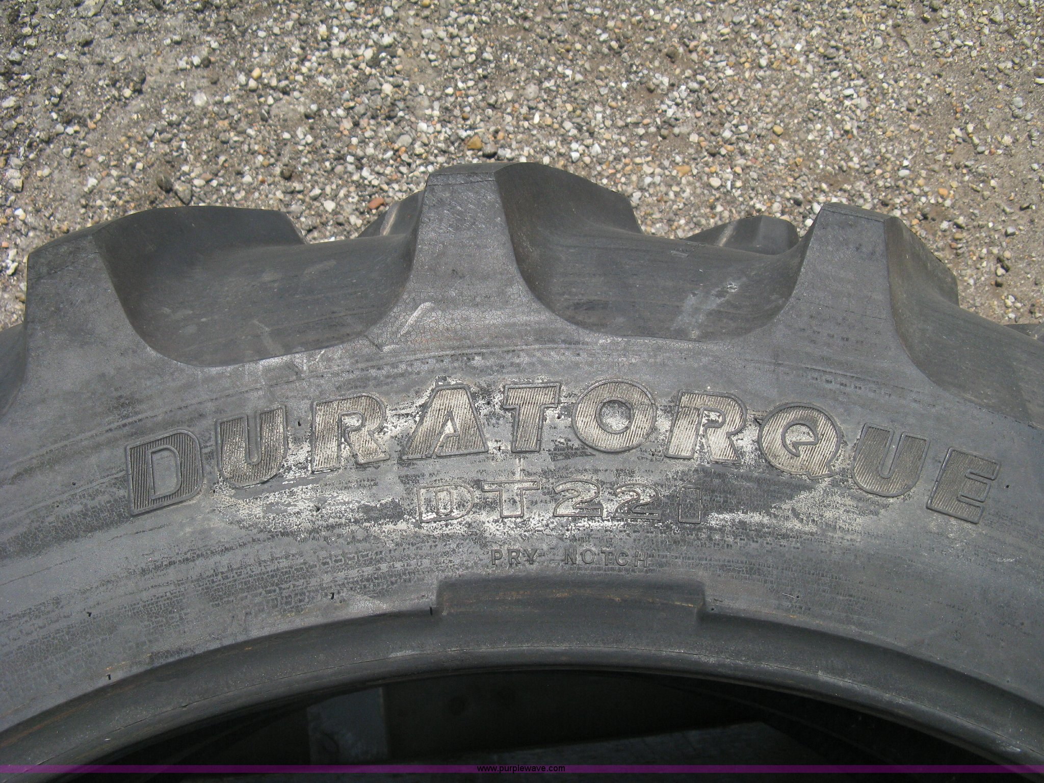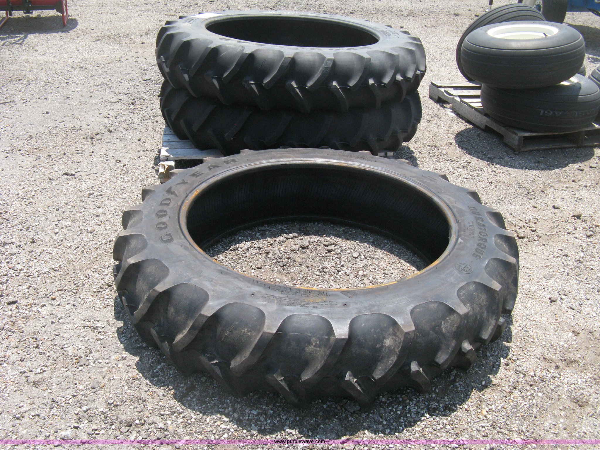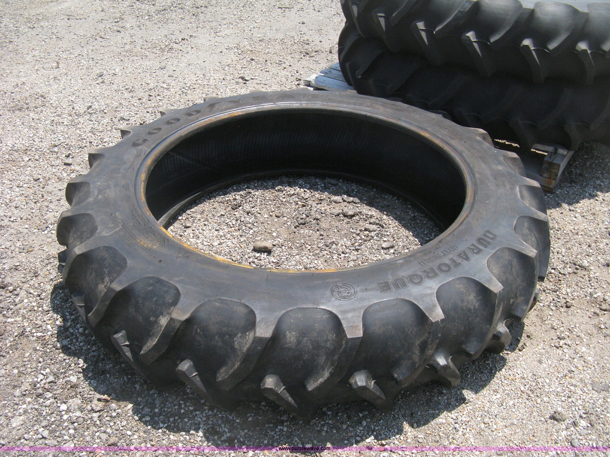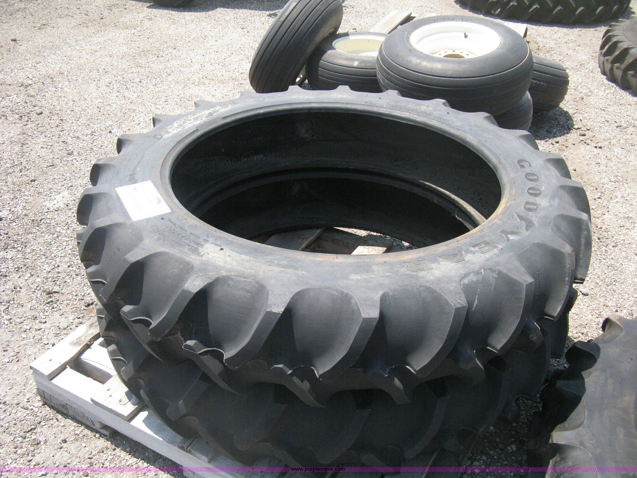 Purple Wave is selling a used Industrial Tires or Tracks in Kansas. This item is a (3) Goodyear Duratorque DT221 tires with the following: 12.4-38 tubeless, 10 ply, (2) unused