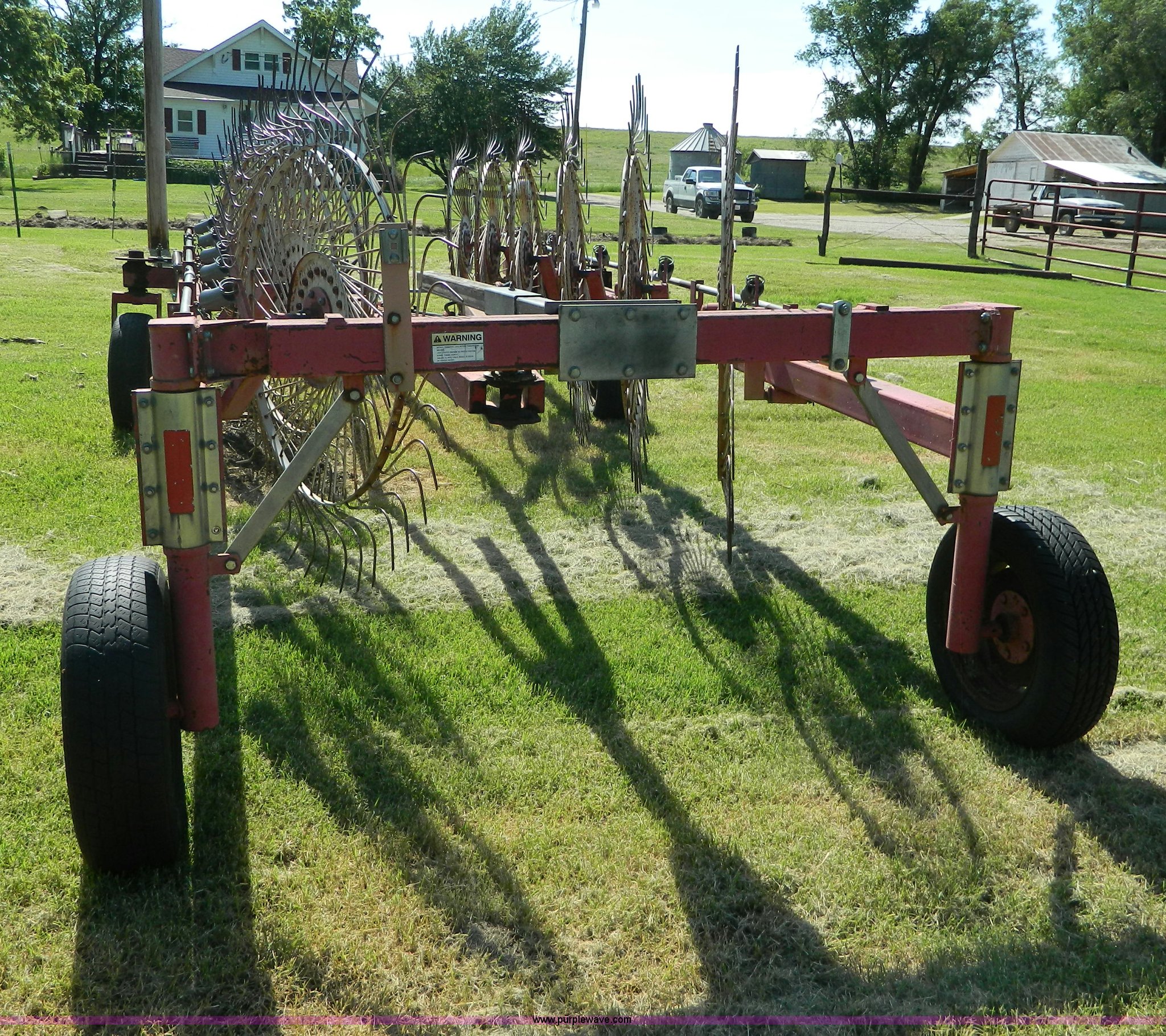 Purple Wave is selling a used Hay Rake in Kansas. This item is a Gehl 520 12 wheel rake with the following: Hydraulic cylinder, P185/75R14 tires