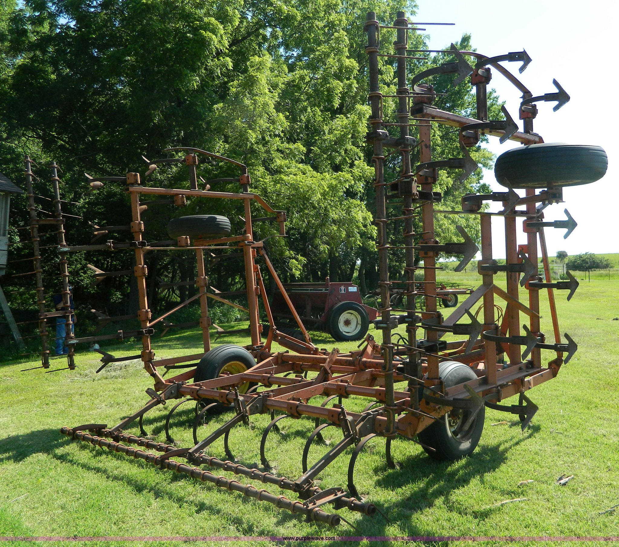 Purple Wave is selling a used Field Cultivator or Sweep Plow in Kansas. This item is a Allis Chalmers 1300 field cultivator with the following: 26'W, 9" sweeps, Noble spring harrows, Hydraulic lift cylinder