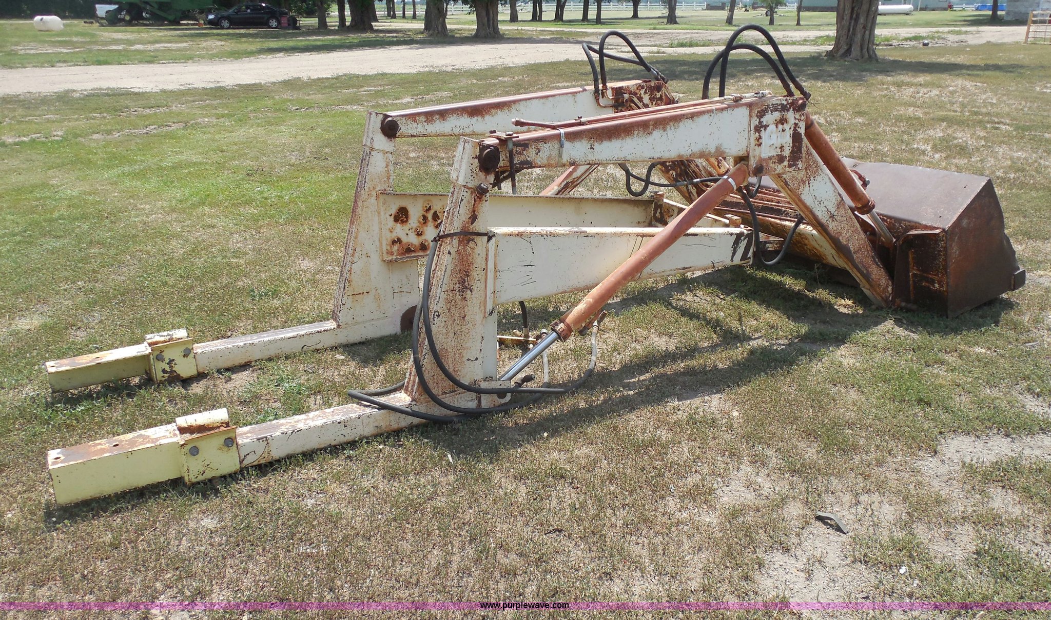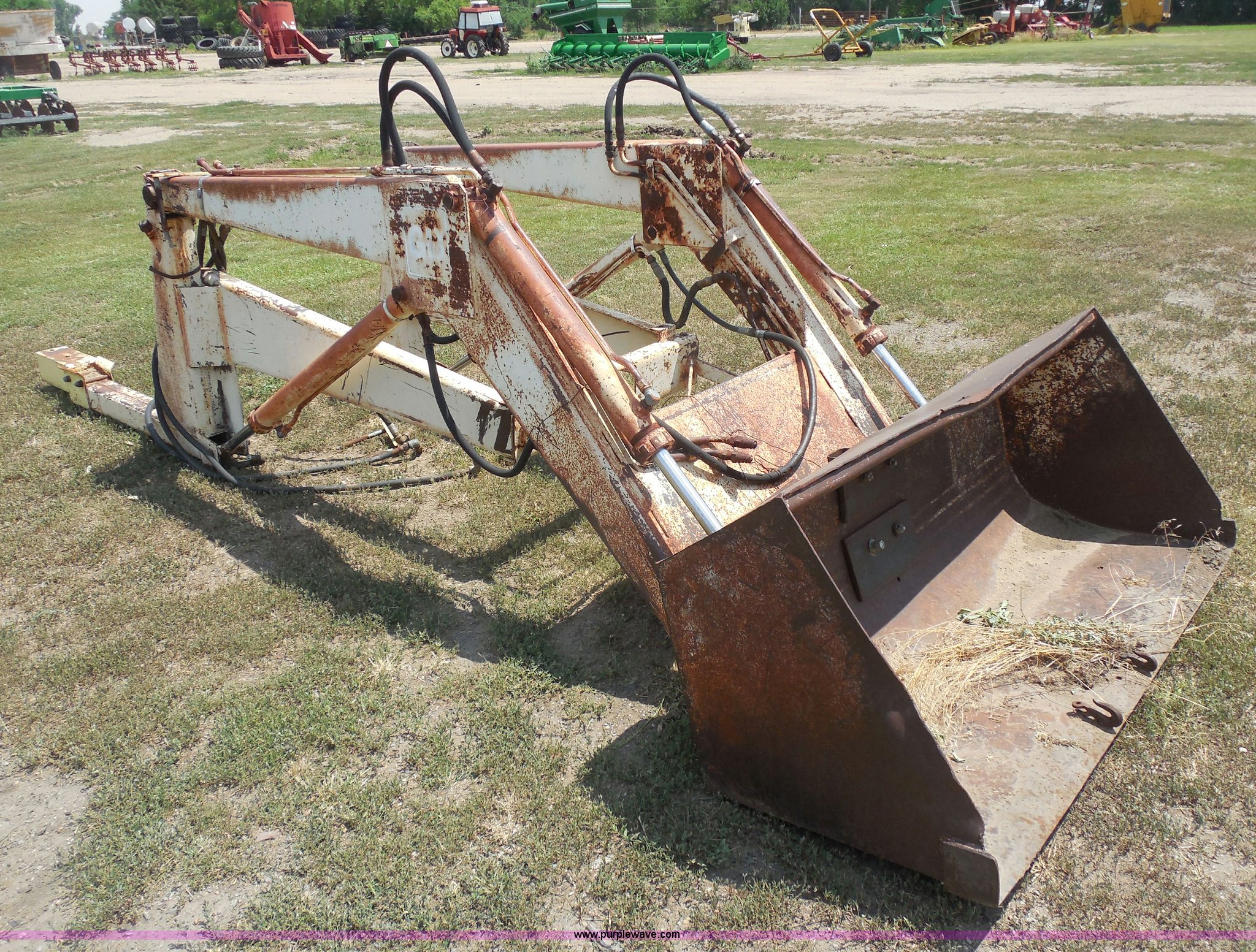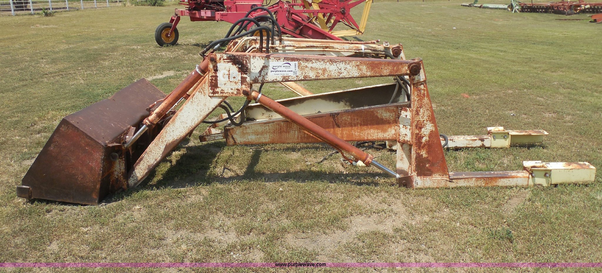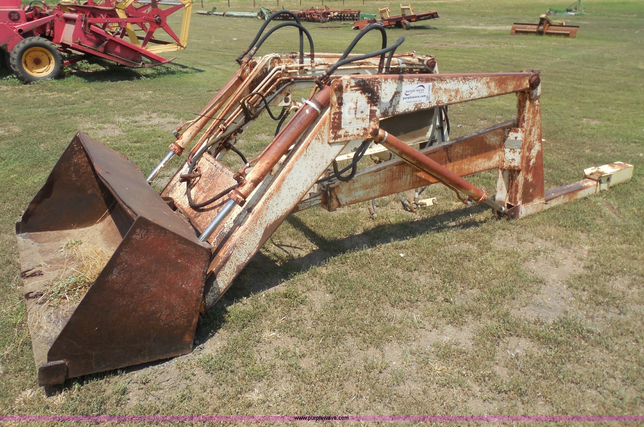 Purple Wave is selling a used Ag Tractor Loader or Attach. in Kansas. This item is a GB 800 loader with the following: 5'W bucket with hooks, 33"W brackets, Serial 1358
