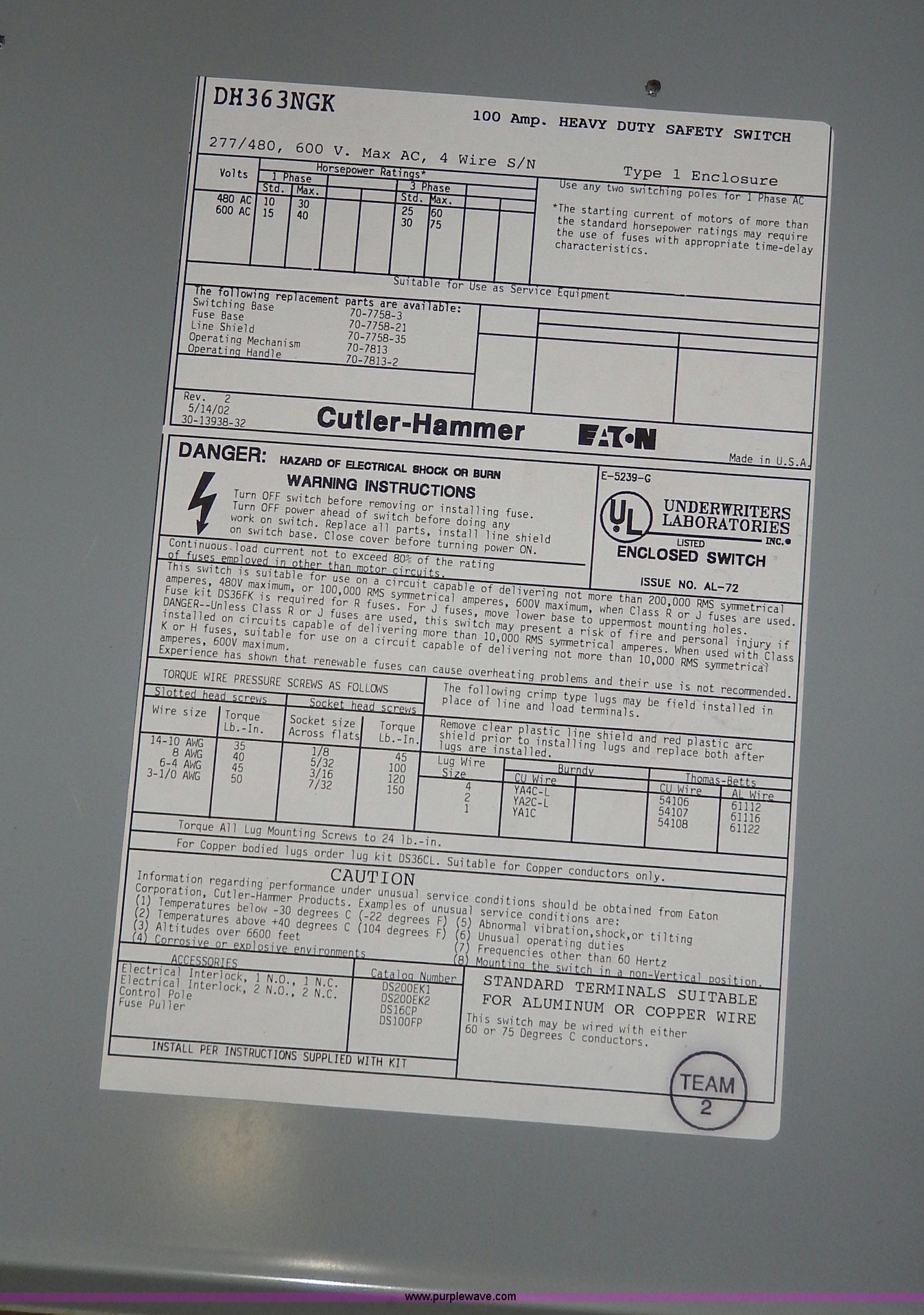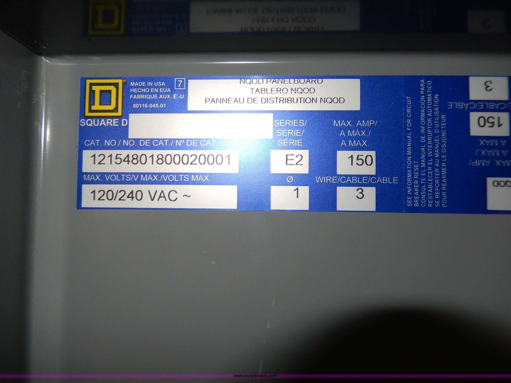 Purple Wave is selling a used Tools in Kansas. This item is a Square D load center unit with the following: 20.5" x 6" x 51, Single phase, 120/240V, 150 amp