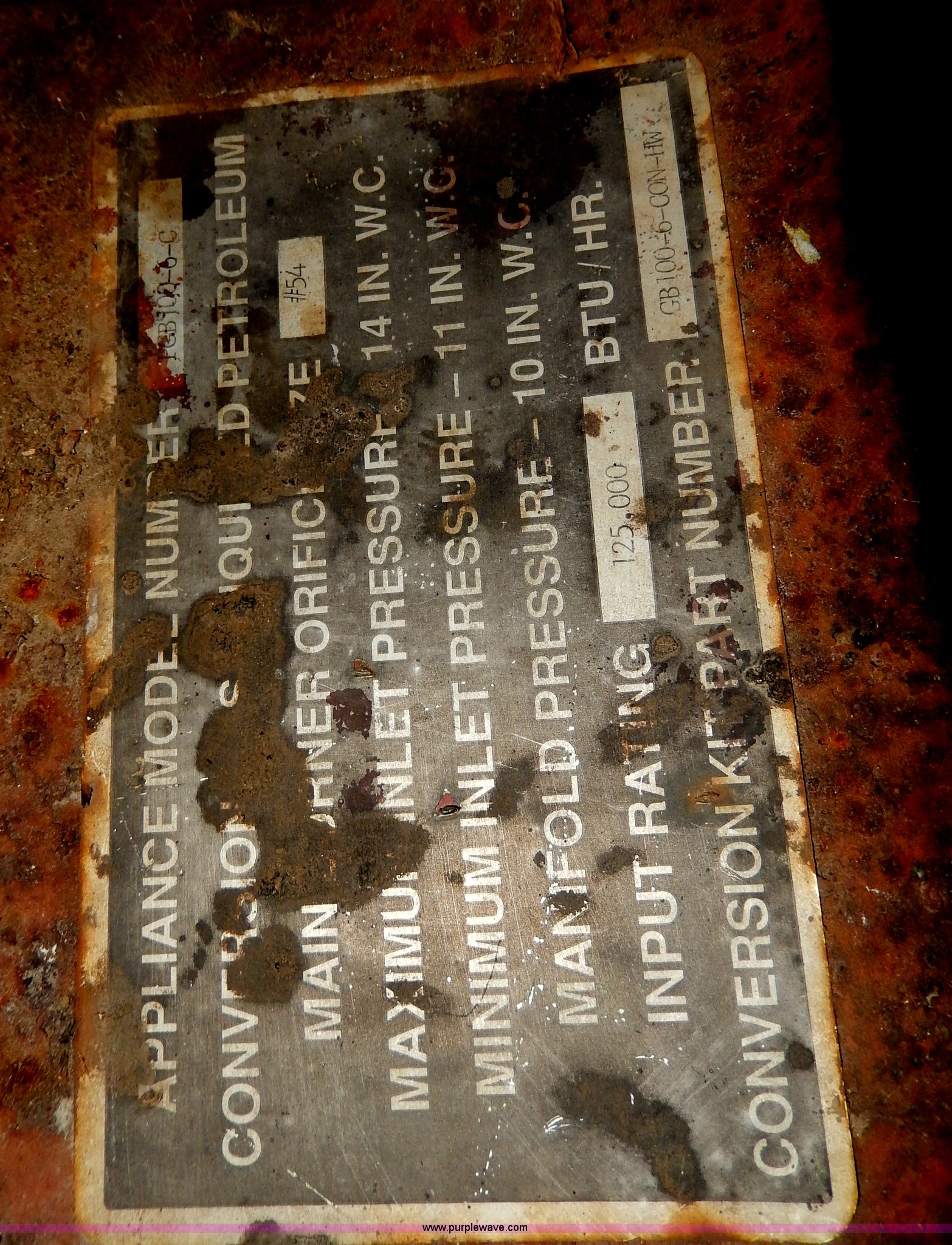 Petroleum heater. Model 1GB100-6-C, 125,000 BTU per hour input rating, Part No. GB100-6-CON-HW, Unit has not been used in 12 years. Shipping quotes available. City of Atchison. 1801 Main. Atchison, KS 66002