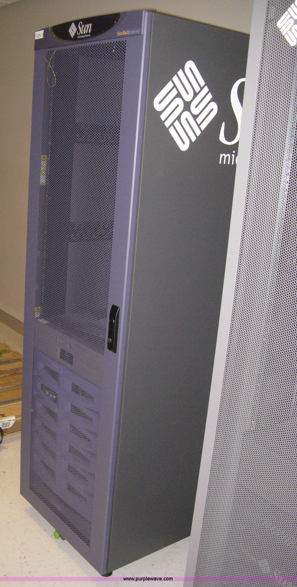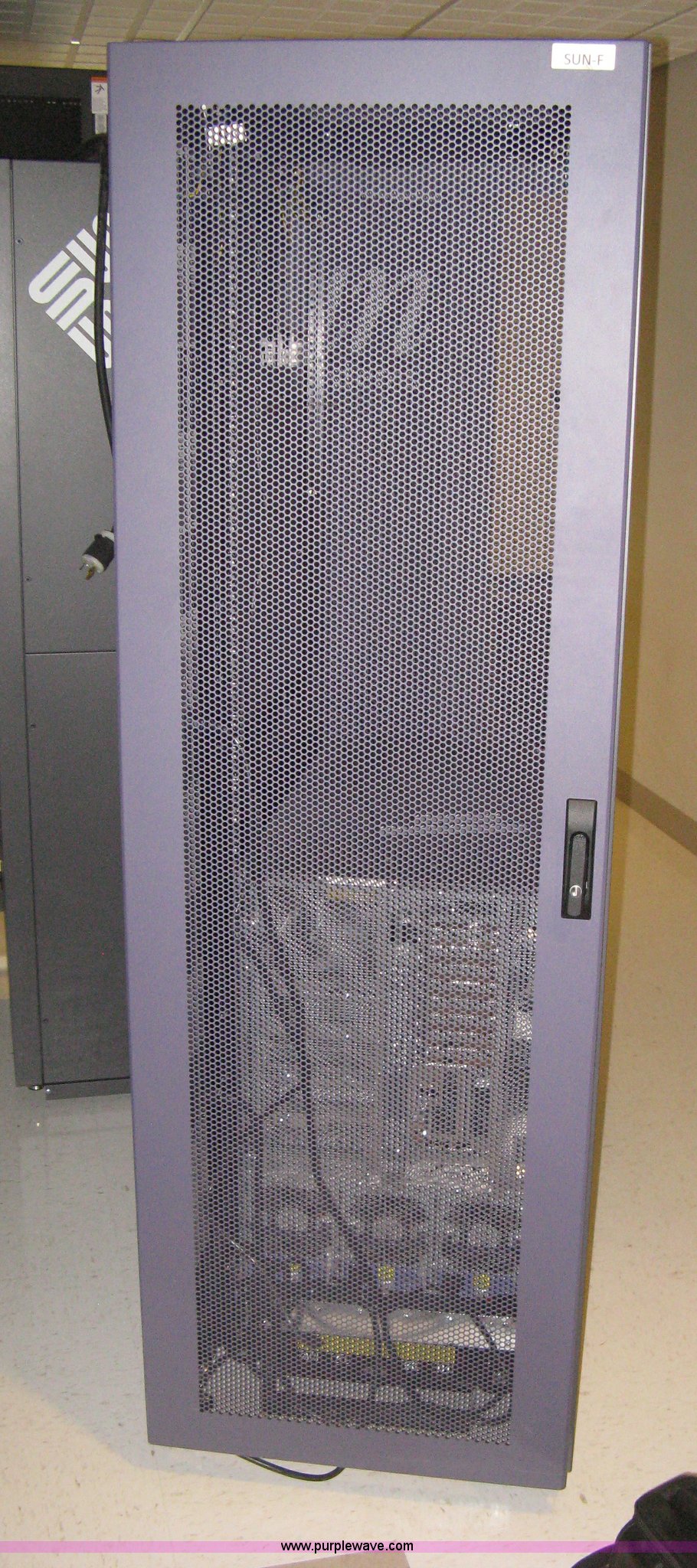 Purple Wave is selling a used Electronics in Kansas. This item is a Sun Sunfire V890 rack mount server with cabinet with the following: (4) 1,500 MHz ultraSparc IV plus processors, 16 GB memory, (4) Seagate 146 GB hard drives, DVD drive, Two ethernet, two RS232(DB25), two usb, and nine PCI ports on-board, Sun cabinet with integrated power distribution, 23.5"W x 72"H x 40"D, 38 RU available, 114 mounting hole front and back