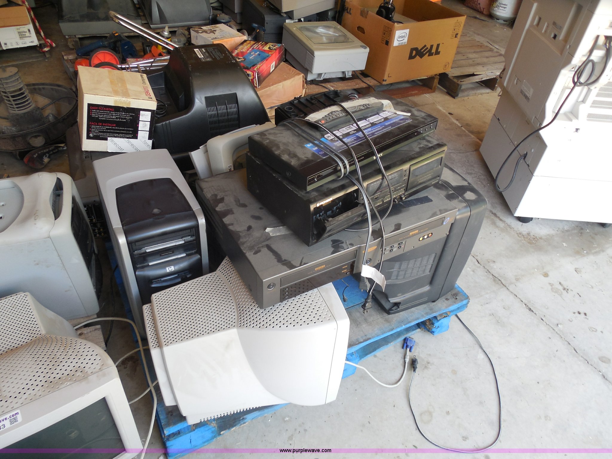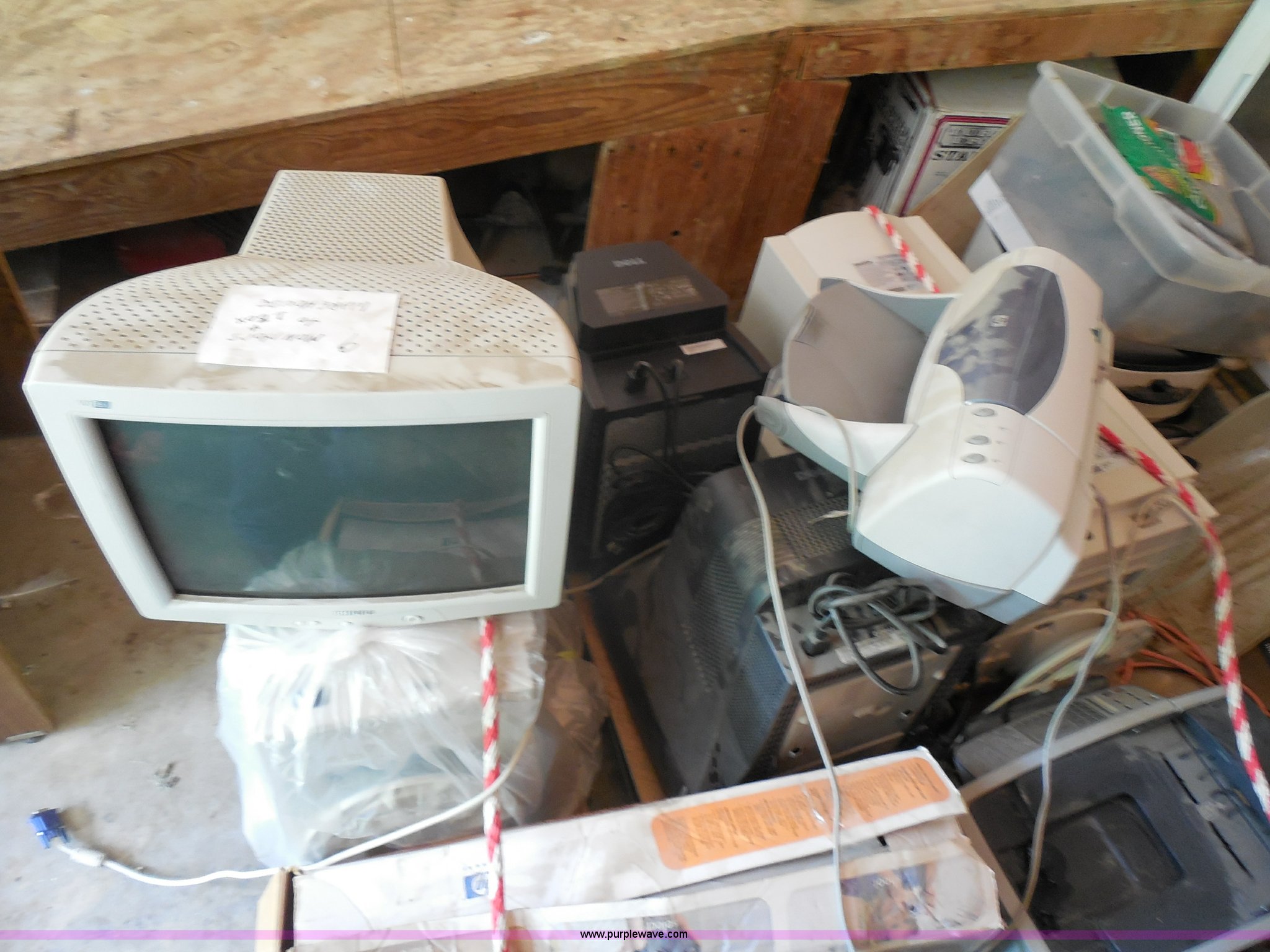 Purple Wave is selling a used Electronics in Kansas. This item is a Assorted electronics with the following: (9) Phillips 107ES computer monitors, (10) televisions, Assorted sizes, (2) Dell monitors, HP printer, (2) HP modems, VCR player, DVD player