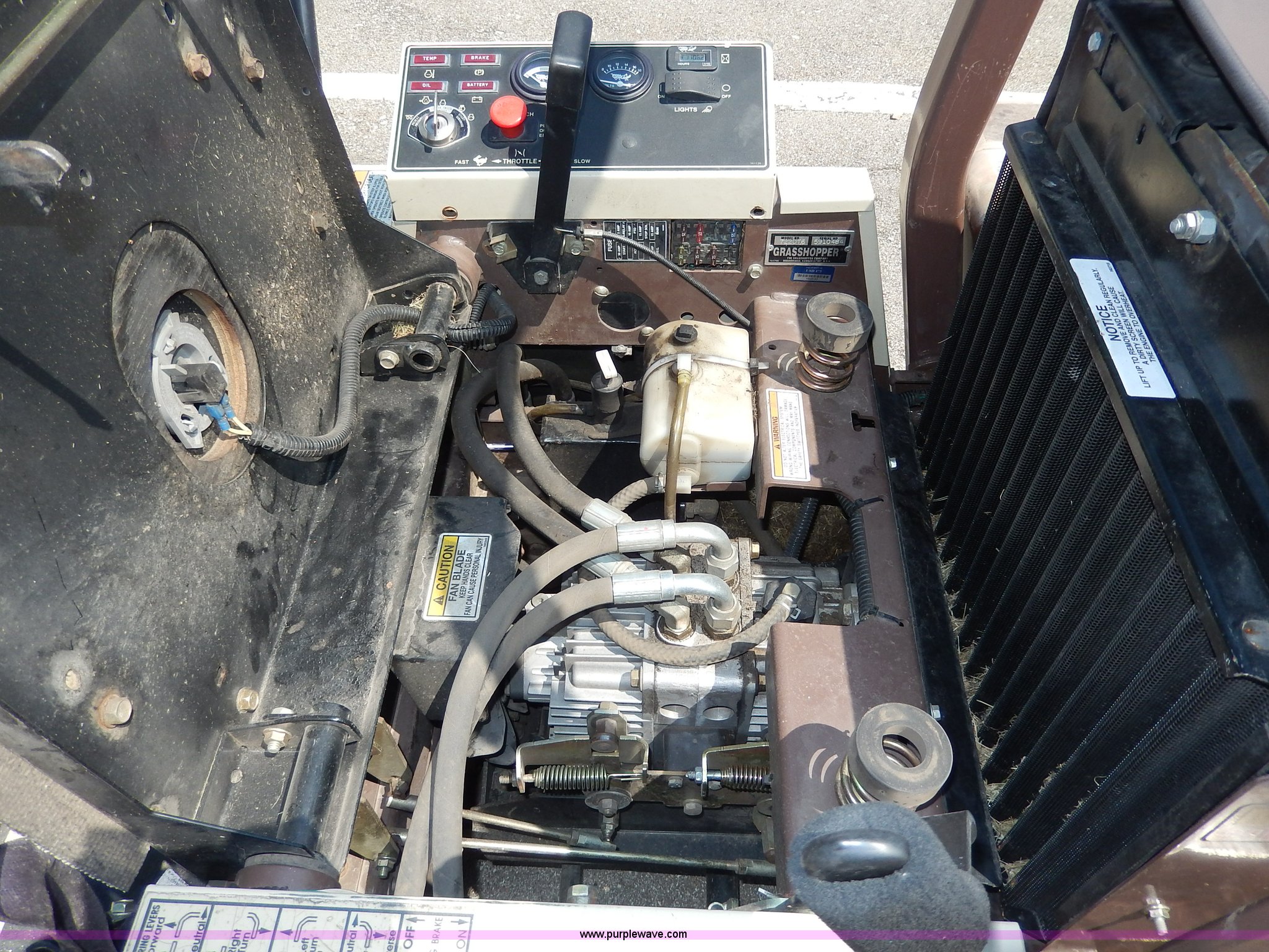 Purple Wave is selling a used Commercial Turf Mower in Kansas. This item is a Grasshopper 722DT6 ZTR lawn mower with the following: 1,106 hours on meter, 61" cut, Kubota Max Torque diesel engine, Model D902, 22x11.00-10 front tires, 13x6.50-6 rear tires, Leaks oil, Engine will not shut-off with key, Must use switch located near engine, Serial 5910484