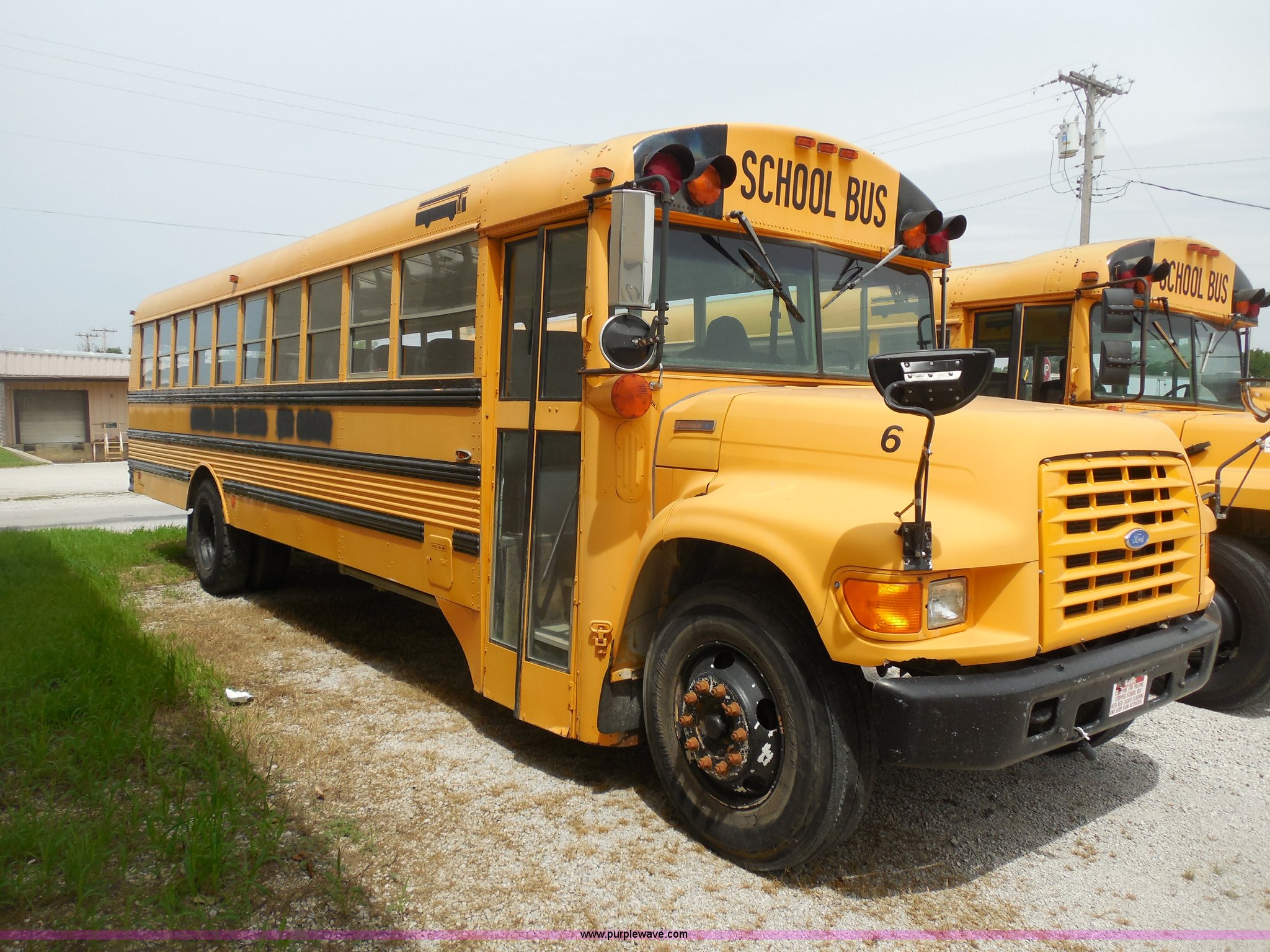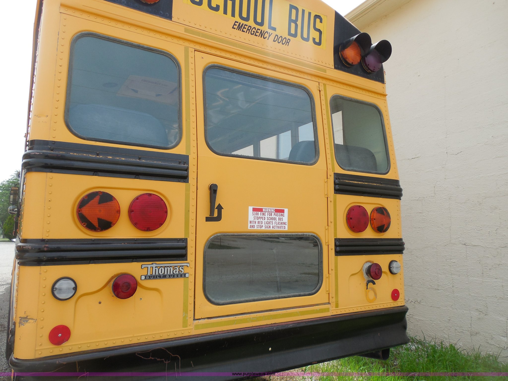 Purple Wave is selling a used Bus in Kansas. This item is a 1995 Ford Thomas B800 school bus with the following: 160,851 miles on odometer, Ford 5.9L six cylinder diesel engine, Automatic transmission, Heat, AM/FM, 62 passenger capacity, 11R22.5 tires, Driver's side emergency egress, Two roof emergency egress, Six window emergency egress, CB hookup, PA system, GVWR 30,000 lbs, Minor seat damage, Unit# 6