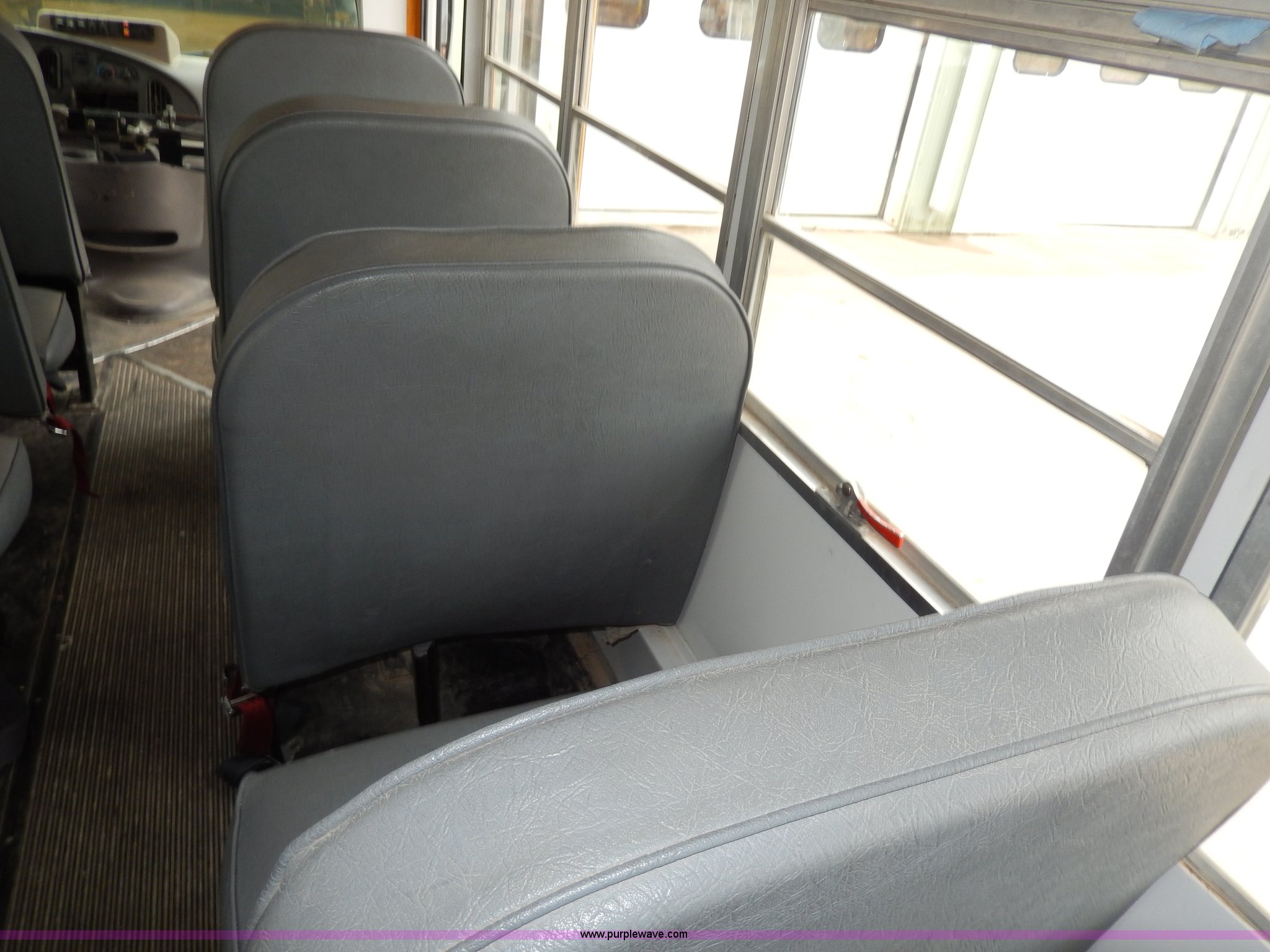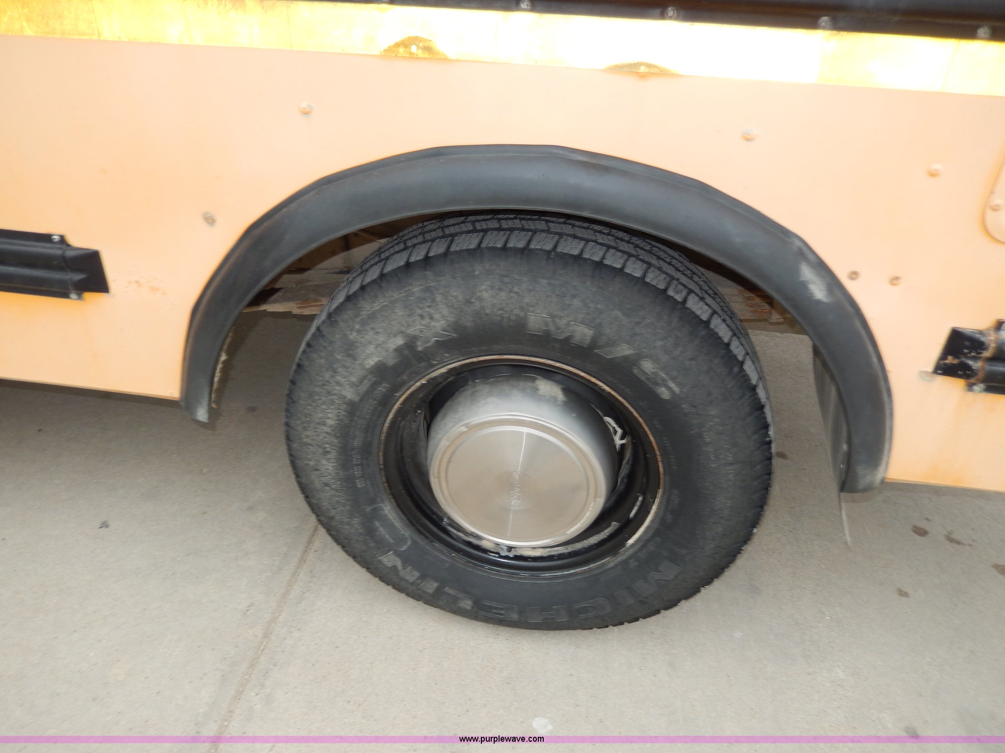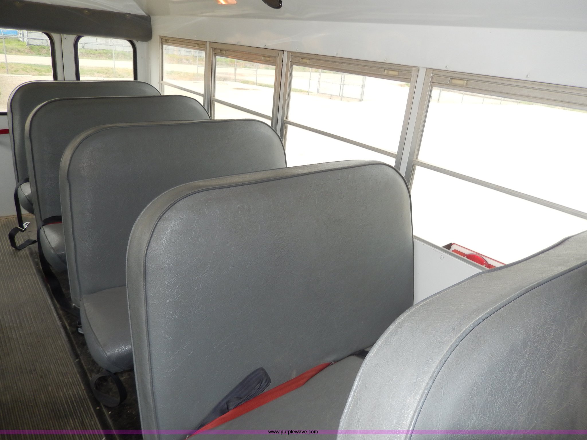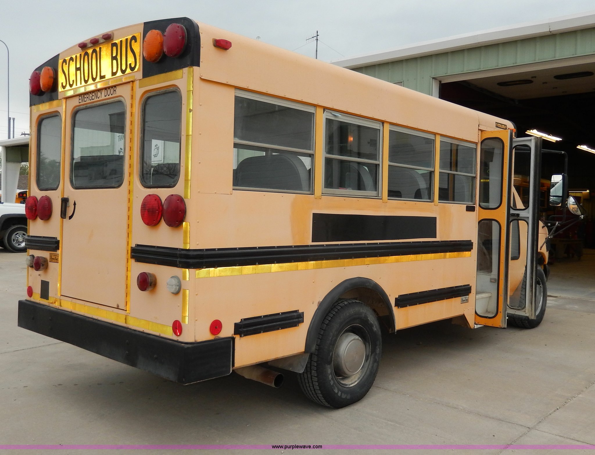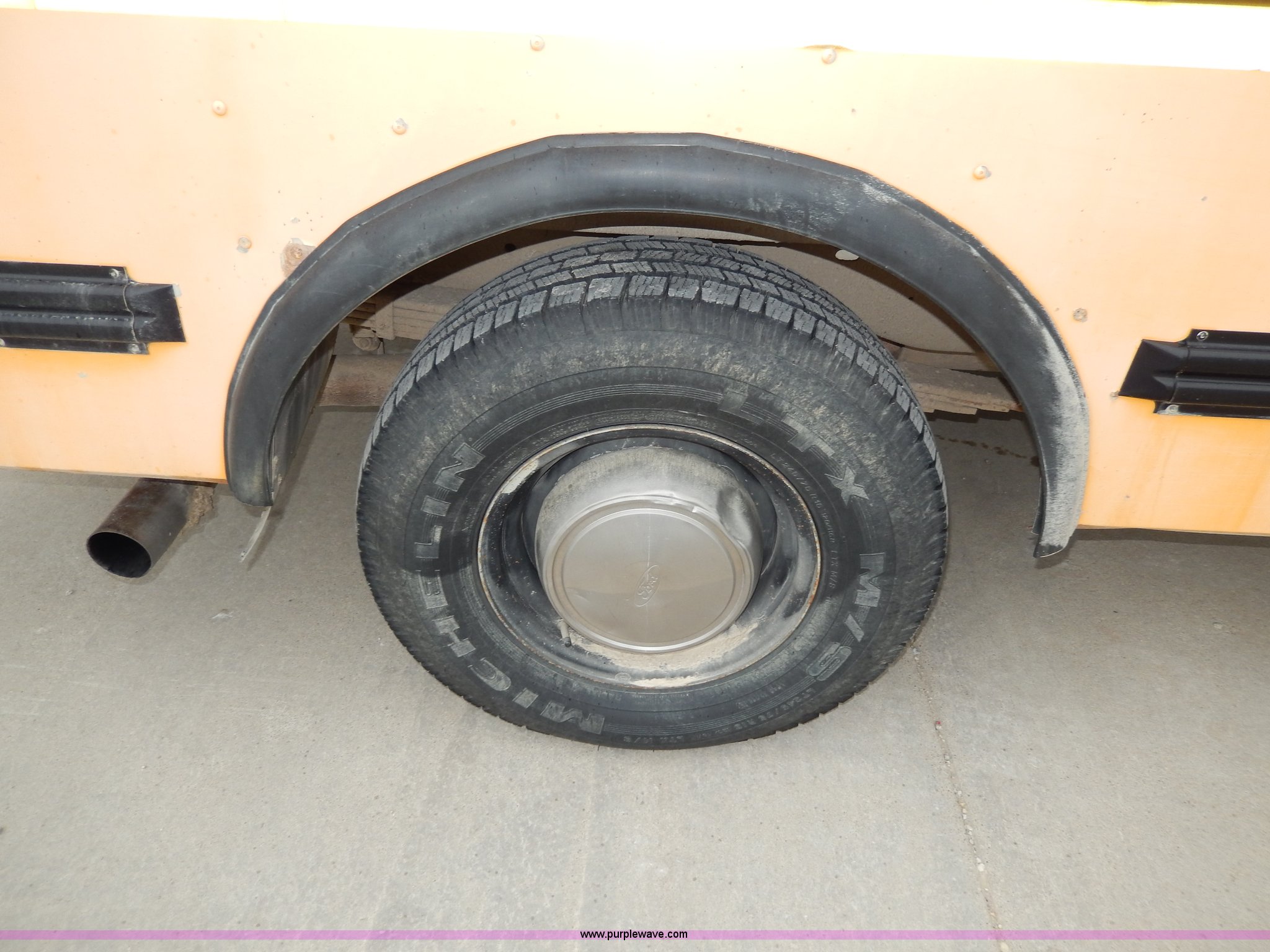 Purple Wave is selling a used Bus in Kansas. This item is a 1997 Ford Collins E350 school bus with the following: 116,249 miles on odometer, 18 passenger, 7.3L V8 turbo diesel engine, Automatic transmission, Heat, Manual windows and locks, Heated mirrors, Vinyl interior, Seat belts, Block heater, 245/75R16 tires, GVWR 9,600 lbs, Stereo missing