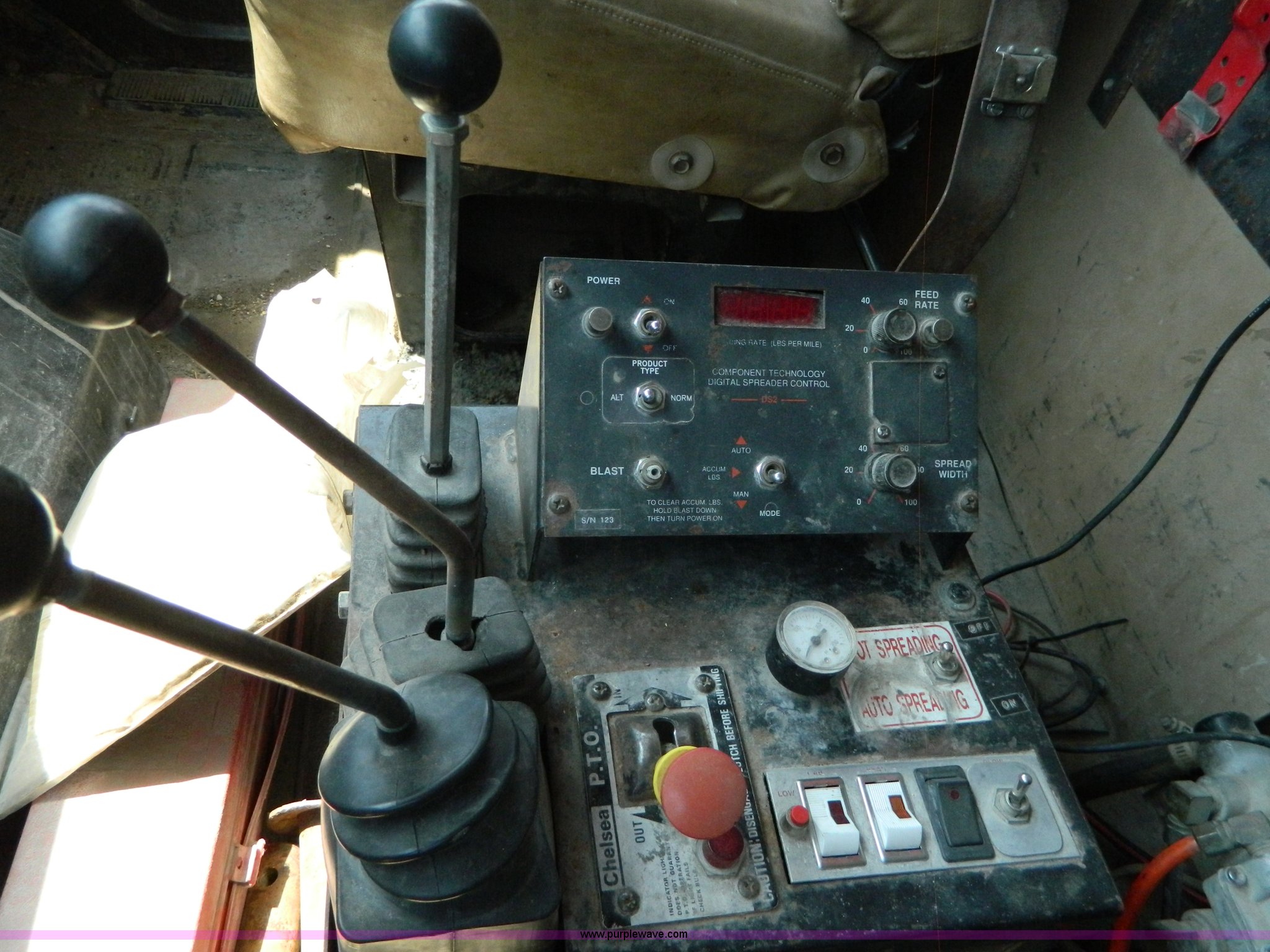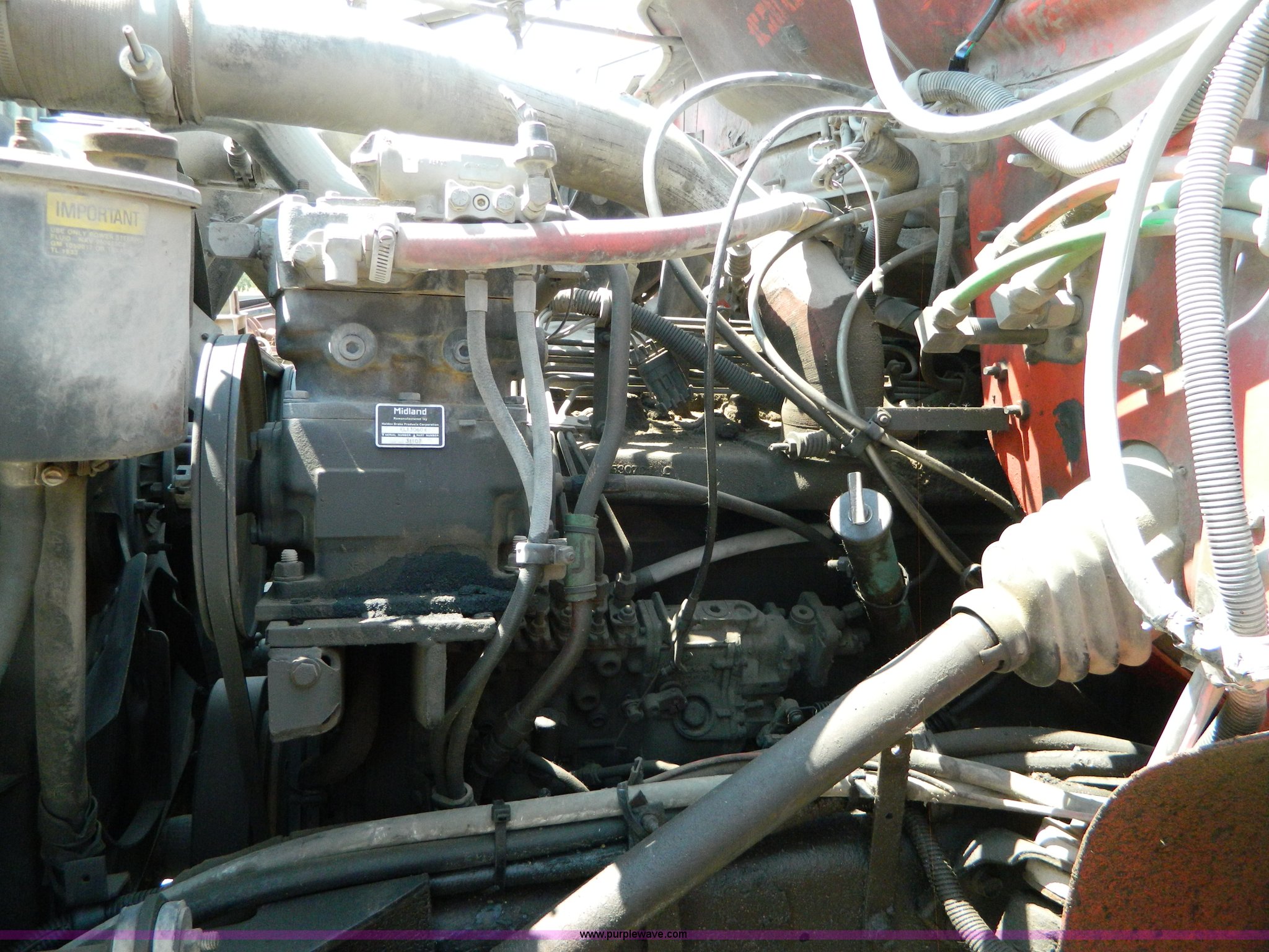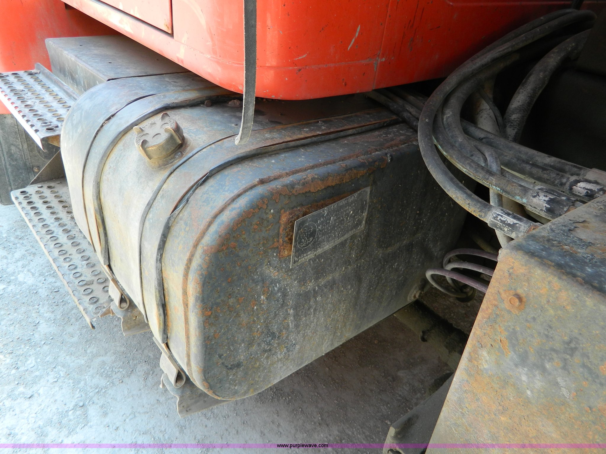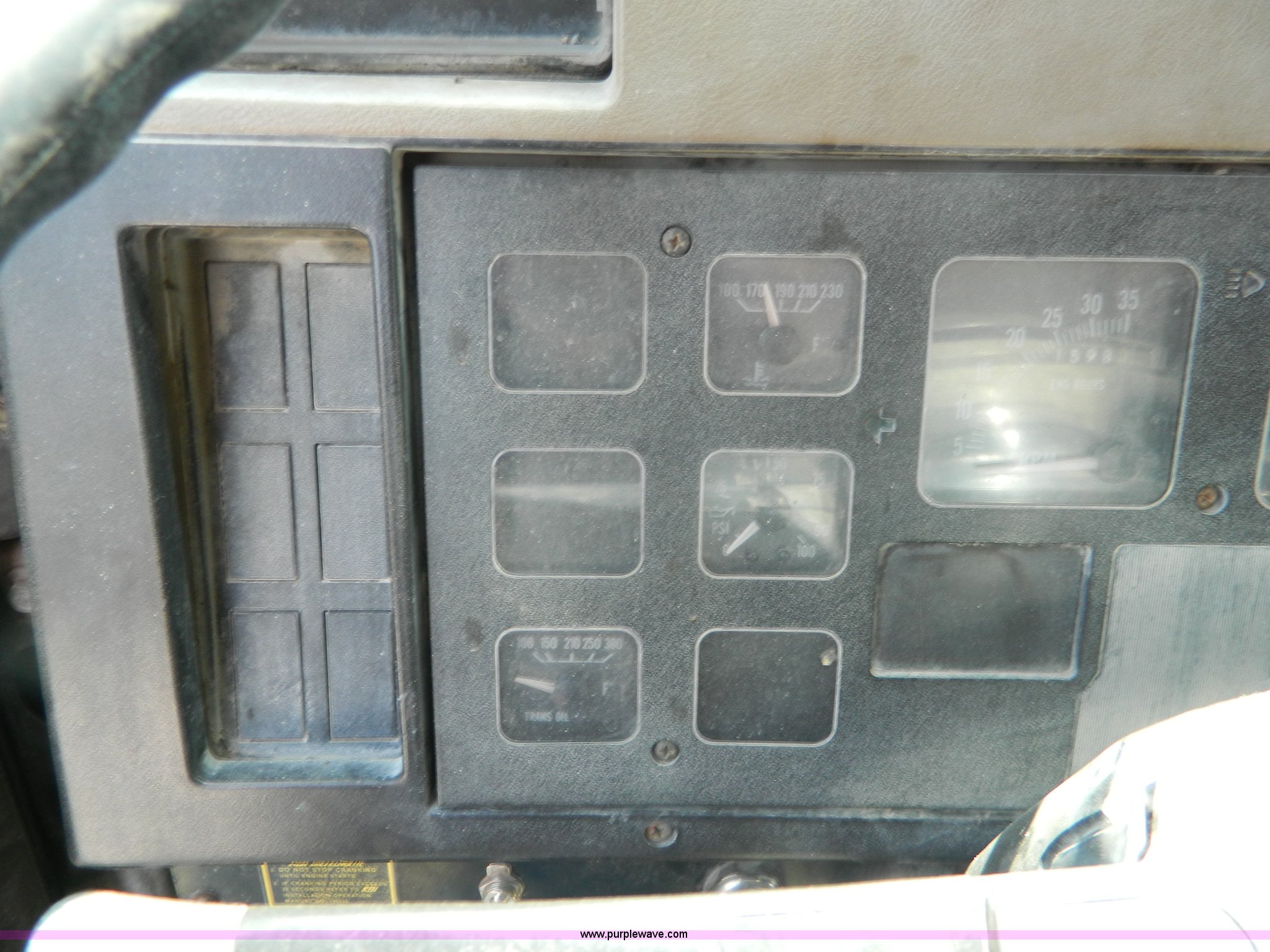 Purple Wave is selling a used Construction Dump Truck in Kansas. This item is a 1991 International 4900 dump truck with the following: 249,420 miles on odometer, International DT466 7.6L L6 diesel engine, Allison five speed automatic transmission, Power divider, Heat, AM/FM, Air suspension seat, 13' dump bed, Manual end gate, Two stage single ram, Schmidt 11' snow plow, Model L03-3120, Swenson stainless steel spreader, Model 721-3120, 7 yard capacity, Dual fuel tanks, Air brakes, 170" wheelbase, 10.00-20 tires, GVWR 46,000 lbs, Interior/exterior cosmetic damage, Rust