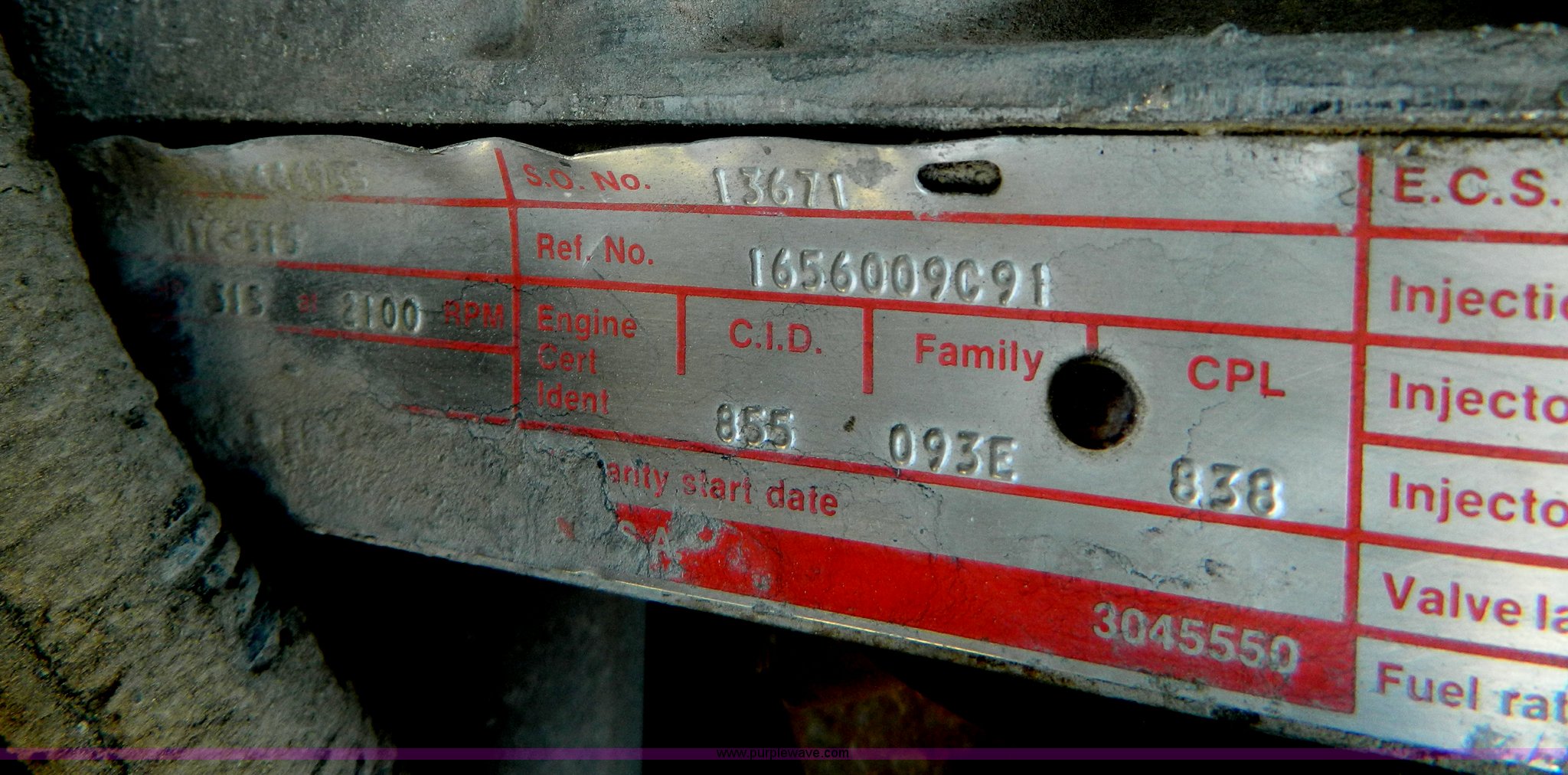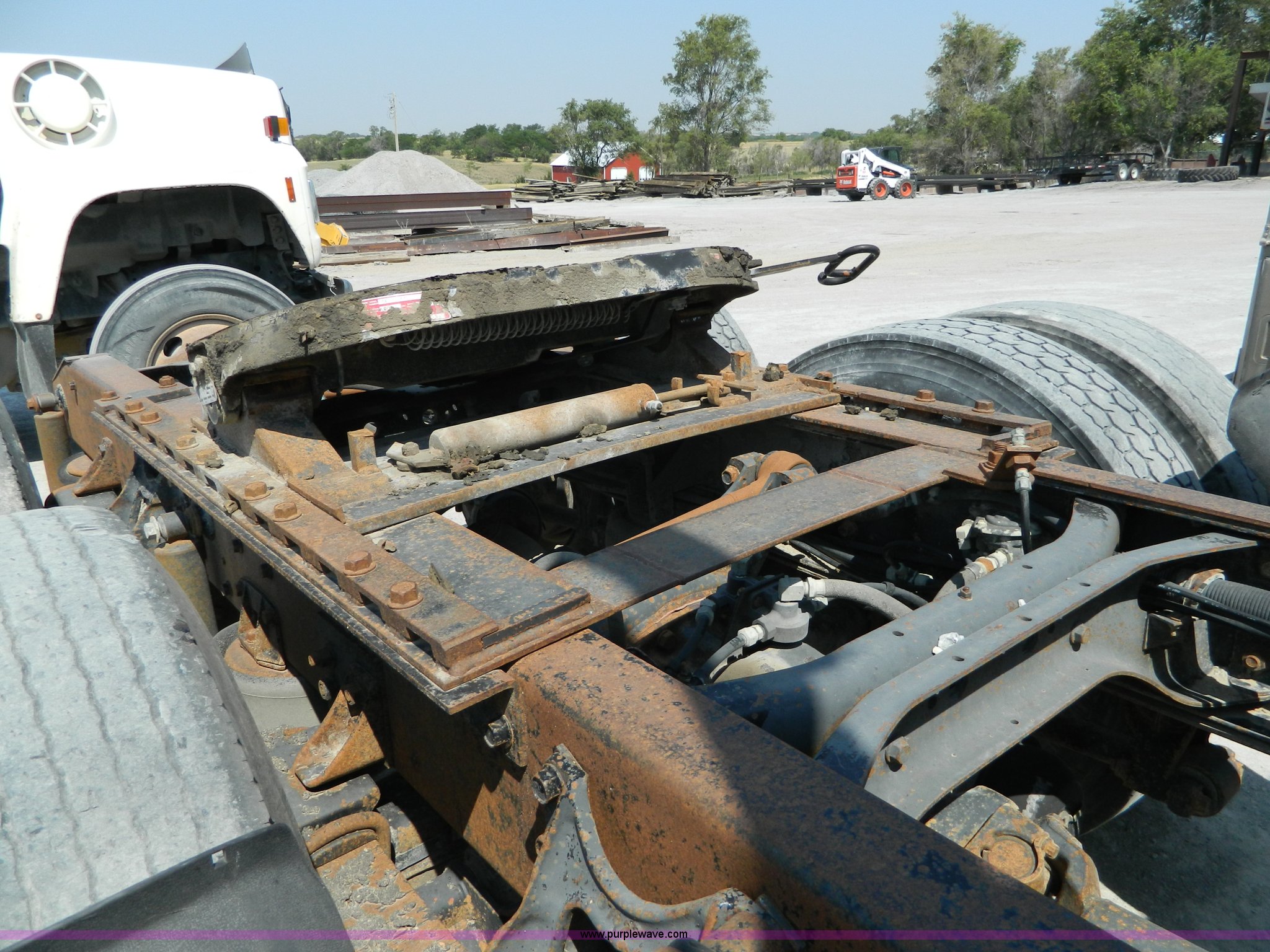 Purple Wave is selling a used Truck Chassis in Kansas. This item is a 1988 International S2500 semi truck with the following: 482,542 miles on odometer, Cummins N14 14.0L L6 diesel engine, Fuller eight speed manual transmission, Power divider, Heat, AM/FM/cassette, Air suspension seat, Block heater, Dual 67 gallon fuel tank, Single exhaust stack, Air suspension, Air brakes, 180" wheelbase, 11R22.5 tires, GVWR 50,000 lbs, Interior/exterior cosmetic damage, Rust